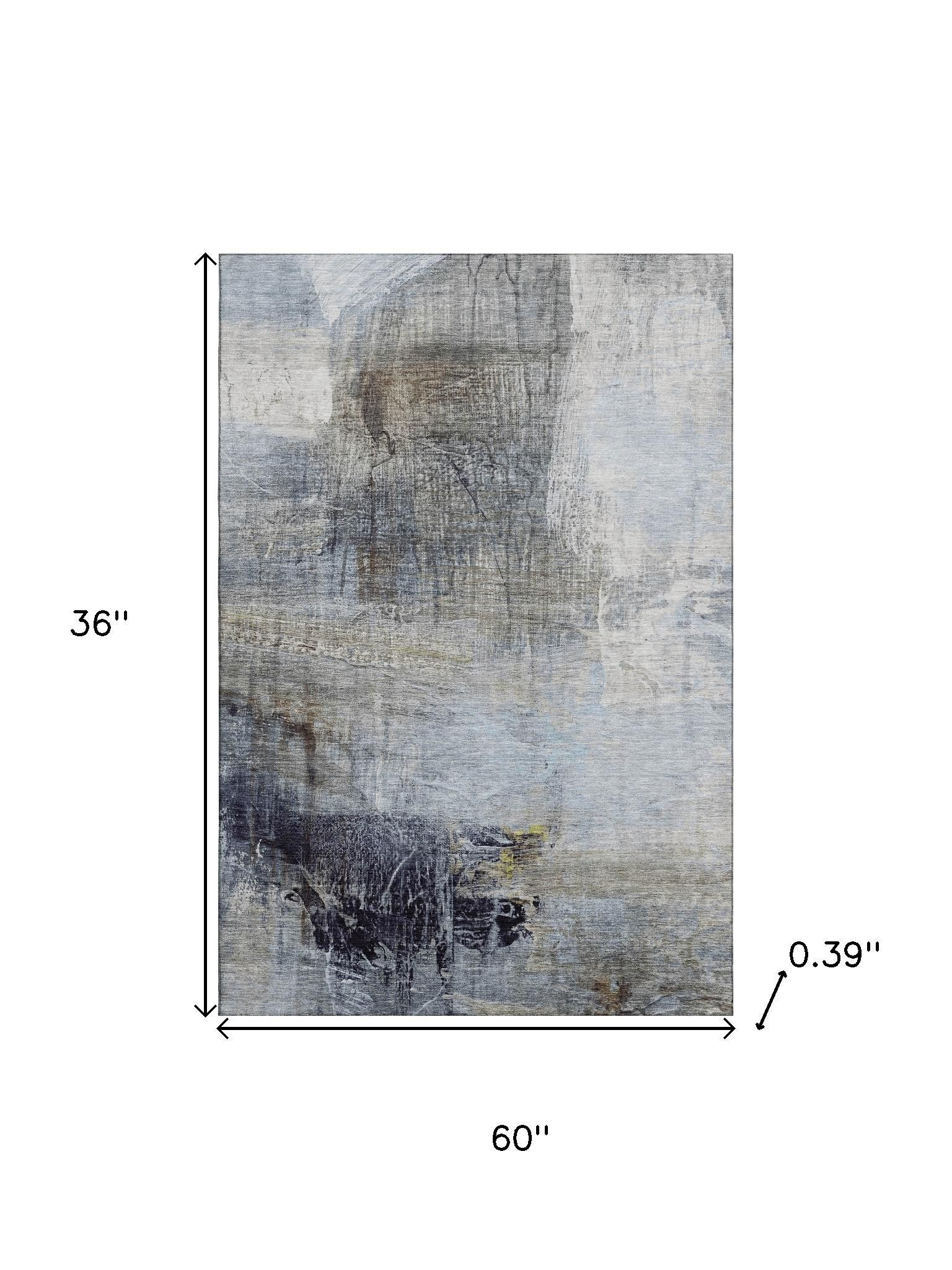 Add some artistry to your room with this 3-foot x 5-foot sky blue and gray abstract washable area rug with uv protection. Ideal for spaces with kids and pets, this rug is stain resistant to help repel dirt and spilled liquids. Built to last, this rug crafted from polyester fibers is known for its durability and long lasting appeal. Rugs are a great way to showcase your style, hide imperfections, warm your home and reduce noise. This smaller sized, transitional styled rug is just what you need for your walkway, bedside, in front of door, cabinet, refrigerator, or chair. 36.00-inch h x 60.00-inch w x 0.39-inch d.