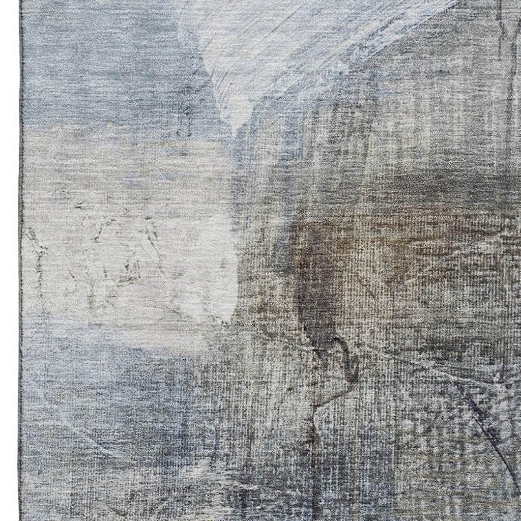 This 8-foot x 10-foot sky blue and gray abstract washable area rug with uv protection, is a great way to add warmth to a room. Ideal for spaces with kids and pets, this rug is stain resistant to help repel dirt and spilled liquids. Built to last, this rug crafted from polyester fibers is known for its durability and long lasting appeal. Rugs are a great way to showcase your style, hide imperfections, warm your home and reduce noise. This larger sized, transitional styled rug is ready to create a focal point or statement piece in your room. 96.00-inch h x 120.00-inch w x 0.39-inch d.