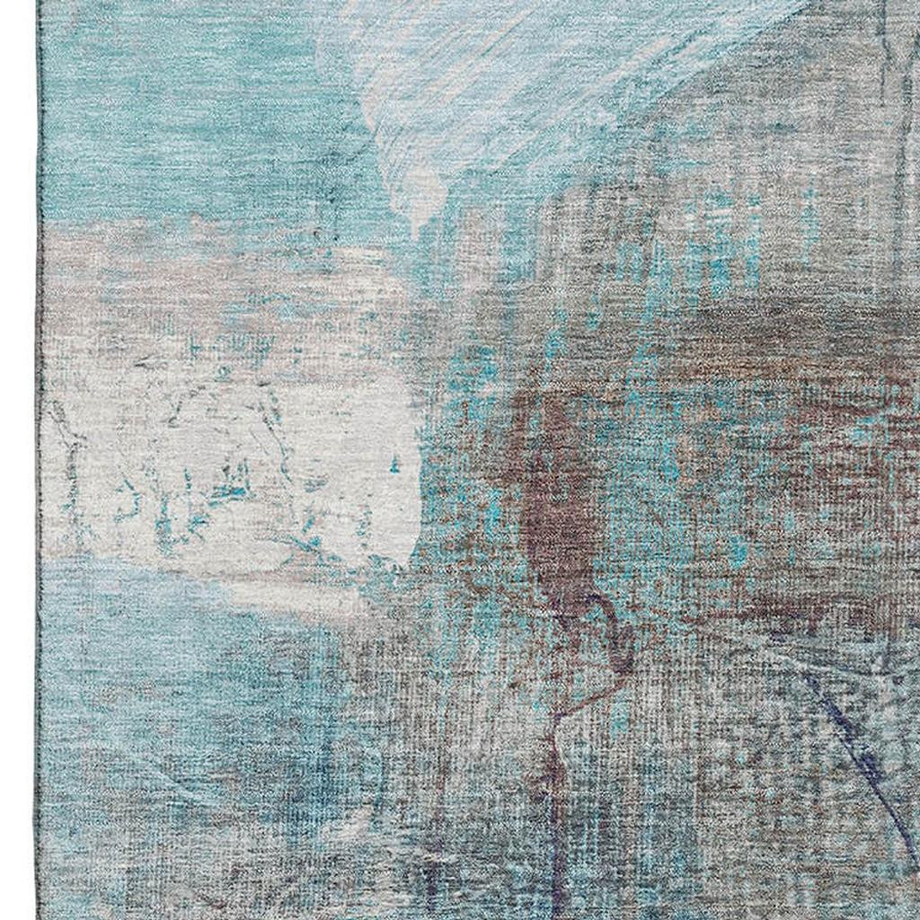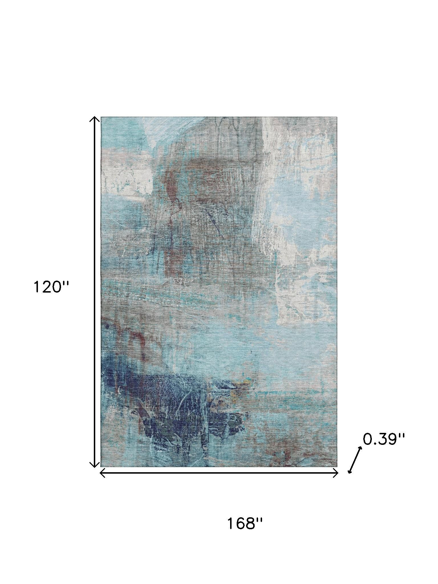 This 10-foot x 14-foot teal and ivory abstract washable area rug with uv protection, is a great way to add warmth to a room. Ideal for spaces with kids and pets, this rug is stain resistant to help repel dirt and spilled liquids. Built to last, this rug crafted from polyester fibers is known for its durability and long lasting appeal. Rugs are a great way to showcase your style, hide imperfections, warm your home and reduce noise. This larger sized, transitional styled rug is ready to create a focal point or statement piece in your room. 120.00-inch h x 168.00-inch w x 0.39-inch d.