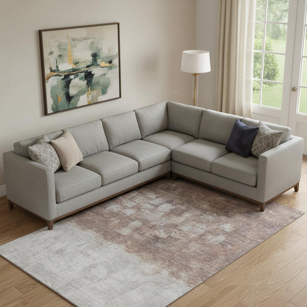 Add great coloration and comfortable texture to your space with this 9-foot x 12-foot rust and silver abstract washable area rug with uv protection. Ideal for spaces with kids and pets, this rug is stain resistant to help repel dirt and spilled liquids. Built to last, this rug crafted from polyester fibers is known for its durability and long lasting appeal. Rugs are a great way to showcase your style, hide imperfections, warm your home and reduce noise. This larger sized, transitional styled rug is ready to create a focal point or statement piece in your room. 108.00-inch h x 144.00-inch w x 0.39-inch d.