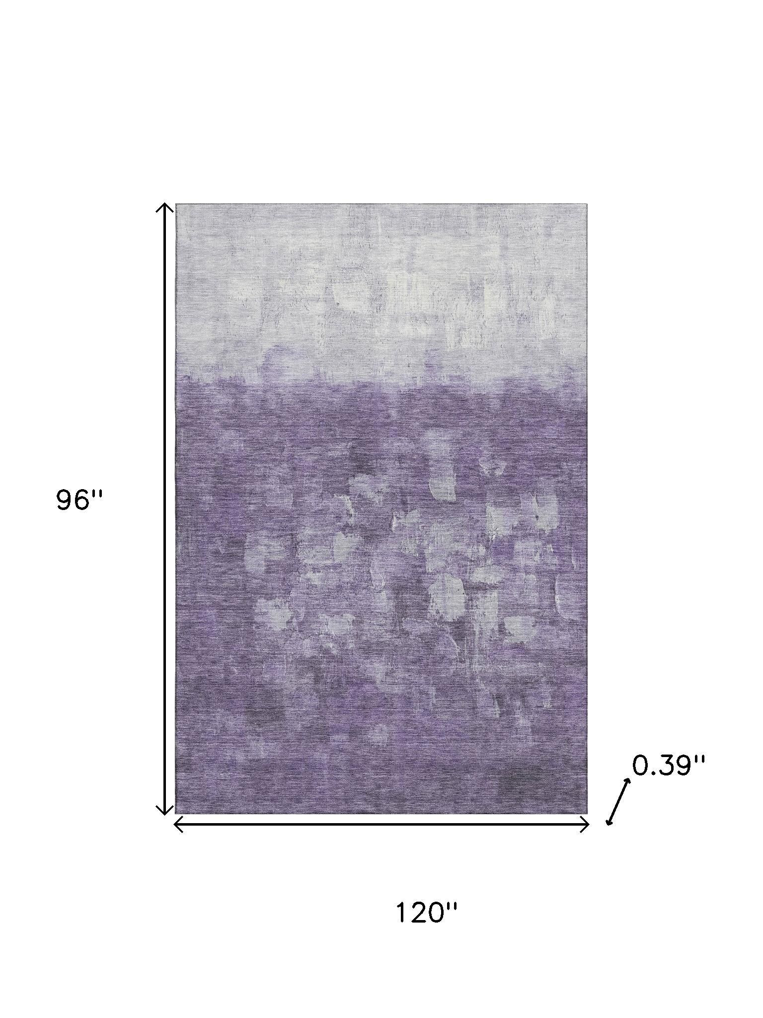 Add great coloration and comfortable texture to your space with this 8-foot x 10-foot purple and ivory abstract washable area rug with uv protection. Ideal for spaces with kids and pets, this rug is stain resistant to help repel dirt and spilled liquids. Built to last, this rug crafted from polyester fibers is known for its durability and long lasting appeal. Rugs are a great way to showcase your style, hide imperfections, warm your home and reduce noise. This larger sized, transitional styled rug is ready to create a focal point or statement piece in your room. 96.00-inch h x 120.00-inch w x 0.39-inch d.