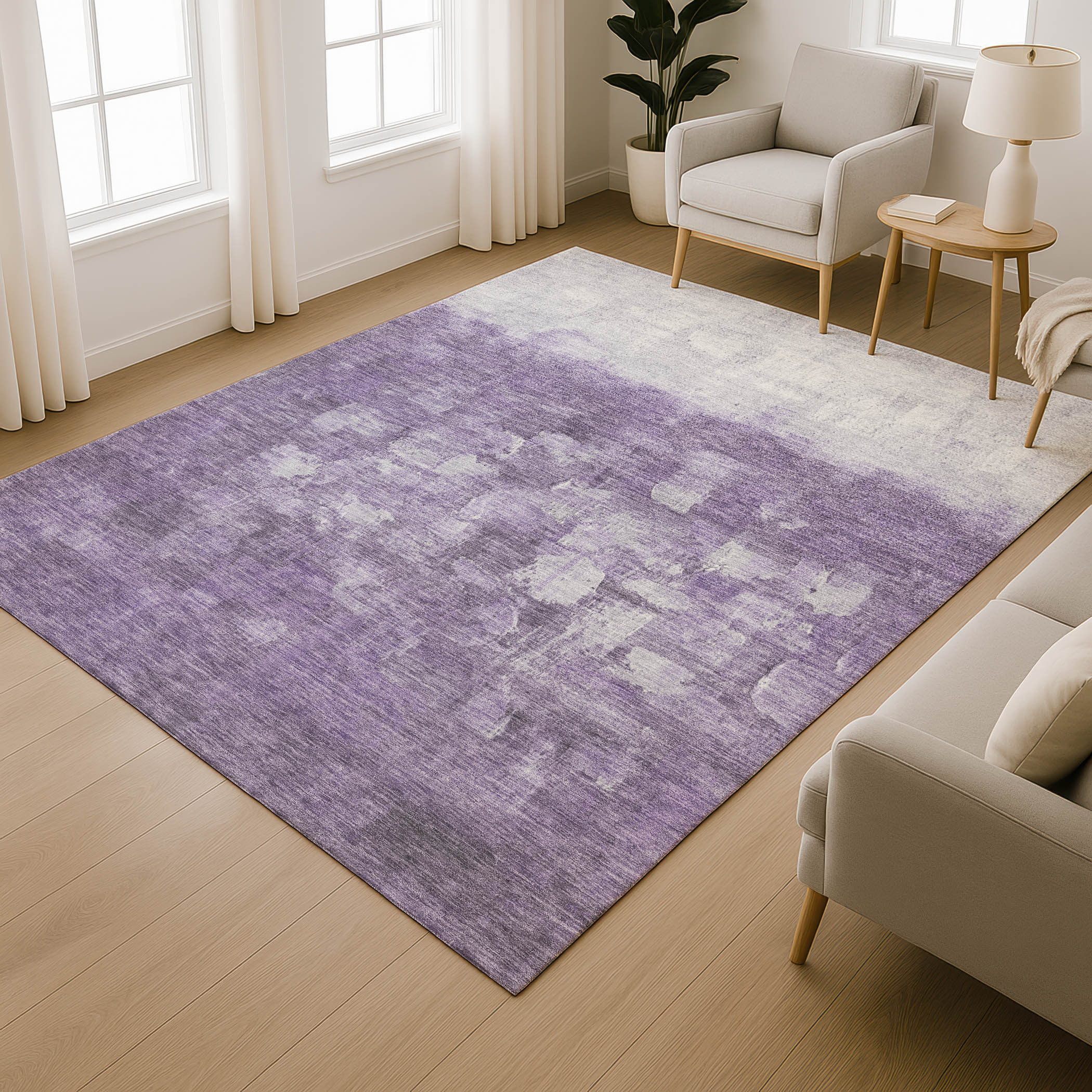 Add great coloration and comfortable texture to your space with this 9-foot x 12-foot purple and ivory abstract washable area rug with uv protection. Ideal for spaces with kids and pets, this rug is stain resistant to help repel dirt and spilled liquids. Built to last, this rug crafted from polyester fibers is known for its durability and long lasting appeal. Rugs are a great way to showcase your style, hide imperfections, warm your home and reduce noise. This larger sized, transitional styled rug is ready to create a focal point or statement piece in your room. 108.00-inch h x 144.00-inch w x 0.39-inch d.
