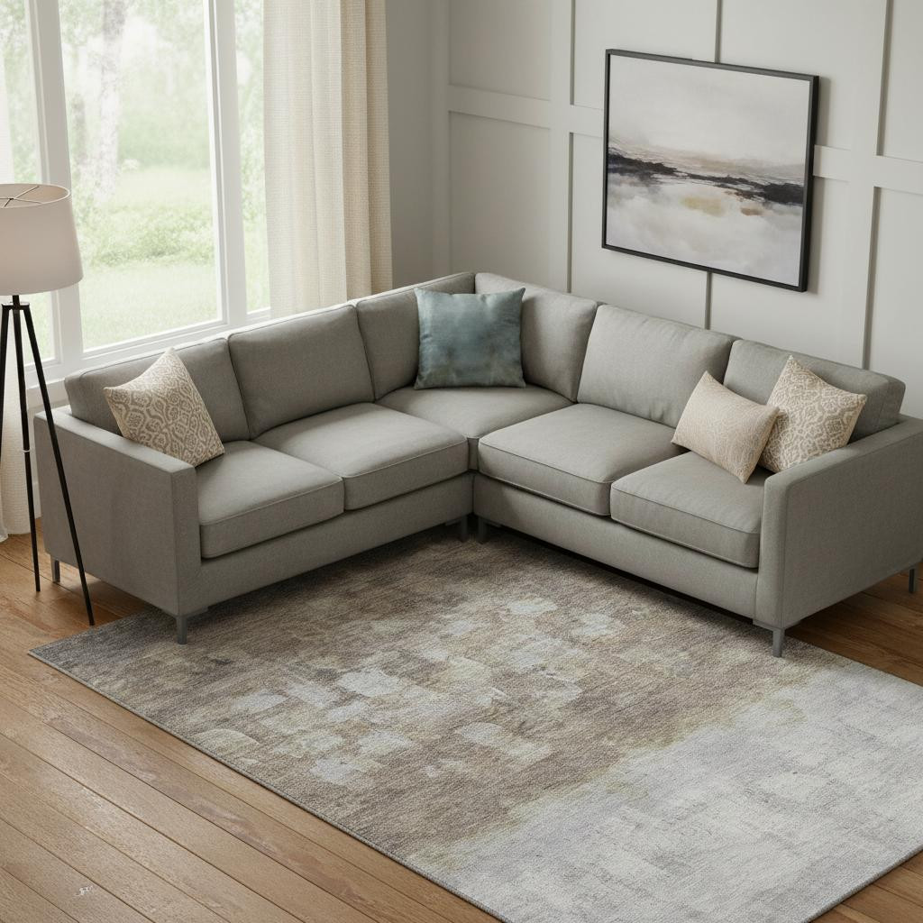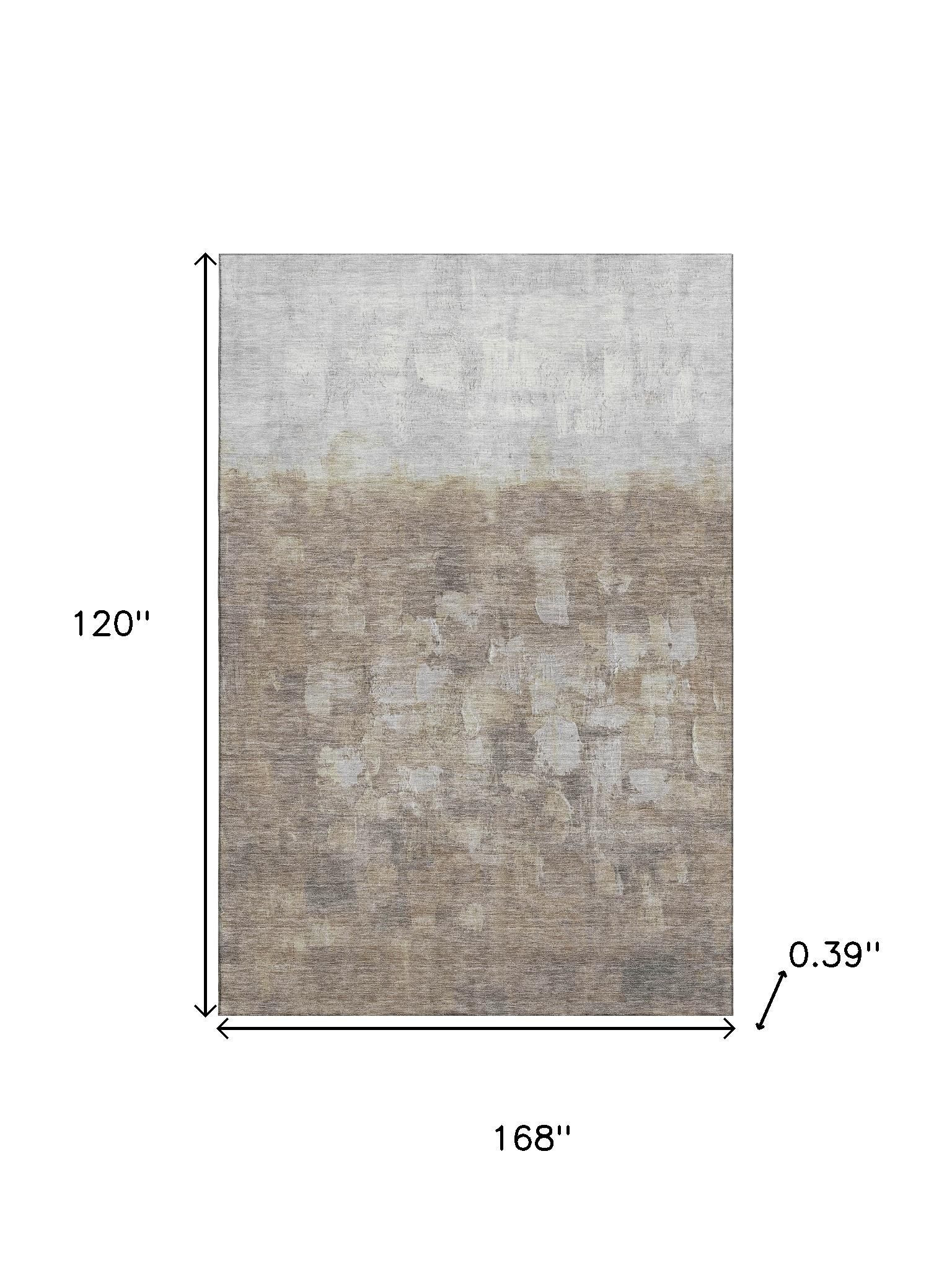 Set an inviting tone in your space with this 10-foot x 14-foot taupe and ivory abstract washable area rug with uv protection. Ideal for spaces with kids and pets, this rug is stain resistant to help repel dirt and spilled liquids. Built to last, this rug crafted from polyester fibers is known for its durability and long lasting appeal. Rugs are a great way to showcase your style, hide imperfections, warm your home and reduce noise. This larger sized, transitional styled rug is ready to create a focal point or statement piece in your room. 120.00-inch h x 168.00-inch w x 0.39-inch d.