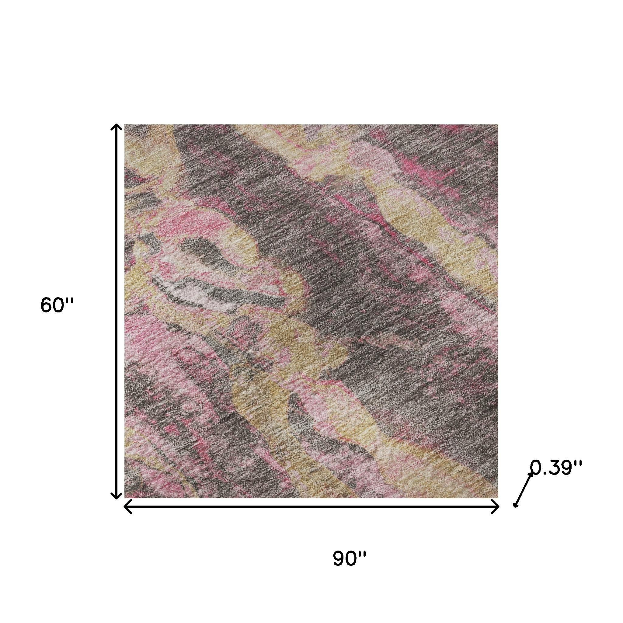 Set an inviting tone in your space with this 5-foot x 8-foot blush and wheat abstract washable area rug with uv protection. Ideal for spaces with kids and pets, this rug is stain resistant to help repel dirt and spilled liquids. Built to last, this rug crafted from polyester fibers is known for its durability and long lasting appeal. Rugs are a great way to showcase your style, hide imperfections, warm your home and reduce noise. This larger sized, transitional styled rug is ready to create a focal point or statement piece in your room. 60.00-inch h x 90.00-inch w x 0.39-inch d.
