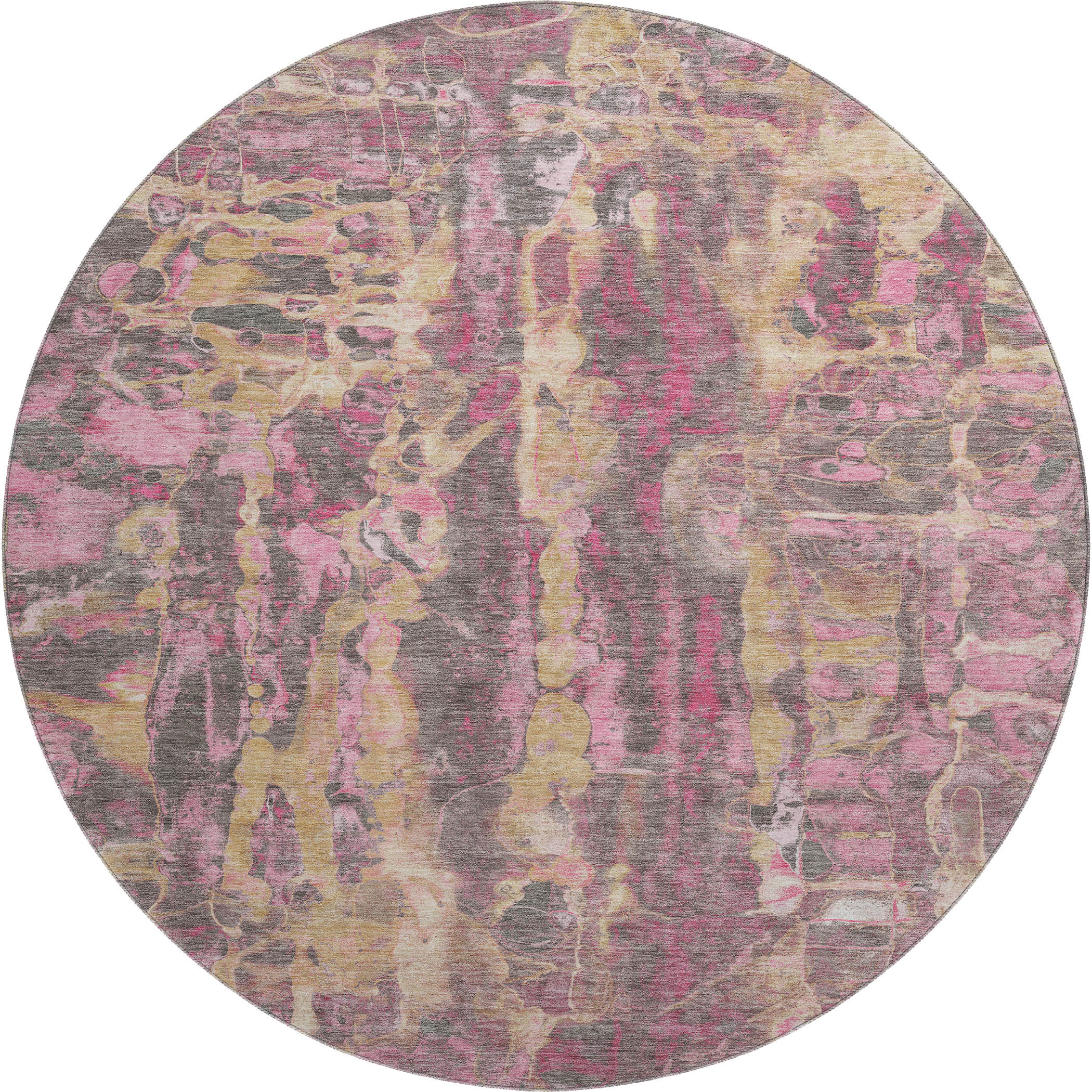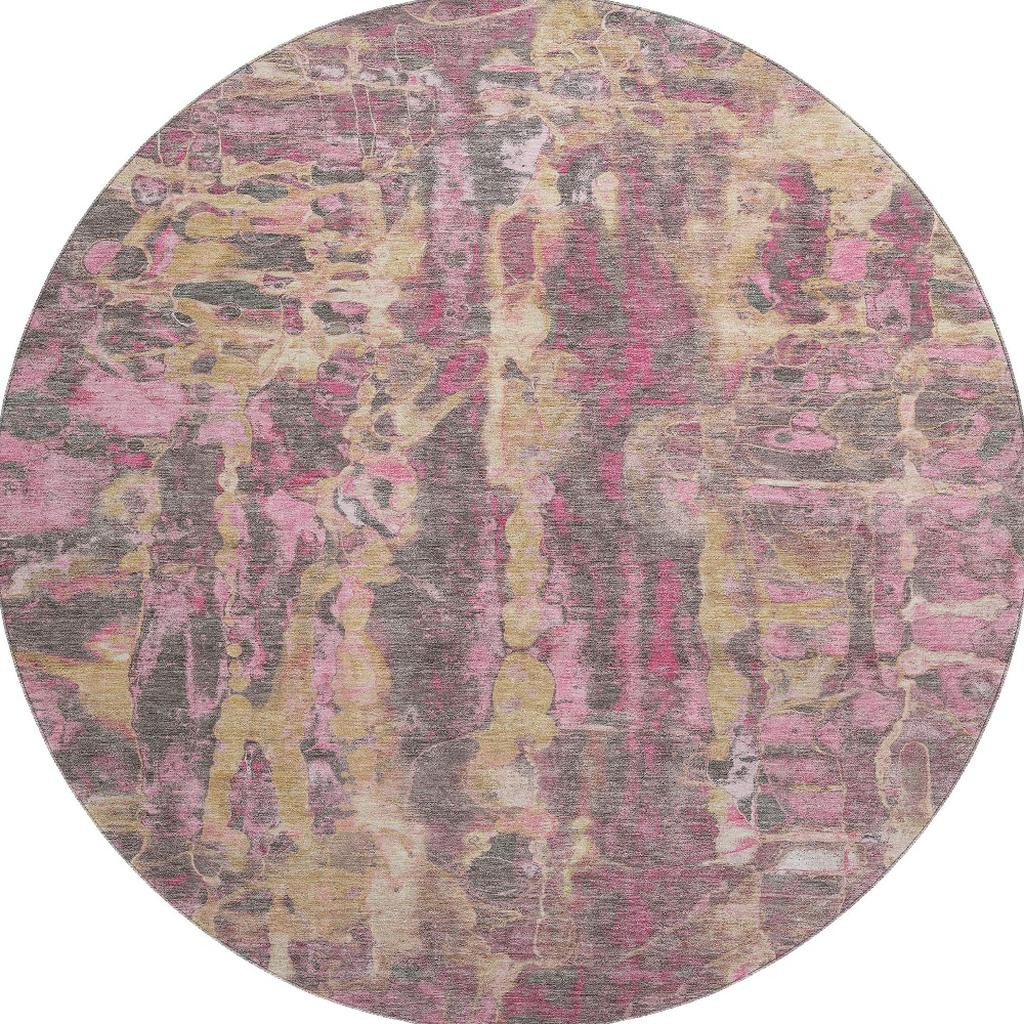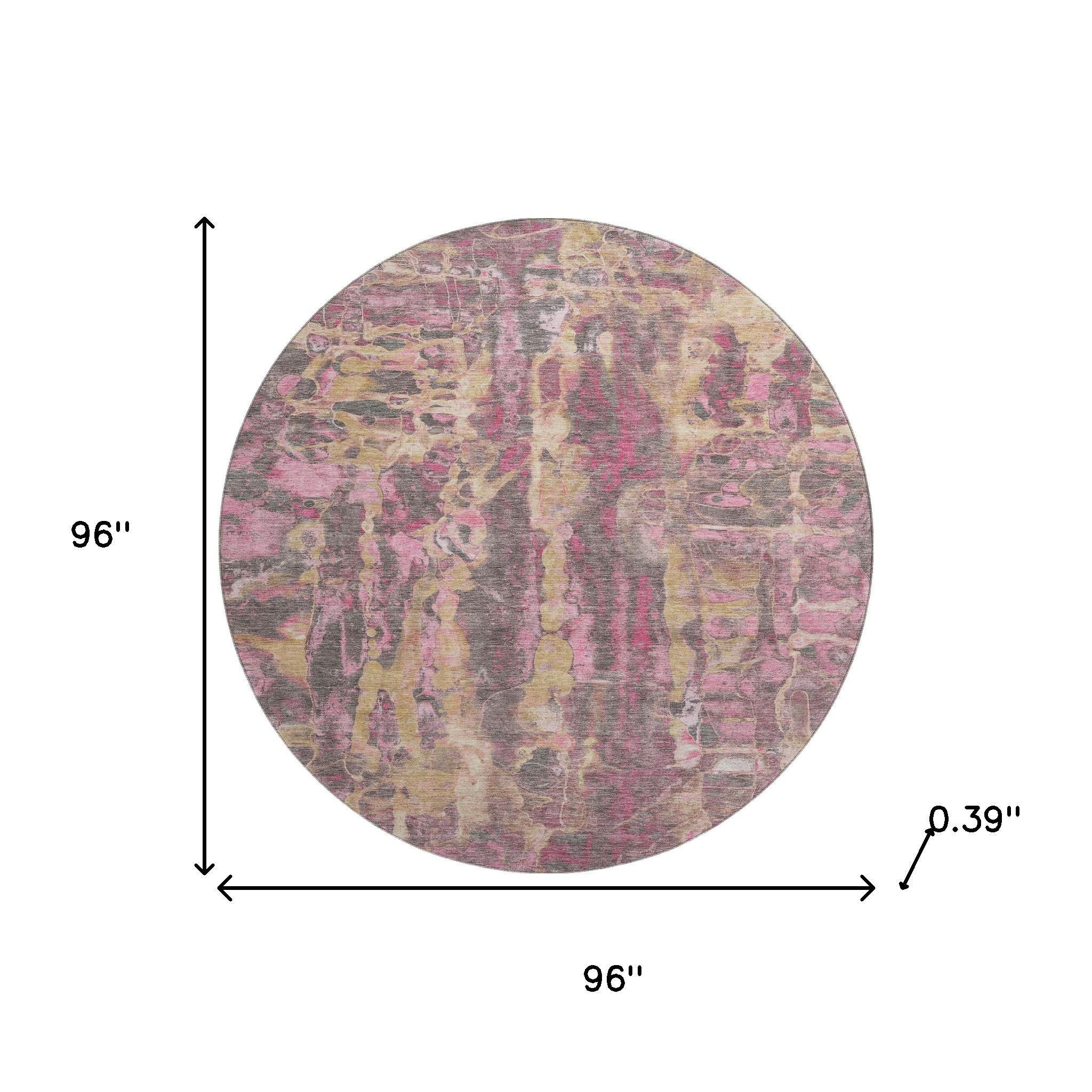 Add great coloration and comfortable texture to your space with this 8-foot blush and wheat abstract washable round rug with uv protection. Ideal for spaces with kids and pets, this rug is stain resistant to help repel dirt and spilled liquids. Built to last, this rug crafted from polyester fibers is known for its durability and long lasting appeal. Rugs are a great way to showcase your style, hide imperfections, warm your home and reduce noise. This larger sized, transitional styled rug is ready to create a focal point or statement piece in your room. 96.00-inch h x 96.00-inch w x 0.39-inch d.