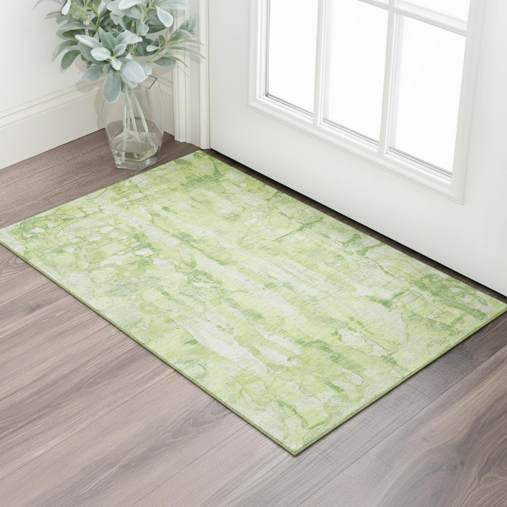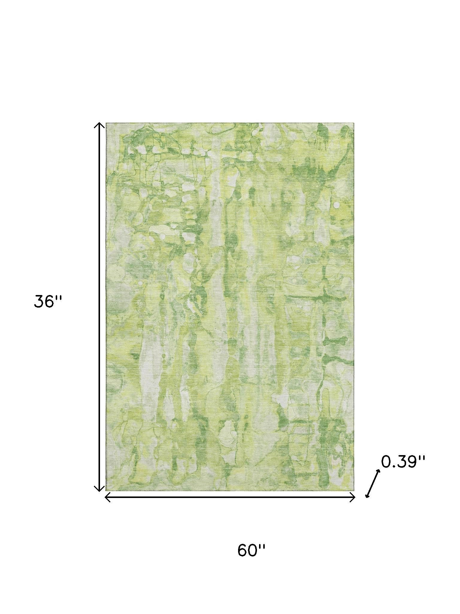Set an inviting tone in your space with this 3-foot x 5-foot lime green and ivory abstract washable area rug with uv protection. Ideal for spaces with kids and pets, this rug is stain resistant to help repel dirt and spilled liquids. Built to last, this rug crafted from polyester fibers is known for its durability and long lasting appeal. Rugs are a great way to showcase your style, hide imperfections, warm your home and reduce noise. This smaller sized, transitional styled rug is just what you need for your walkway, bedside, in front of door, cabinet, refrigerator, or chair. 36.00-inch h x 60.00-inch w x 0.39-inch d.