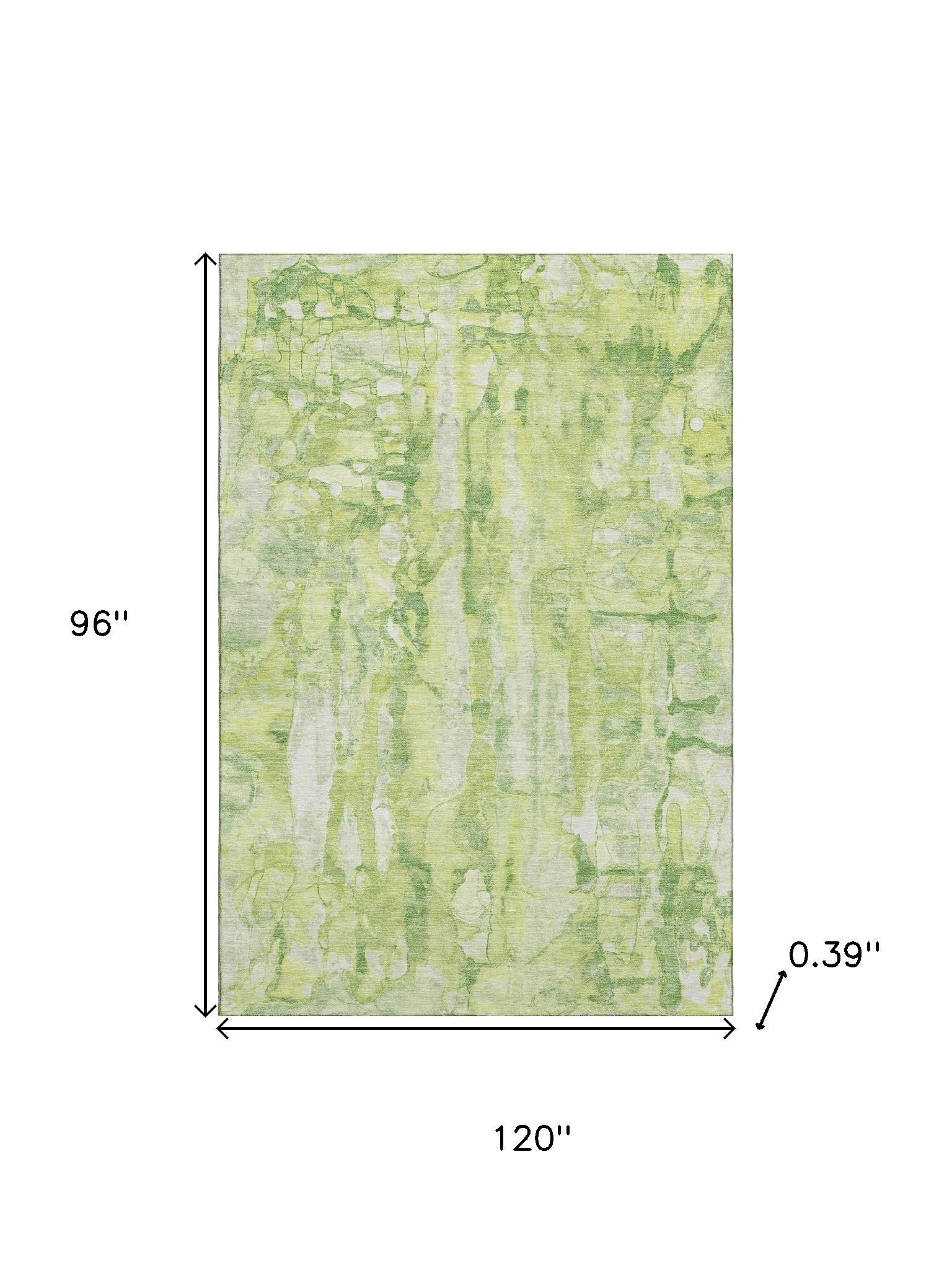 Add some artistry to your room with this 8-foot x 10-foot lime green and ivory abstract washable area rug with uv protection. Ideal for spaces with kids and pets, this rug is stain resistant to help repel dirt and spilled liquids. Built to last, this rug crafted from polyester fibers is known for its durability and long lasting appeal. Rugs are a great way to showcase your style, hide imperfections, warm your home and reduce noise. This larger sized, transitional styled rug is ready to create a focal point or statement piece in your room. 96.00-inch h x 120.00-inch w x 0.39-inch d.