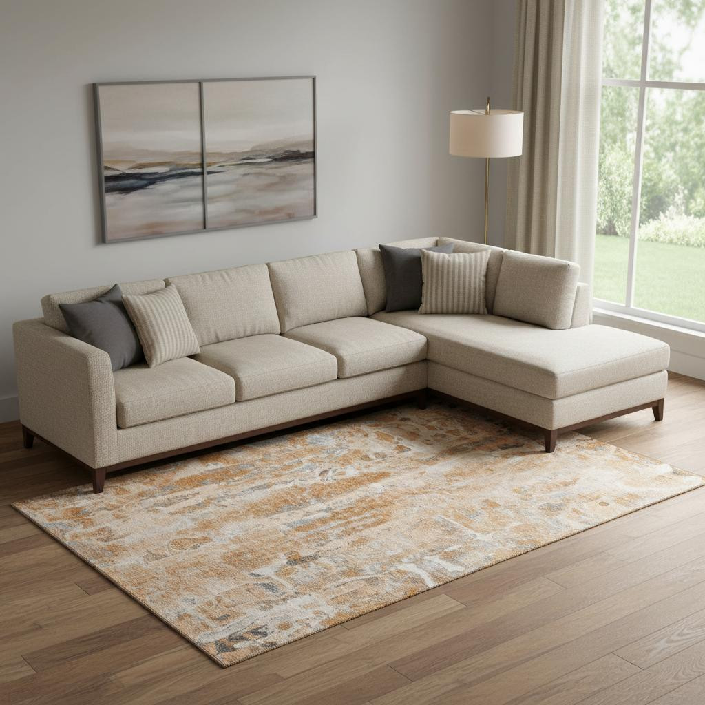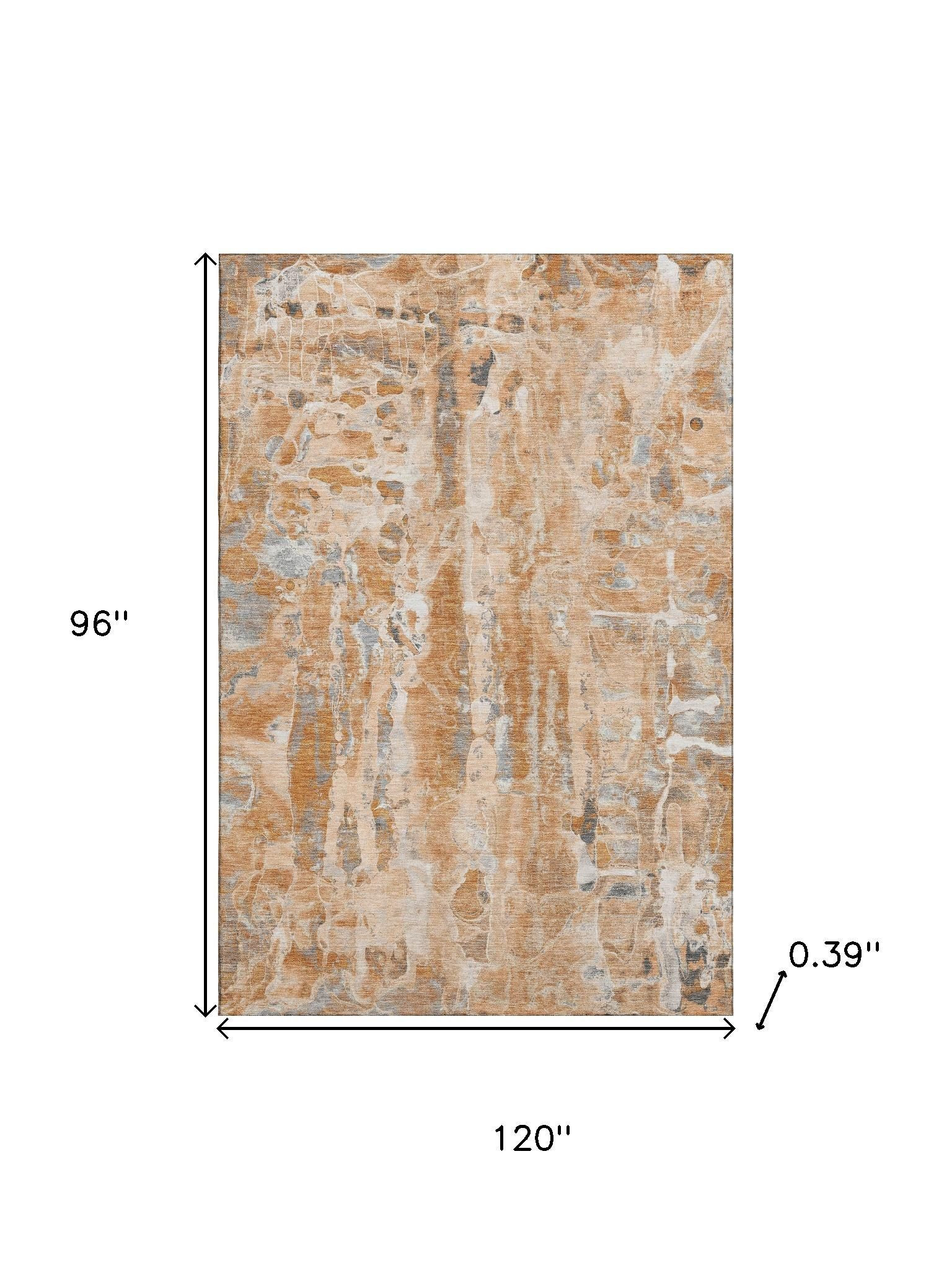 Add great coloration and comfortable texture to your space with this 8-foot x 10-foot orange and ivory abstract washable area rug with uv protection. Ideal for spaces with kids and pets, this rug is stain resistant to help repel dirt and spilled liquids. Built to last, this rug crafted from polyester fibers is known for its durability and long lasting appeal. Rugs are a great way to showcase your style, hide imperfections, warm your home and reduce noise. This larger sized, transitional styled rug is ready to create a focal point or statement piece in your room. 96.00-inch h x 120.00-inch w x 0.39-inch d.