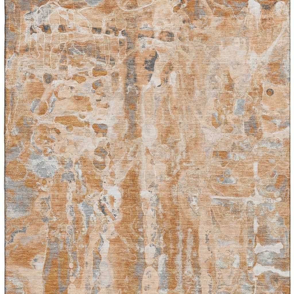 This 10-foot x 14-foot orange and ivory abstract washable area rug with uv protection, is a great way to add warmth to a room. Ideal for spaces with kids and pets, this rug is stain resistant to help repel dirt and spilled liquids. Built to last, this rug crafted from polyester fibers is known for its durability and long lasting appeal. Rugs are a great way to showcase your style, hide imperfections, warm your home and reduce noise. This larger sized, transitional styled rug is ready to create a focal point or statement piece in your room. 120.00-inch h x 168.00-inch w x 0.39-inch d.