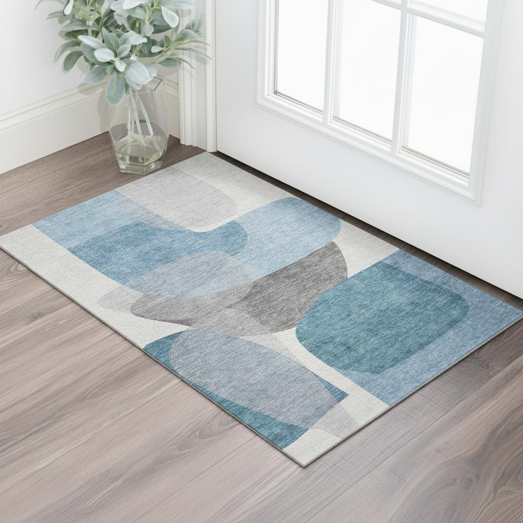 This 3-foot x 5-foot denim blue and gray abstract washable area rug with uv protection, is a great way to add warmth to a room. Ideal for spaces with kids and pets, this rug is stain resistant to help repel dirt and spilled liquids. Built to last, this rug crafted from polyester fibers is known for its durability and long lasting appeal. Rugs are a great way to showcase your style, hide imperfections, warm your home and reduce noise. This smaller sized, transitional styled rug is just what you need for your walkway, bedside, in front of door, cabinet, refrigerator, or chair. 36.00-inch h x 60.00-inch w x 0.39-inch d.