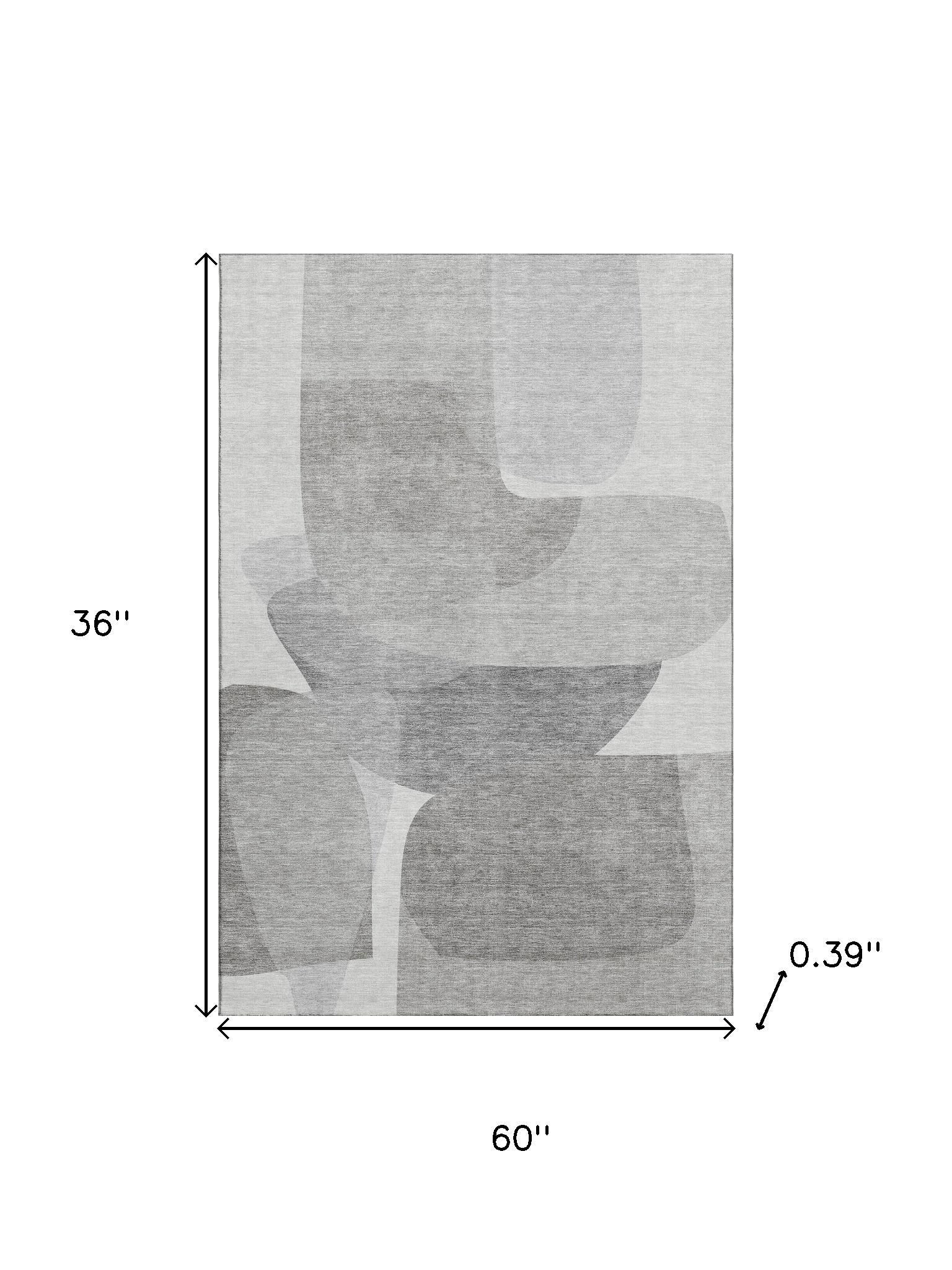 Set an inviting tone in your space with this 3-foot x 5-foot linen and gray abstract washable area rug with uv protection. Ideal for spaces with kids and pets, this rug is stain resistant to help repel dirt and spilled liquids. Built to last, this rug crafted from polyester fibers is known for its durability and long lasting appeal. Rugs are a great way to showcase your style, hide imperfections, warm your home and reduce noise. This smaller sized, transitional styled rug is just what you need for your walkway, bedside, in front of door, cabinet, refrigerator, or chair. 36.00-inch h x 60.00-inch w x 0.39-inch d.