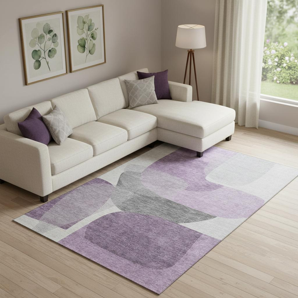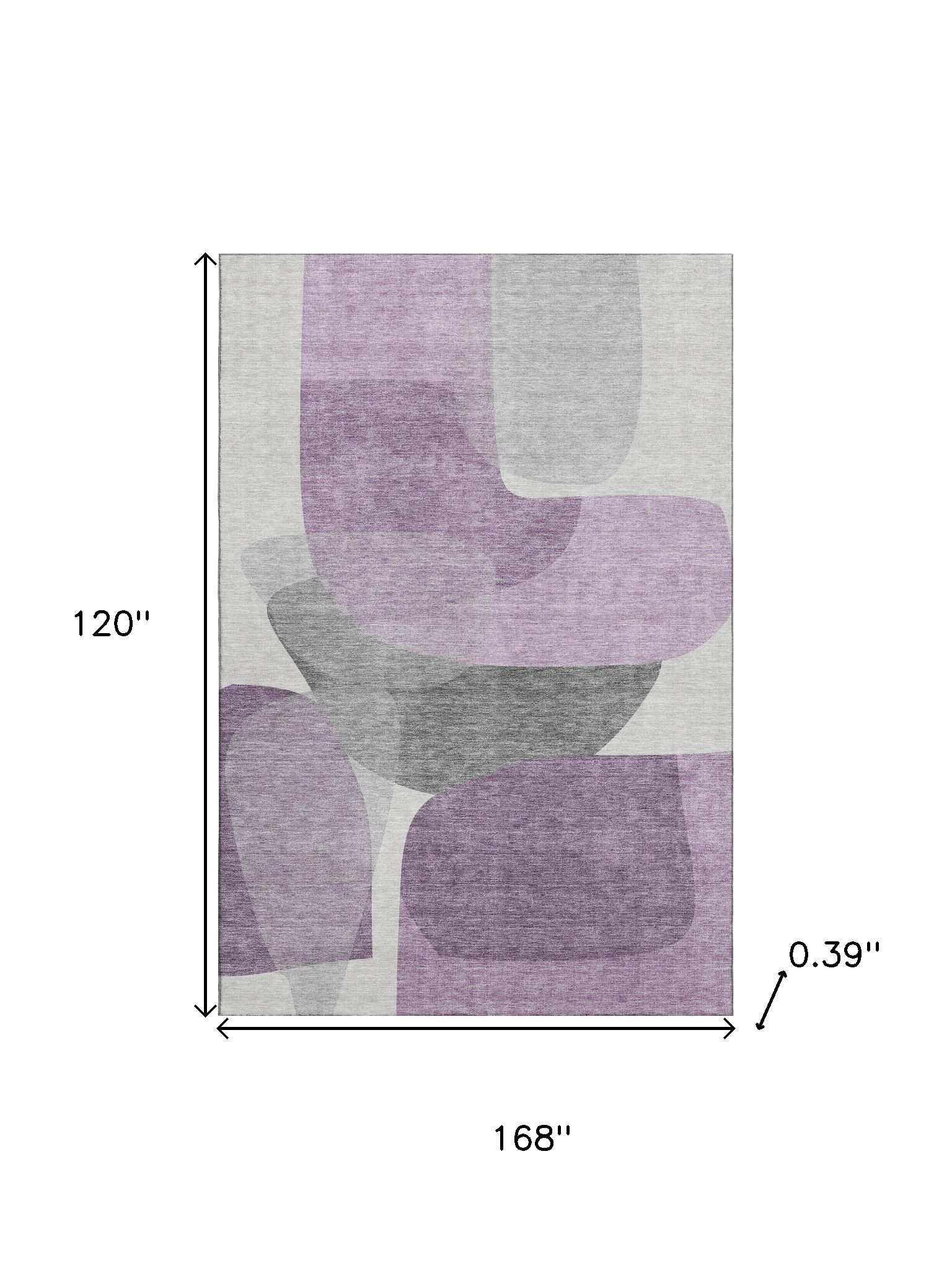 This 10-foot x 14-foot purple and charcoal abstract washable area rug with uv protection, is a great way to add warmth to a room. Ideal for spaces with kids and pets, this rug is stain resistant to help repel dirt and spilled liquids. Built to last, this rug crafted from polyester fibers is known for its durability and long lasting appeal. Rugs are a great way to showcase your style, hide imperfections, warm your home and reduce noise. This larger sized, transitional styled rug is ready to create a focal point or statement piece in your room. 120.00-inch h x 168.00-inch w x 0.39-inch d.