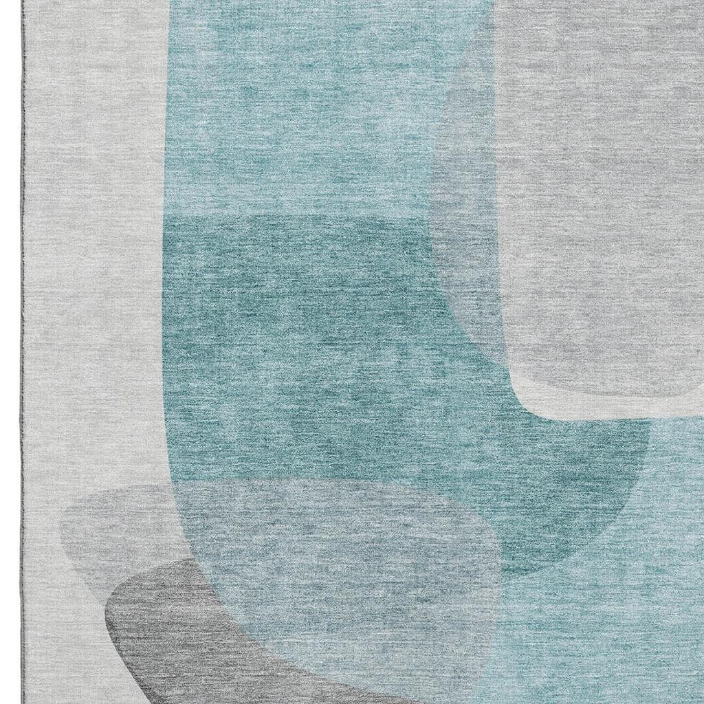 Set an inviting tone in your space with this 8-foot x 10-foot teal and gray abstract washable area rug with uv protection. Ideal for spaces with kids and pets, this rug is stain resistant to help repel dirt and spilled liquids. Built to last, this rug crafted from polyester fibers is known for its durability and long lasting appeal. Rugs are a great way to showcase your style, hide imperfections, warm your home and reduce noise. This larger sized, transitional styled rug is ready to create a focal point or statement piece in your room. 96.00-inch h x 120.00-inch w x 0.39-inch d.