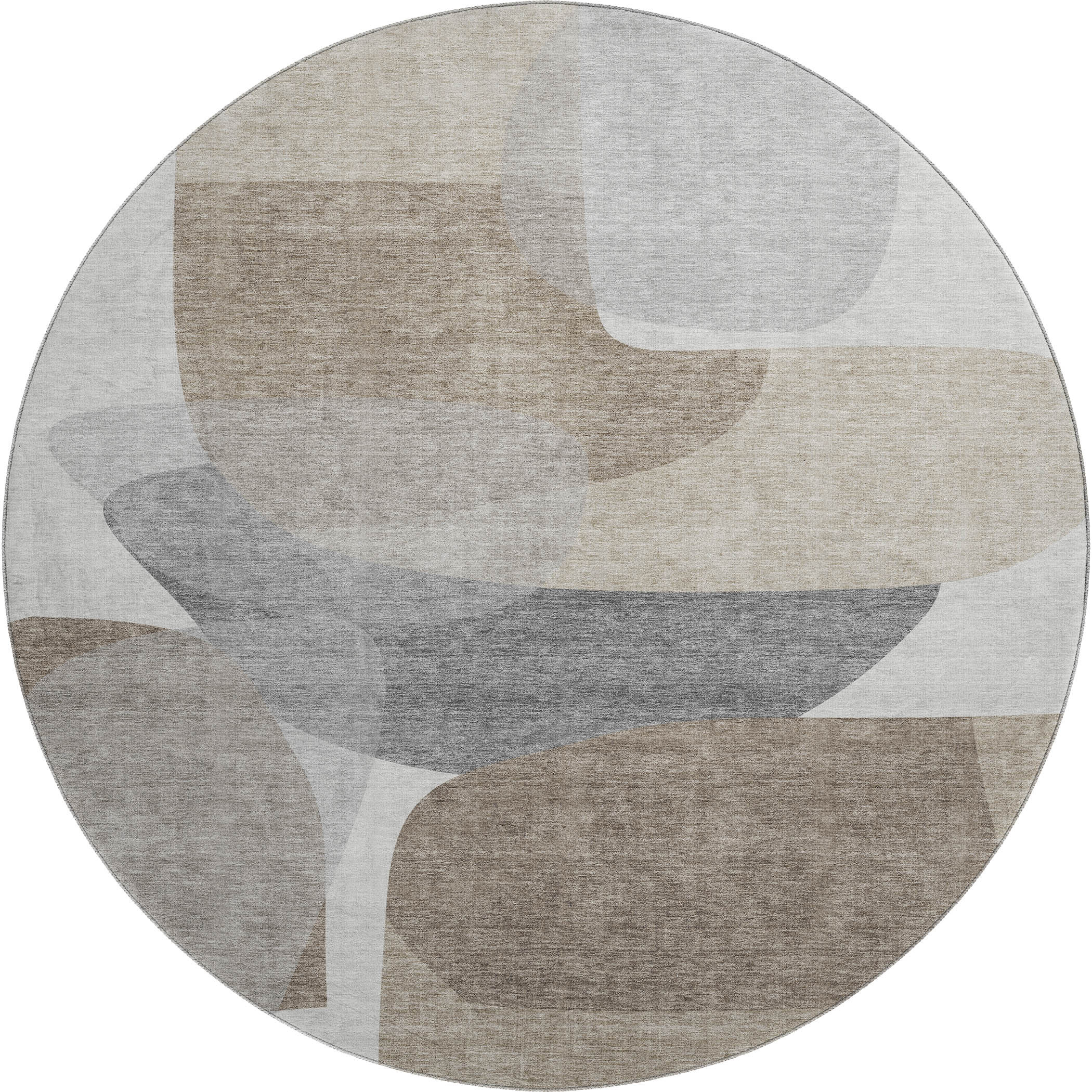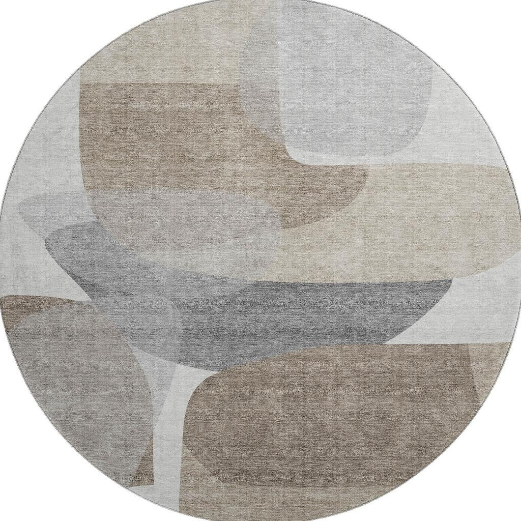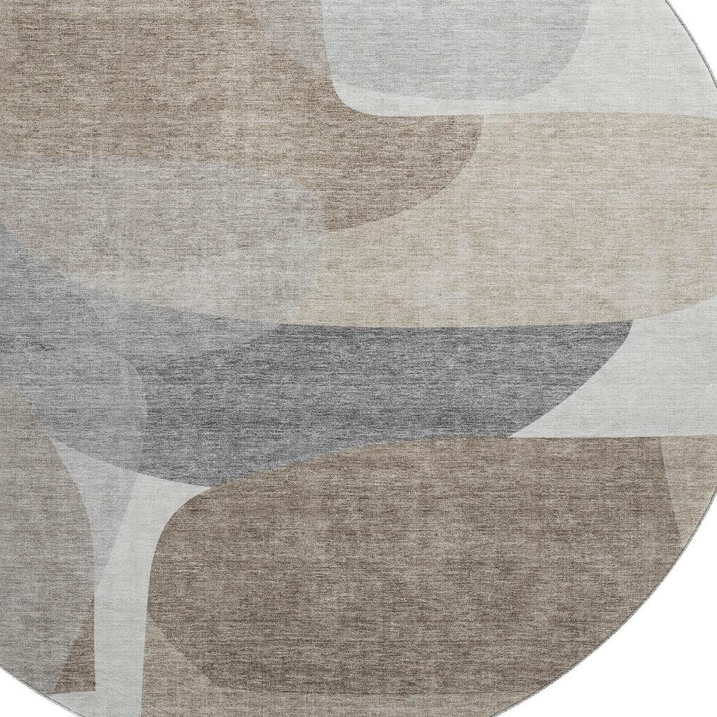 Add some artistry to your room with this 8-foot taupe and gray abstract washable round rug with uv protection. Ideal for spaces with kids and pets, this rug is stain resistant to help repel dirt and spilled liquids. Built to last, this rug crafted from polyester fibers is known for its durability and long lasting appeal. Rugs are a great way to showcase your style, hide imperfections, warm your home and reduce noise. This larger sized, transitional styled rug is ready to create a focal point or statement piece in your room. 96.00-inch h x 96.00-inch w x 0.39-inch d.