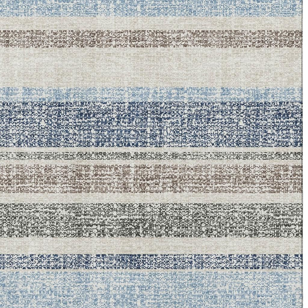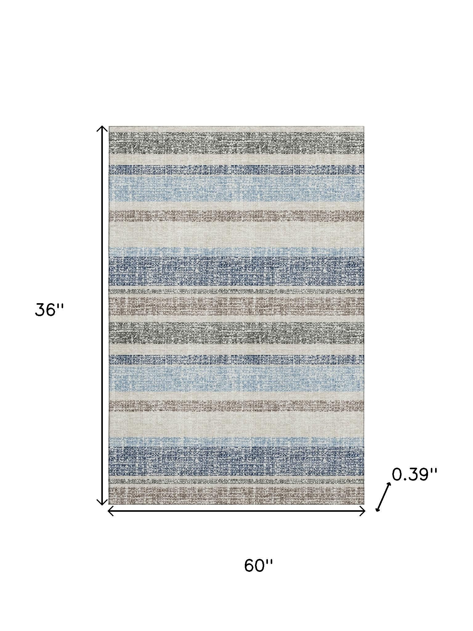 Add great coloration and comfortable texture to your space with this 3-foot x 5-foot navy blue and beige striped washable area rug with uv protection. Ideal for spaces with kids and pets, this rug is stain resistant to help repel dirt and spilled liquids. Built to last, this rug crafted from polyester fibers is known for its durability and long lasting appeal. Rugs are a great way to showcase your style, hide imperfections, warm your home and reduce noise. This smaller sized, transitional styled rug is just what you need for your walkway, bedside, in front of door, cabinet, refrigerator, or chair. 36.00-inch h x 60.00-inch w x 0.39-inch d.