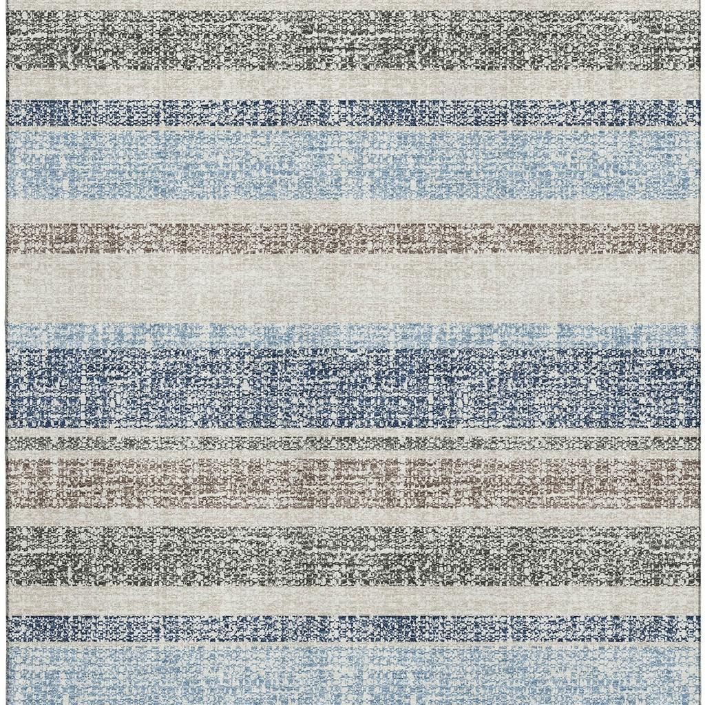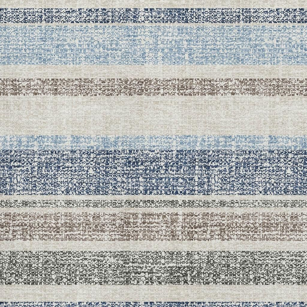 This 5-foot x 8-foot navy blue and beige striped washable area rug with uv protection, is a great way to add warmth to a room. Ideal for spaces with kids and pets, this rug is stain resistant to help repel dirt and spilled liquids. Built to last, this rug crafted from polyester fibers is known for its durability and long lasting appeal. Rugs are a great way to showcase your style, hide imperfections, warm your home and reduce noise. This larger sized, transitional styled rug is ready to create a focal point or statement piece in your room. 60.00-inch h x 90.00-inch w x 0.39-inch d.