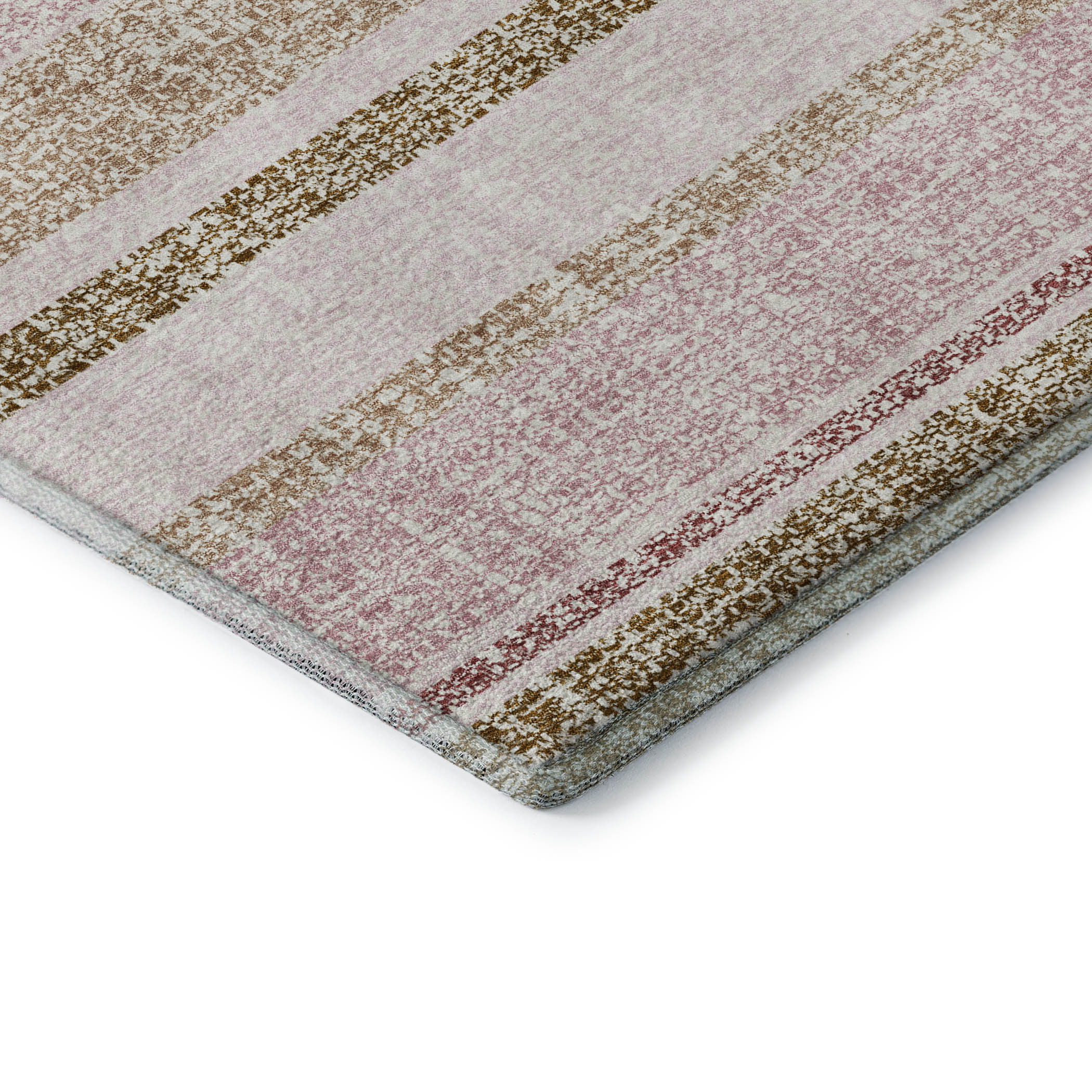 Set an inviting tone in your space with this 3-foot x 5-foot pink and beige striped washable area rug with uv protection. Ideal for spaces with kids and pets, this rug is stain resistant to help repel dirt and spilled liquids. Built to last, this rug crafted from polyester fibers is known for its durability and long lasting appeal. Rugs are a great way to showcase your style, hide imperfections, warm your home and reduce noise. This smaller sized, transitional styled rug is just what you need for your walkway, bedside, in front of door, cabinet, refrigerator, or chair. 36.00-inch h x 60.00-inch w x 0.39-inch d.