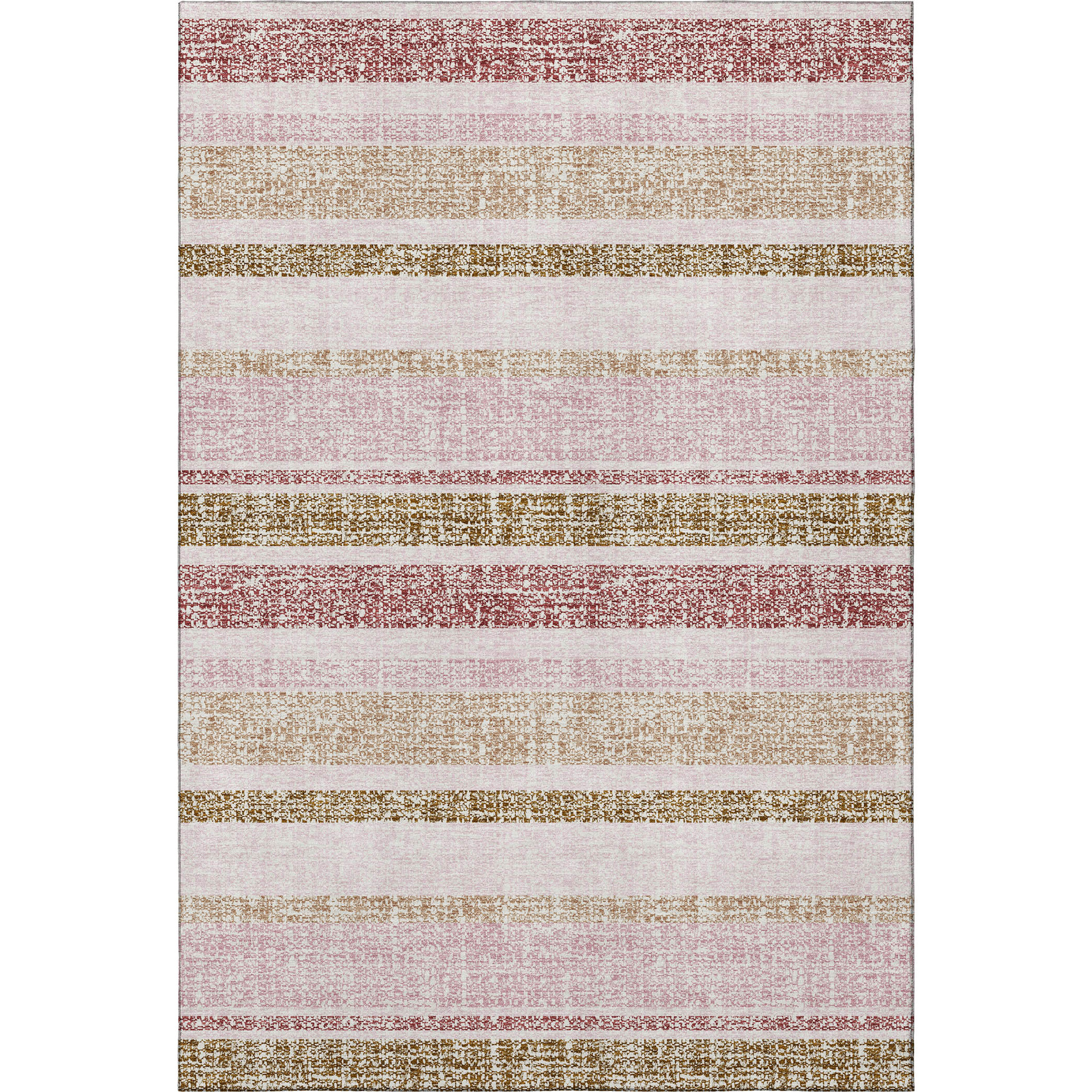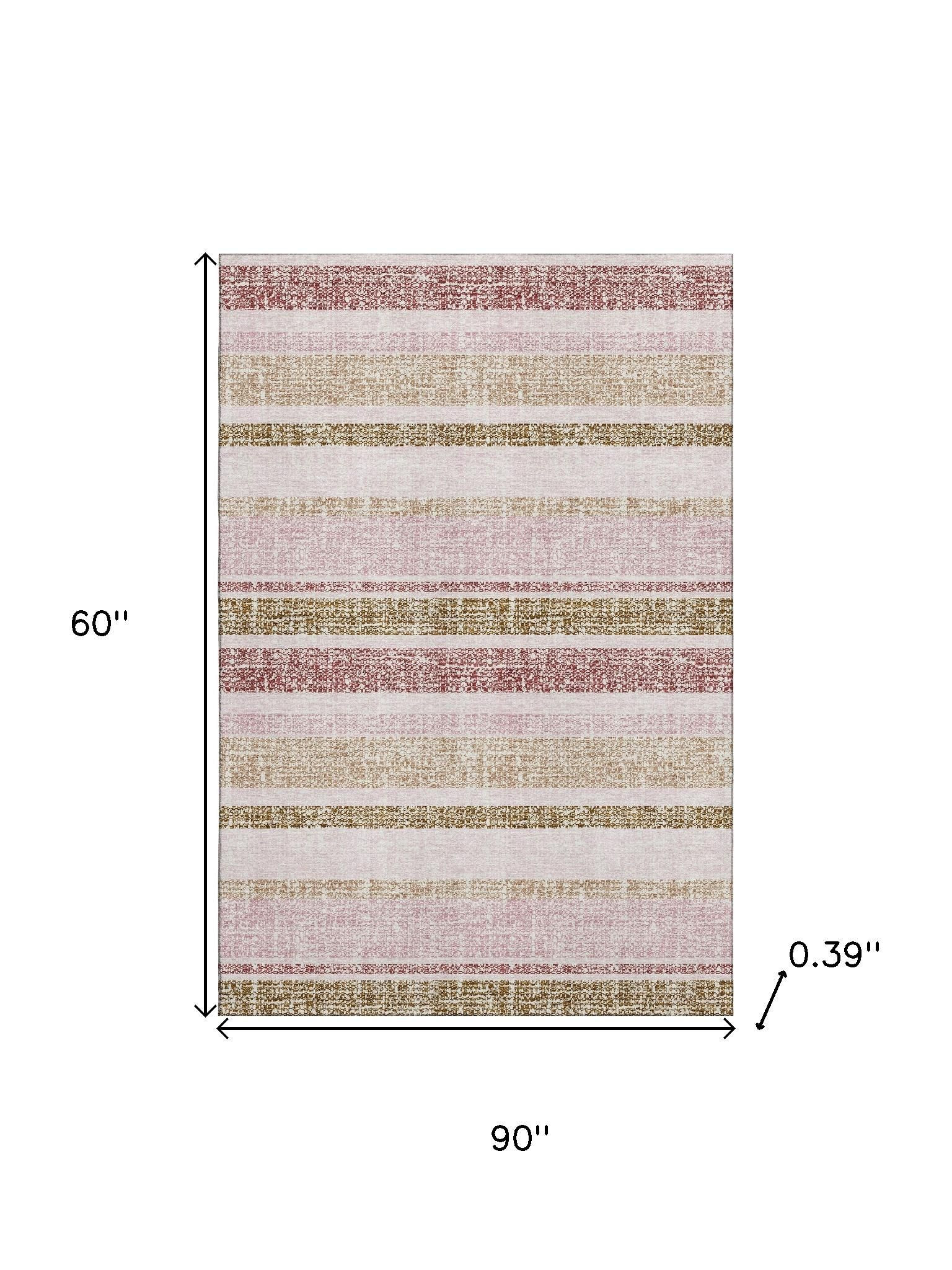 This 5-foot x 8-foot pink and beige striped washable area rug with uv protection, is a great way to add warmth to a room. Ideal for spaces with kids and pets, this rug is stain resistant to help repel dirt and spilled liquids. Built to last, this rug crafted from polyester fibers is known for its durability and long lasting appeal. Rugs are a great way to showcase your style, hide imperfections, warm your home and reduce noise. This larger sized, transitional styled rug is ready to create a focal point or statement piece in your room. 60.00-inch h x 90.00-inch w x 0.39-inch d.