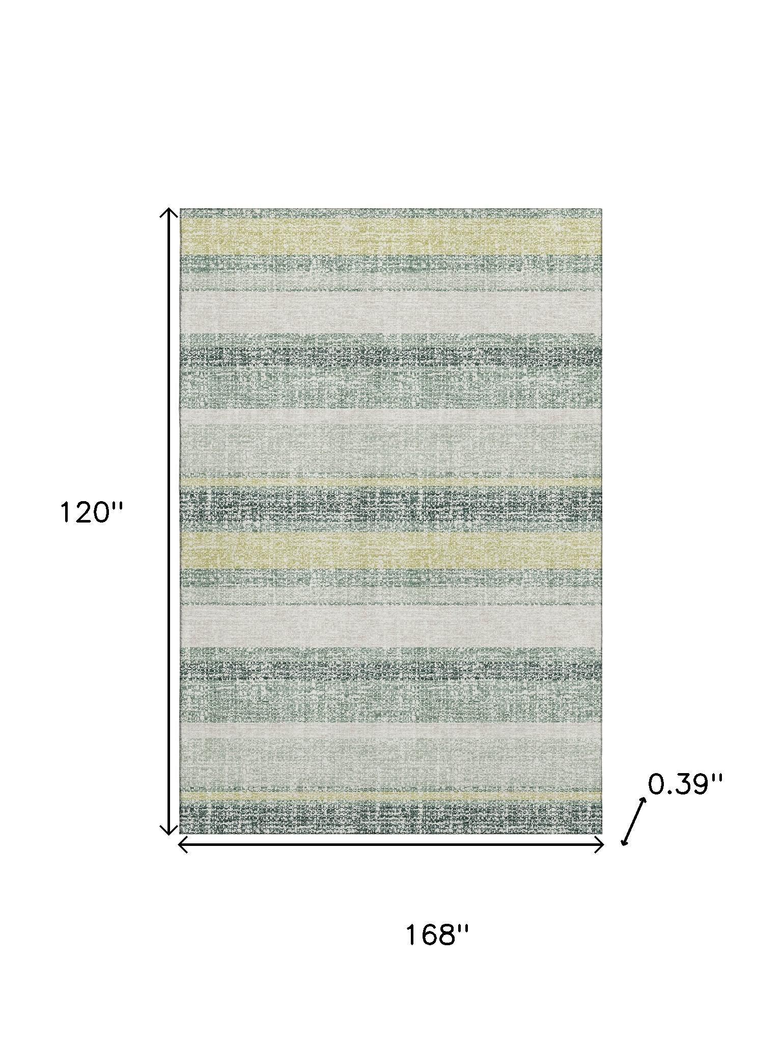 This 10-foot x 14-foot pale aqua and beige striped washable area rug with uv protection, is a great way to add warmth to a room. Ideal for spaces with kids and pets, this rug is stain resistant to help repel dirt and spilled liquids. Built to last, this rug crafted from polyester fibers is known for its durability and long lasting appeal. Rugs are a great way to showcase your style, hide imperfections, warm your home and reduce noise. This larger sized, transitional styled rug is ready to create a focal point or statement piece in your room. 120.00-inch h x 168.00-inch w x 0.39-inch d.