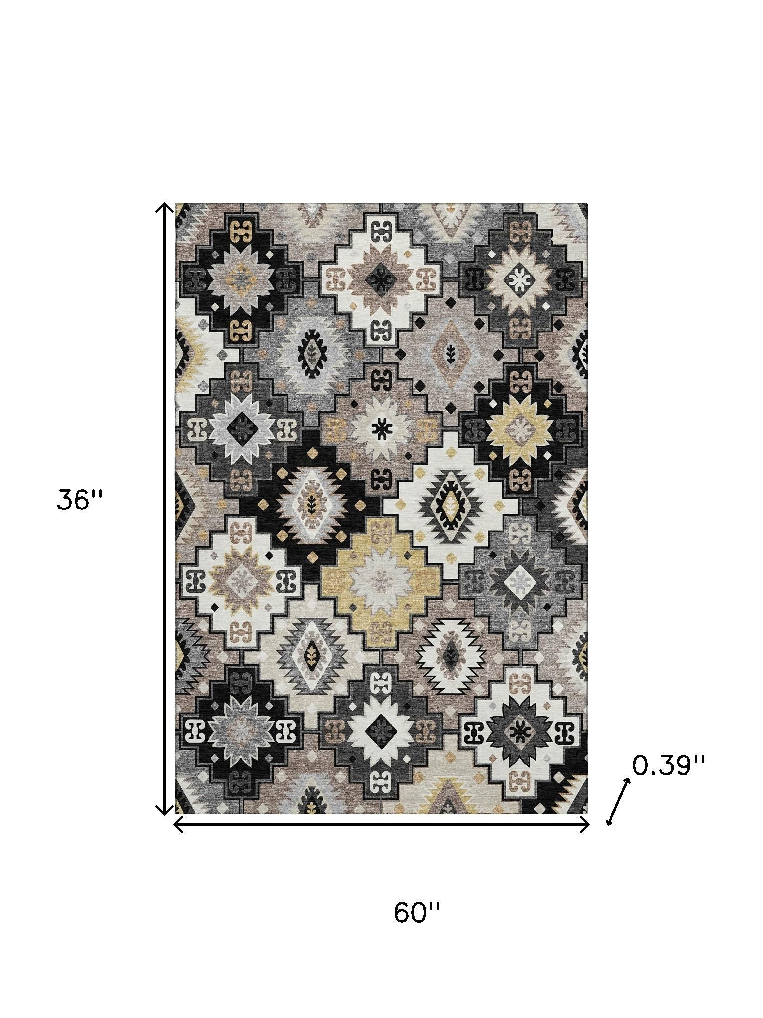 This 3-foot x 5-foot black and gray geometric washable area rug with uv protection, is a great way to add warmth to a room. Ideal for spaces with kids and pets, this rug is stain resistant to help repel dirt and spilled liquids. Built to last, this rug crafted from polyester fibers is known for its durability and long lasting appeal. Rugs are a great way to showcase your style, hide imperfections, warm your home and reduce noise. This smaller sized, transitional styled rug is just what you need for your walkway, bedside, in front of door, cabinet, refrigerator, or chair. 36.00-inch h x 60.00-inch w x 0.39-inch d.