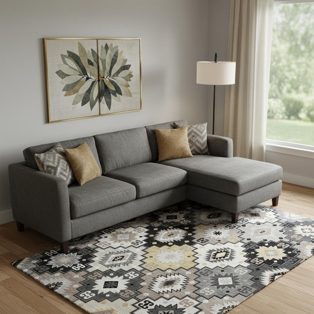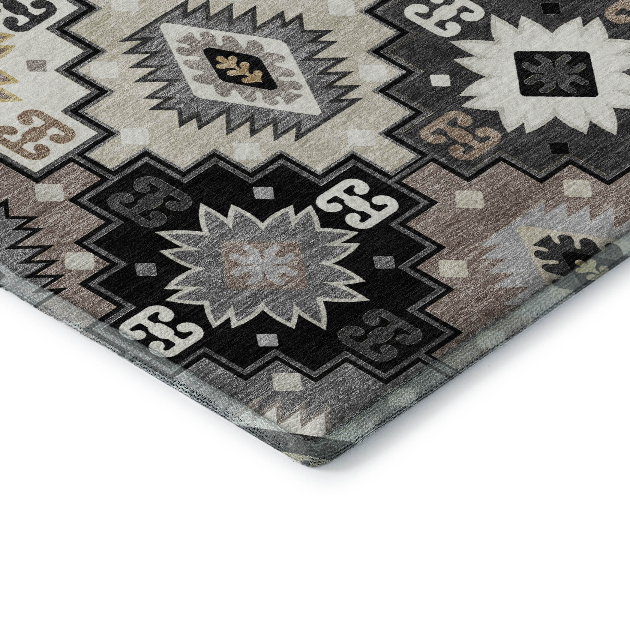 Set an inviting tone in your space with this 8-foot x 10-foot black and gray geometric washable area rug with uv protection. Ideal for spaces with kids and pets, this rug is stain resistant to help repel dirt and spilled liquids. Built to last, this rug crafted from polyester fibers is known for its durability and long lasting appeal. Rugs are a great way to showcase your style, hide imperfections, warm your home and reduce noise. This larger sized, transitional styled rug is ready to create a focal point or statement piece in your room. 96.00-inch h x 120.00-inch w x 0.39-inch d.
