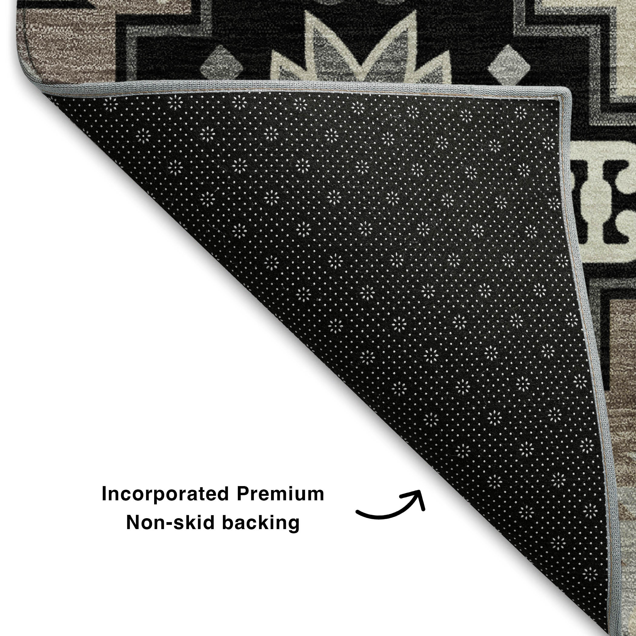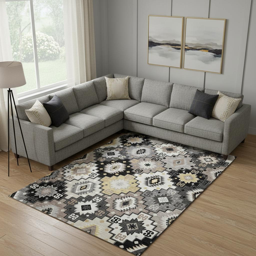Set an inviting tone in your space with this 10-foot x 14-foot black and gray geometric washable area rug with uv protection. Ideal for spaces with kids and pets, this rug is stain resistant to help repel dirt and spilled liquids. Built to last, this rug crafted from polyester fibers is known for its durability and long lasting appeal. Rugs are a great way to showcase your style, hide imperfections, warm your home and reduce noise. This larger sized, transitional styled rug is ready to create a focal point or statement piece in your room. 120.00-inch h x 168.00-inch w x 0.39-inch d.