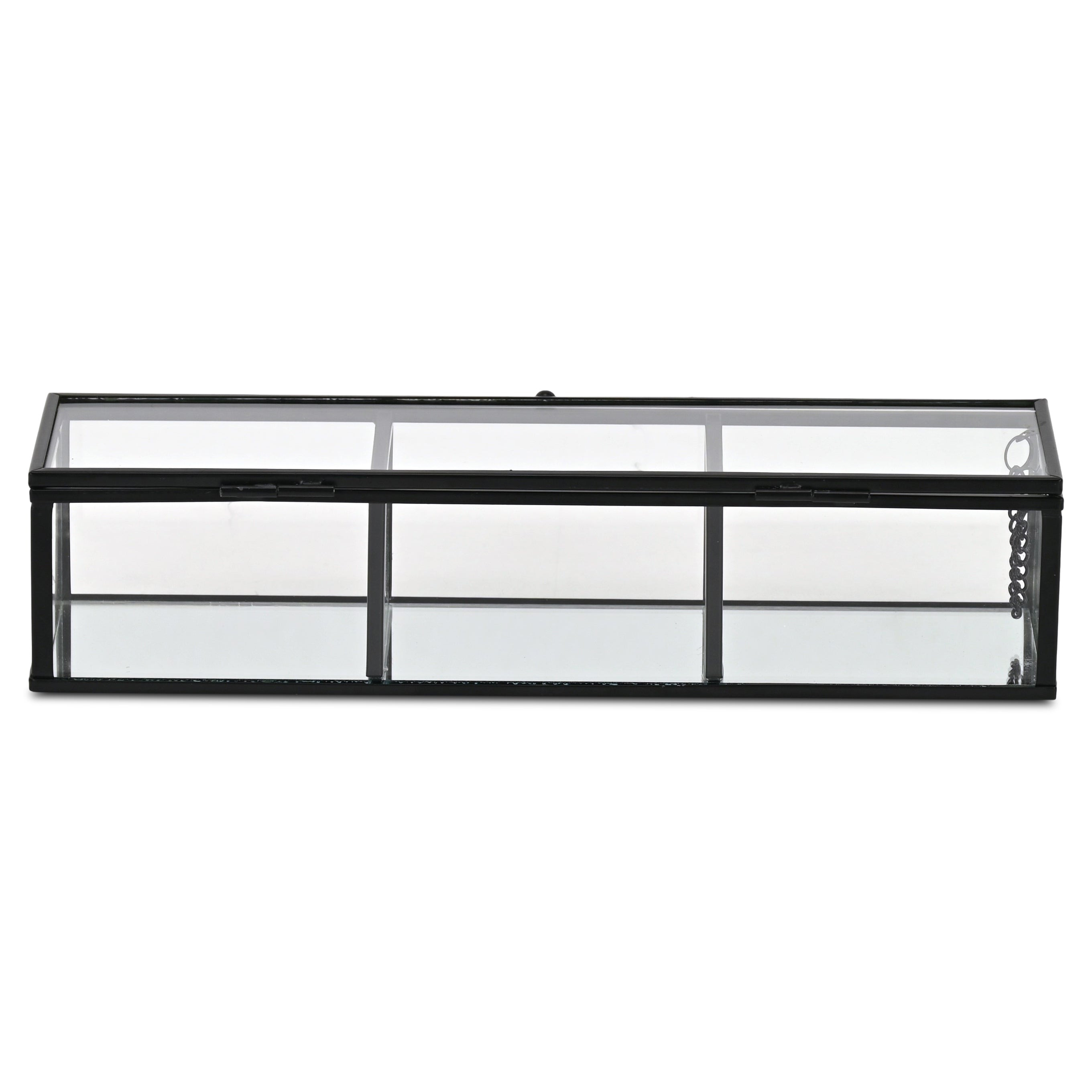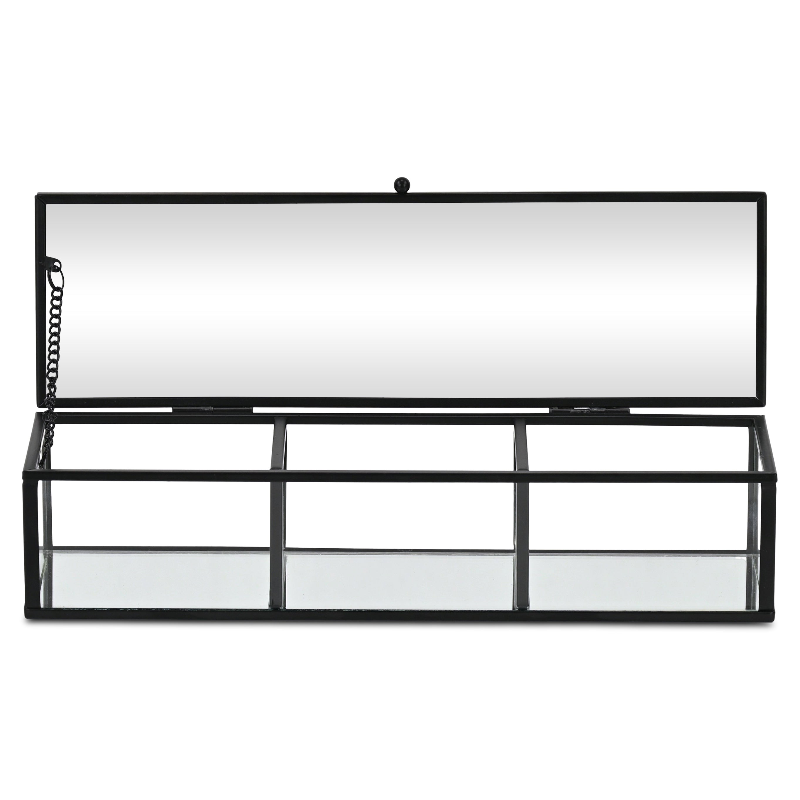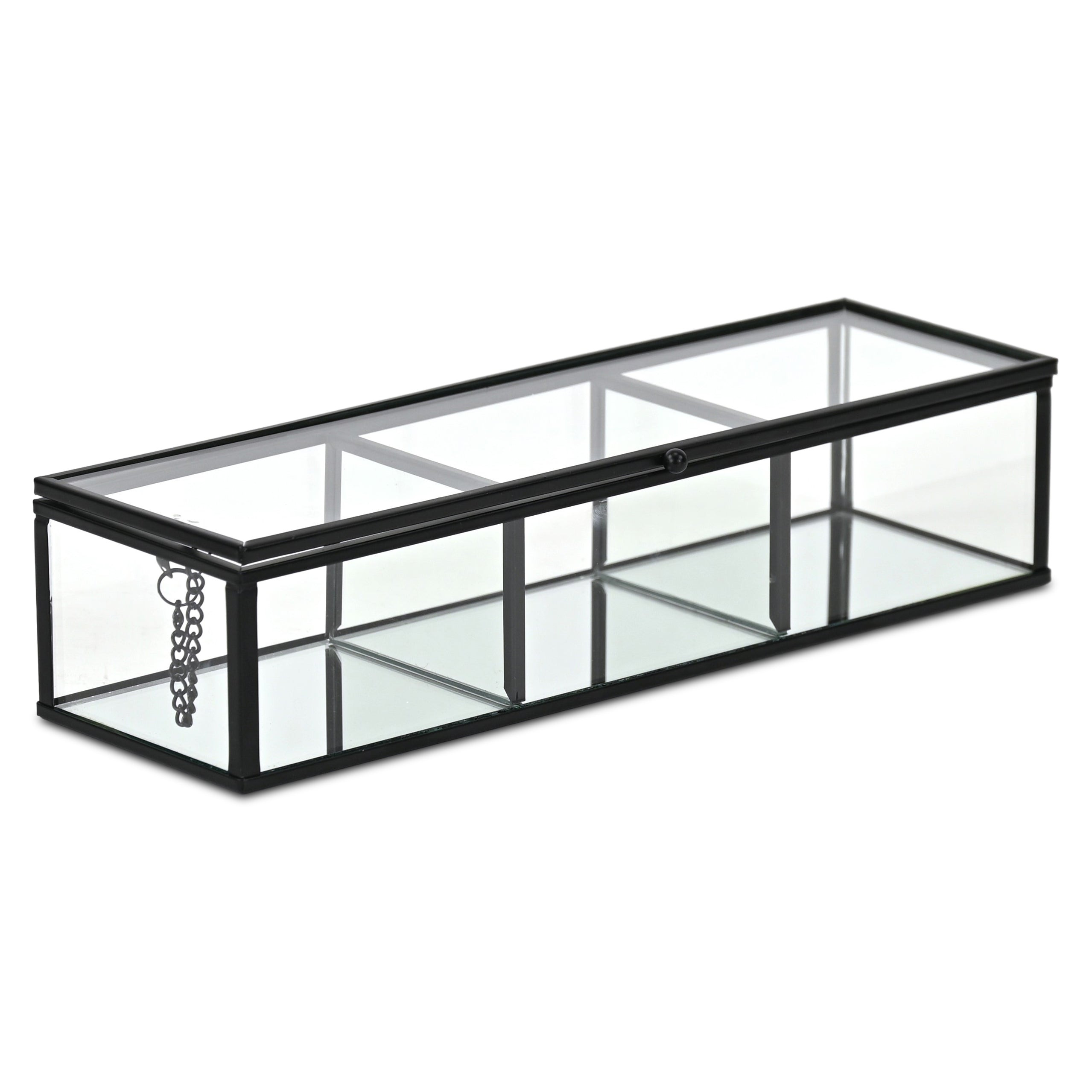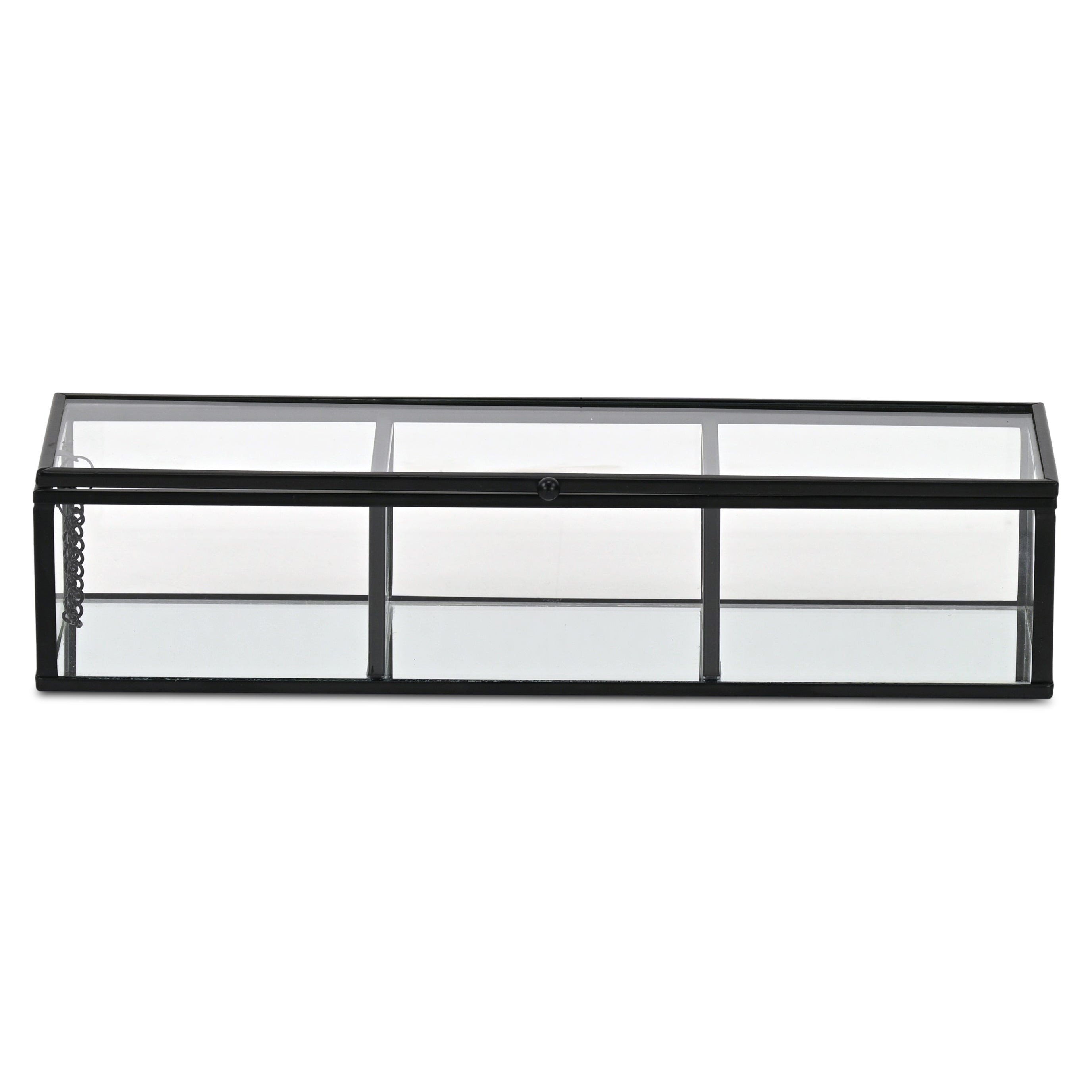 Bring some sizzle to your space with this eye-catching 2-inch black glass hand painted decorative box. This unique decorative object makes a great piece for your coffee table, desk, or bookshelf. It's a perfect addition for those who love an up-to-the-minute look and feel. 2.38-inch h x 10.63-inch w x 3.25-inch d.