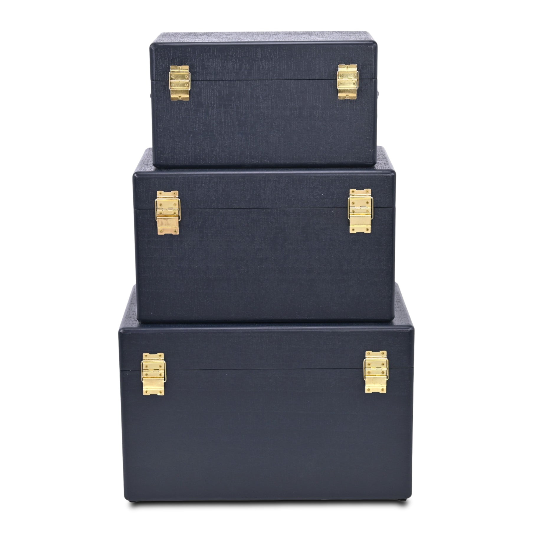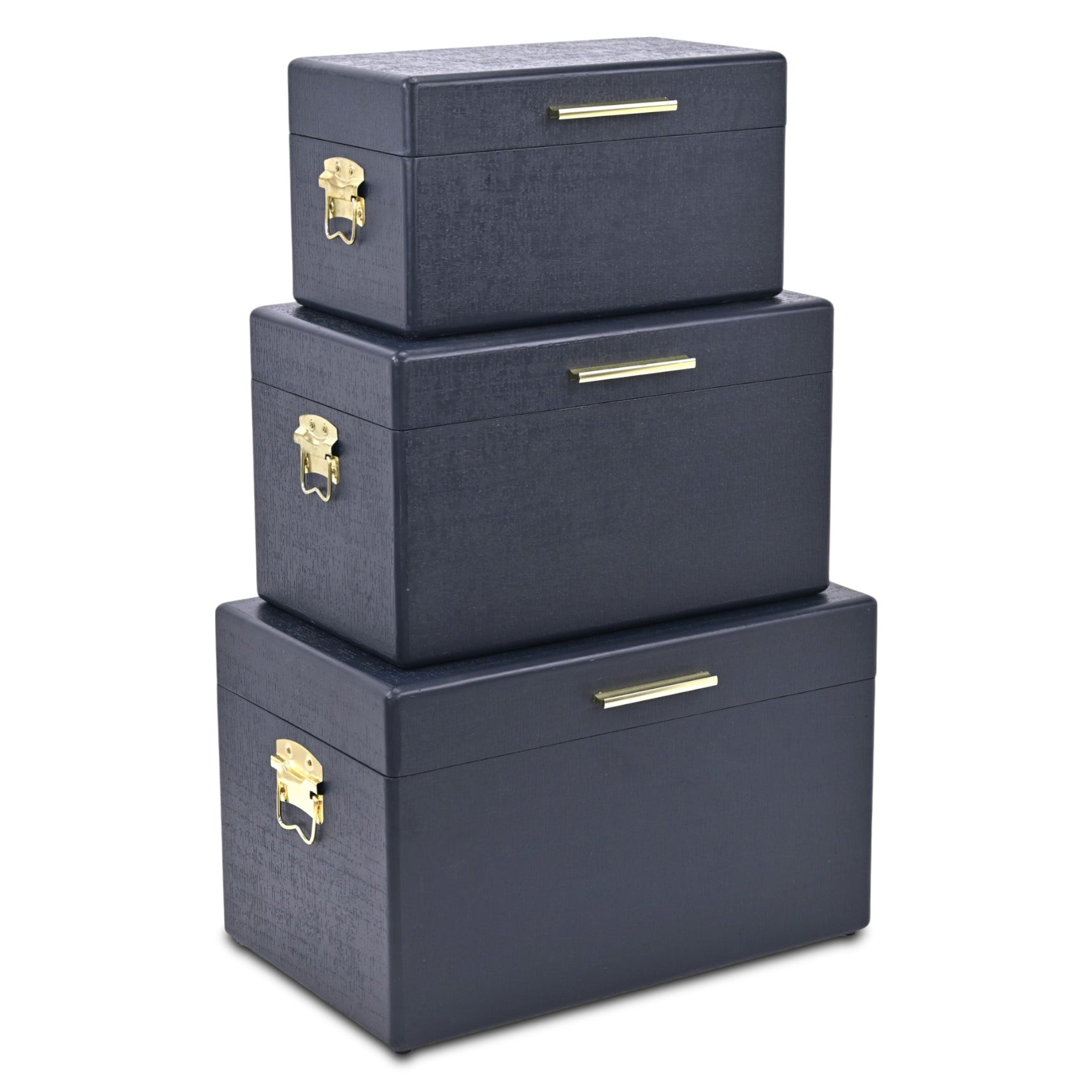 Unique and decorative, this set of three navy blue wood hand painted decorative box will leave a lasting impression. This unique decorative object makes a great piece for your coffee table, desk, or bookshelf. Great to use on its own or mix with other decorations for the perfect look. 12.00-inch h x 19.00-inch w x 11.75-inch d.
