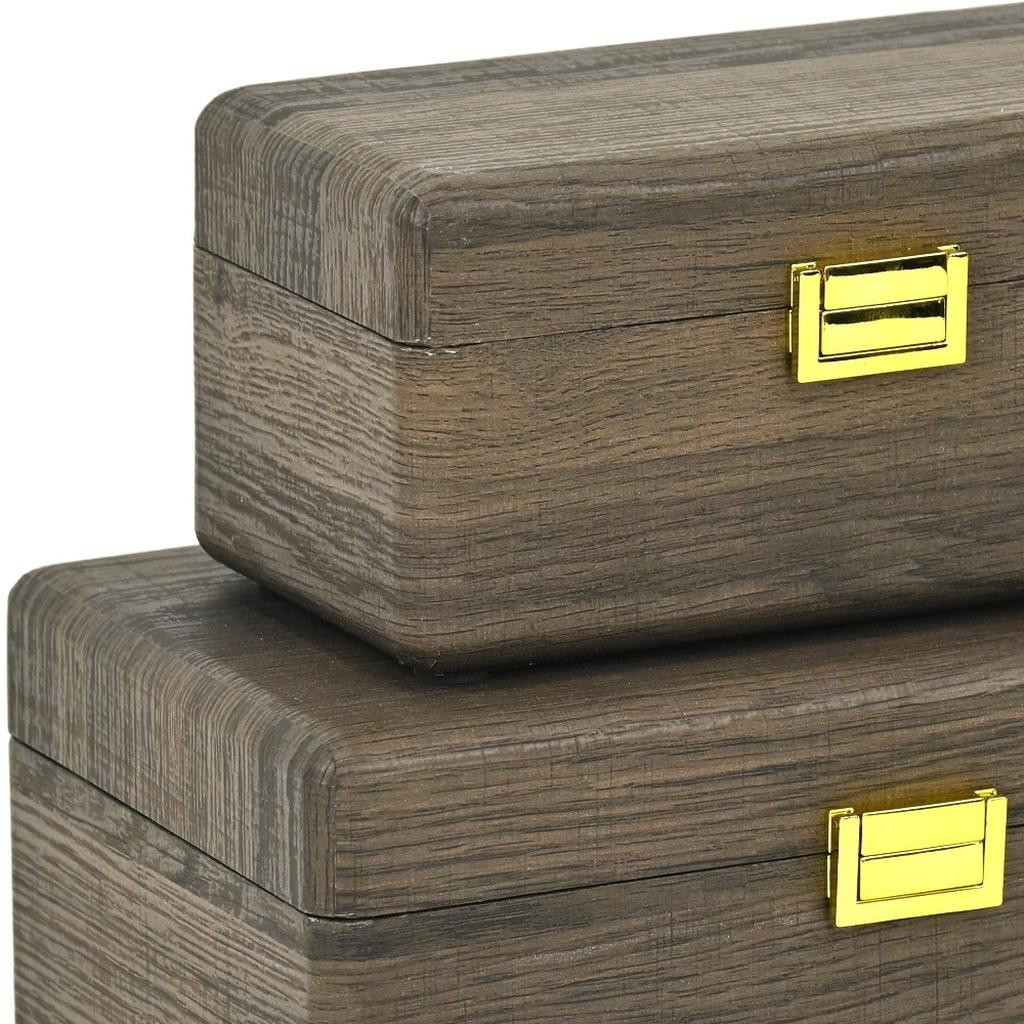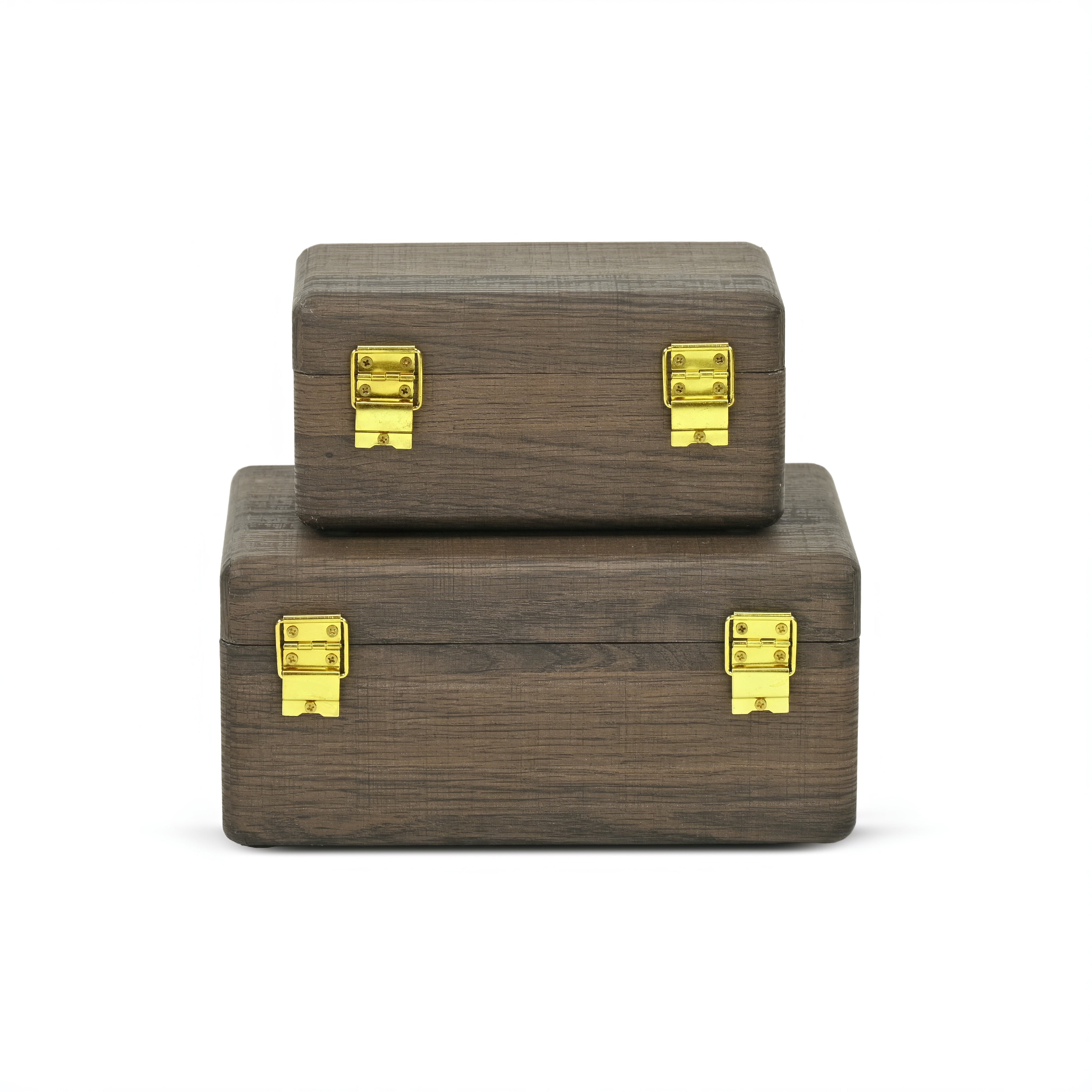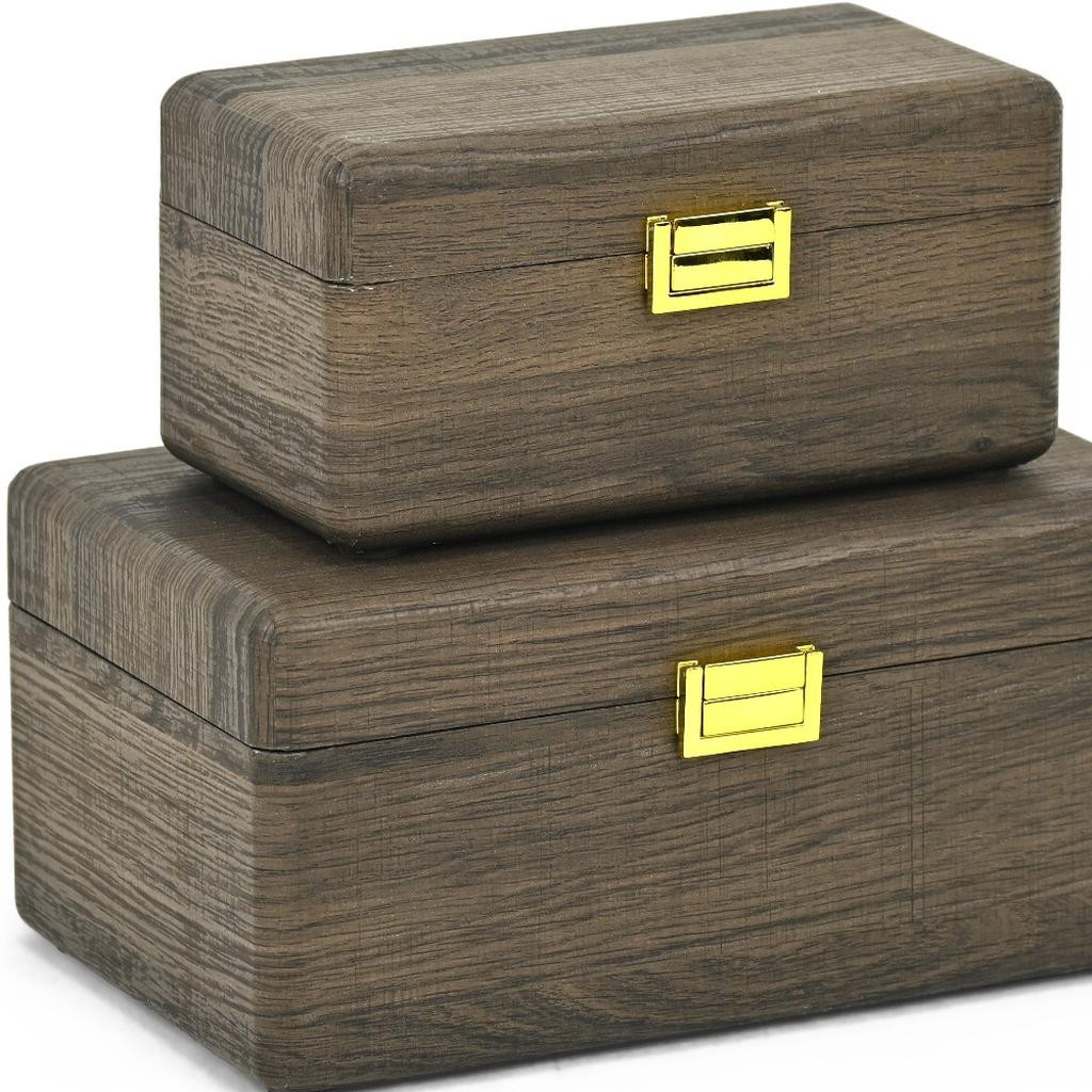 The set of two dark brown wood hand painted decorative box is the perfect decorative accessory for your home. This unique decorative object makes a great piece for your coffee table, desk, or bookshelf. It's a perfect addition for those who love an up-to-the-minute look and feel. 5.00-inch h x 10.00-inch w x 6.25-inch d.