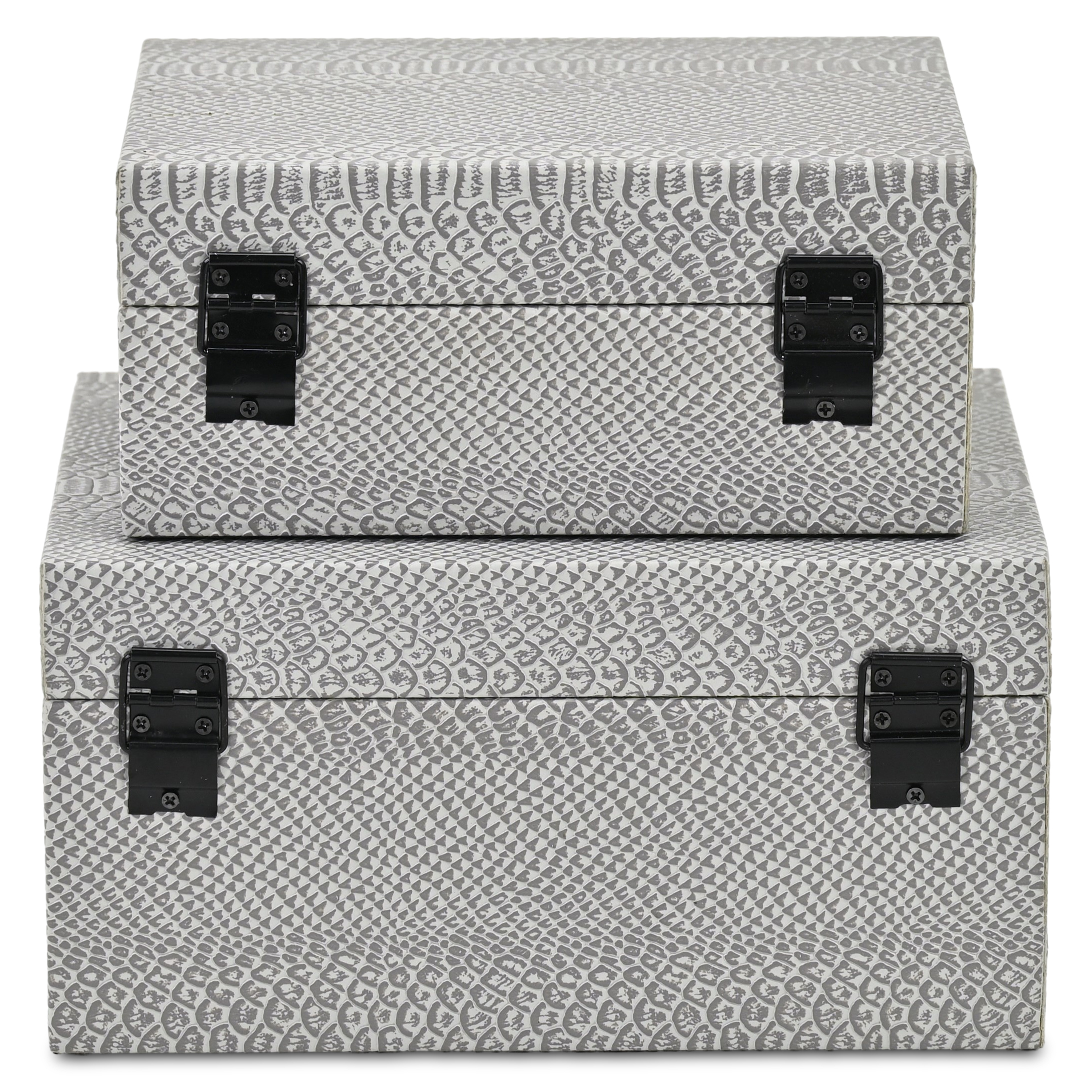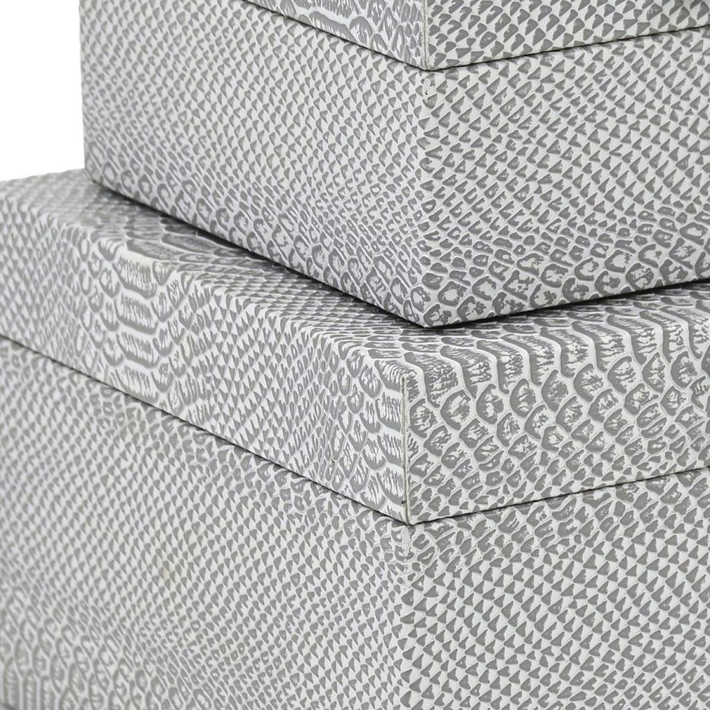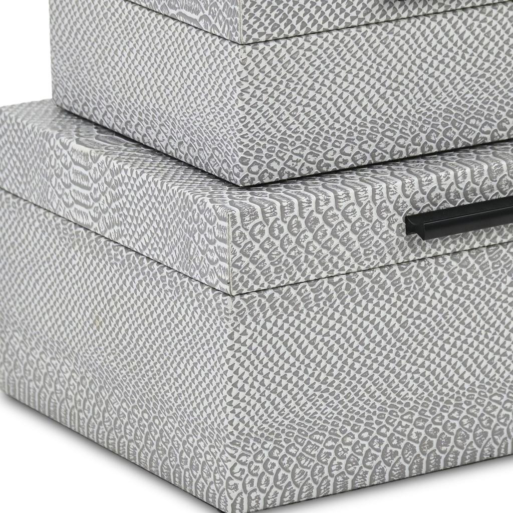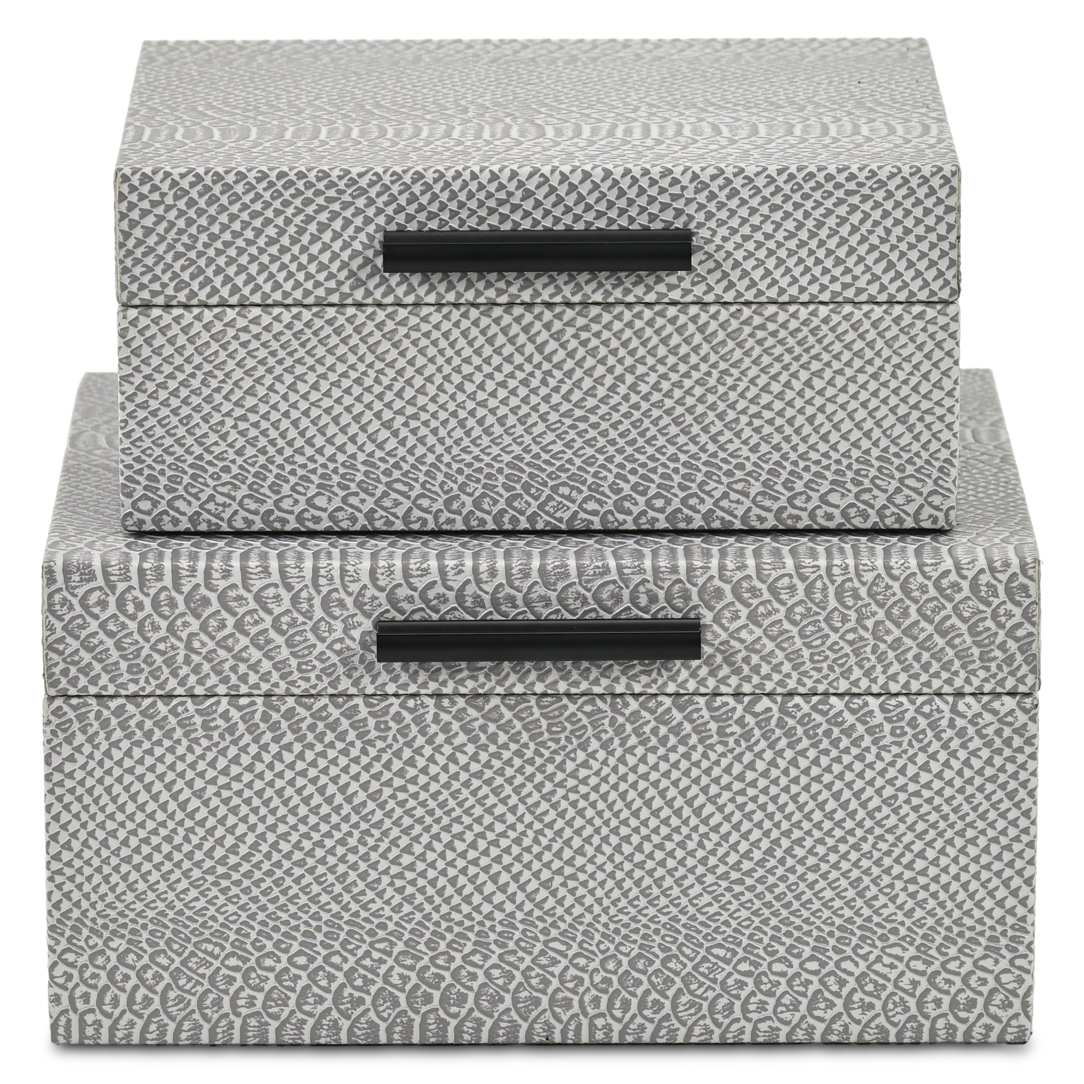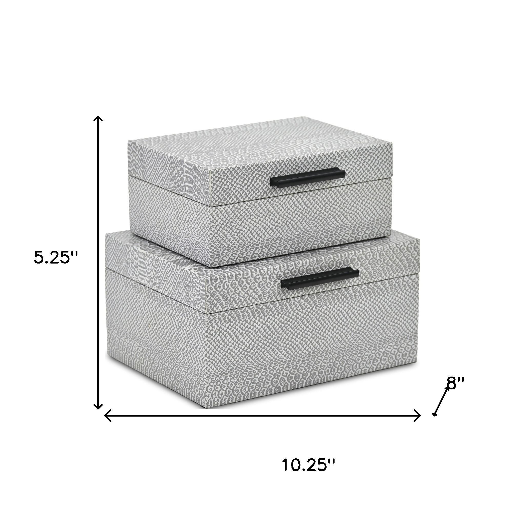 This set of two gray wood hand painted decorative box will add a beautiful decorative accent to your decor. This unique decorative object makes a great piece for your coffee table, desk, or bookshelf. Great to use on its own or mix with other decorations for the perfect look. 5.25-inch h x 10.25-inch w x 8.00-inch d.