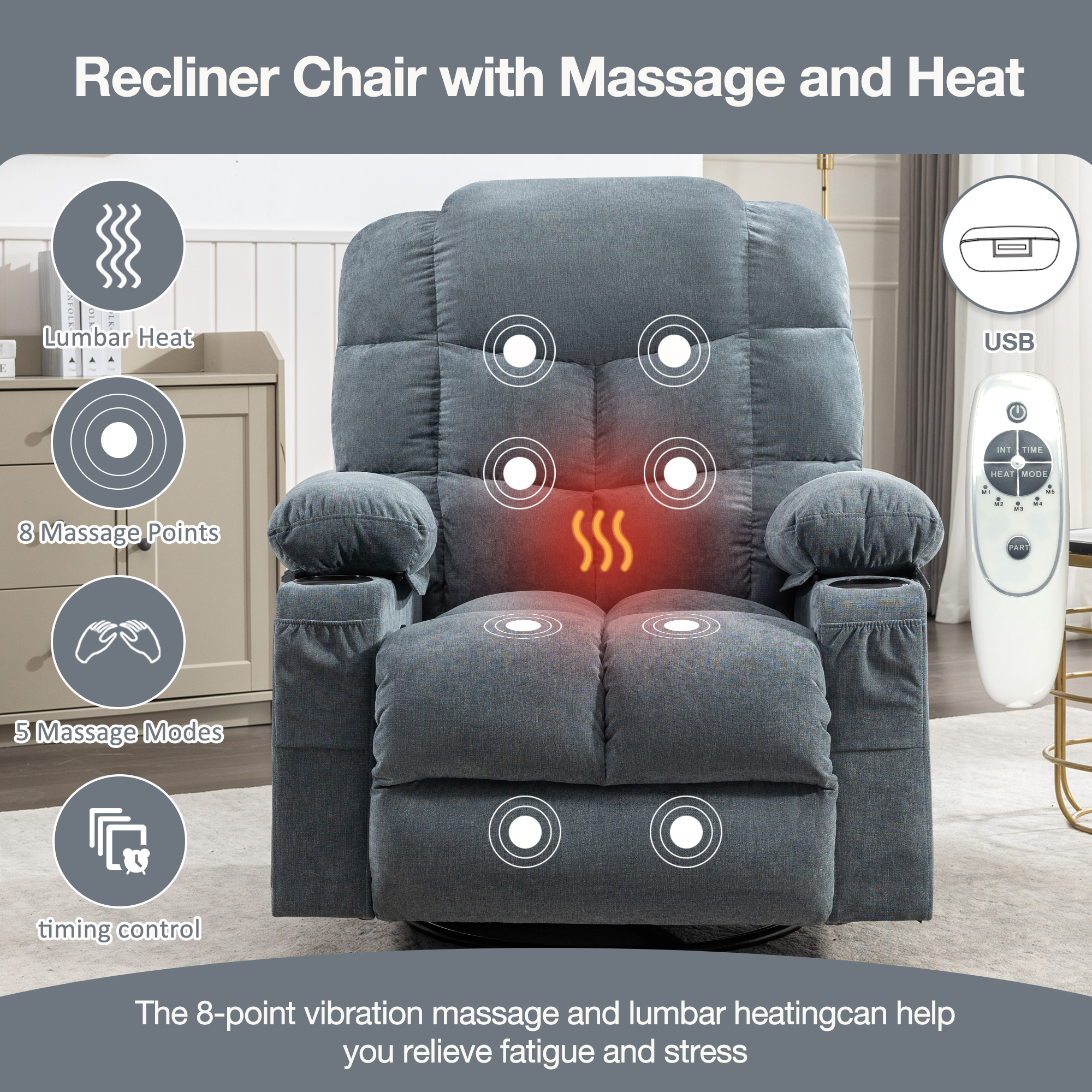If you need a great place to sit back and relax at the end of a long day, this 37-inch blue faux leather heated massage lift assist recliner with USB is what you need. Designed to be hardy and long lasting, this chair is upholstered in durable faux leather. Includes a remote to easily get you to your desired position. This fabulous recliner features massage and heat to help relieve stress, tension, and pain whilst the lift mechanism gives assistance for those who need a little help getting up. This cozy recliner is a comfortable and practical option for living room, family room, den, bedroom, and is ideal for the elderly or those with mobility issues. 42.52-inch h x 37.40-inch w x 38.18-inch d.