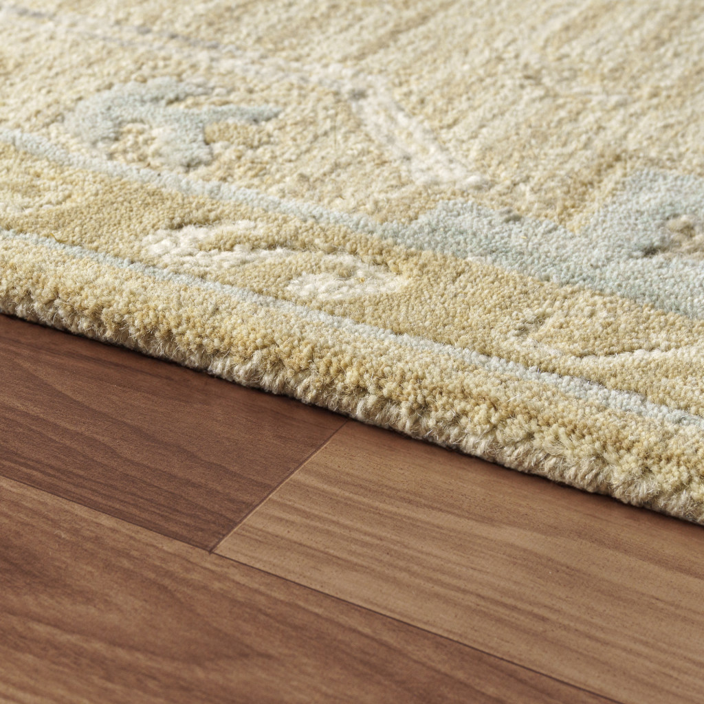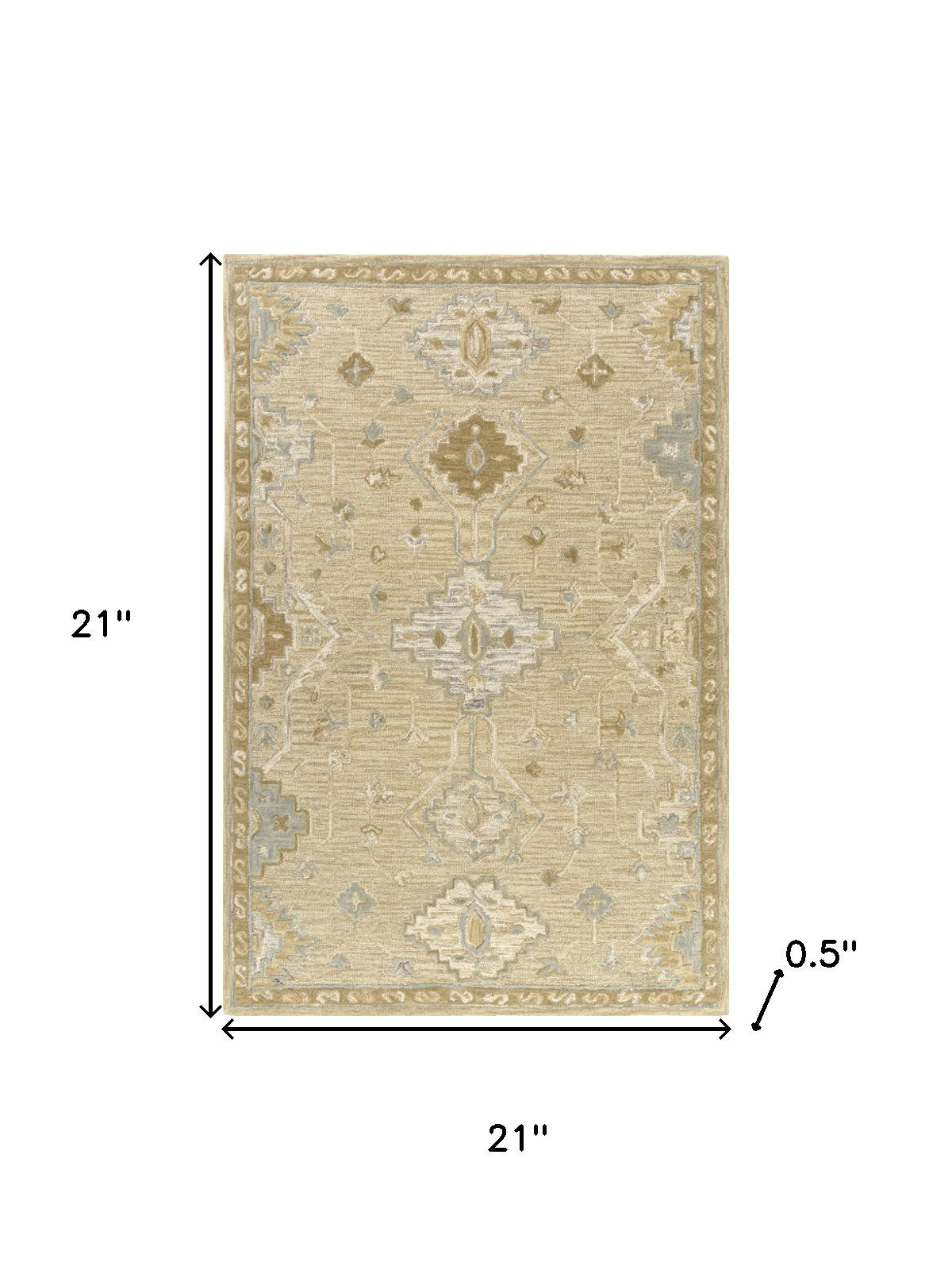 Add some artistry to your room with this 2-foot x 2-foot beige and silver wool medallion hand tufted square rug. Crafted by skilled artisans, this hand tufted rug is genuine and unique. No two will be exactly alike. Rugs are a great way to showcase your style, hide imperfections, warm your home and reduce noise. This smaller sized, traditional styled rug is just what you need for your walkway, bedside, in front of door, cabinet, refrigerator, or chair. 21.00-inch h x 21.00-inch w x 0.50-inch d.