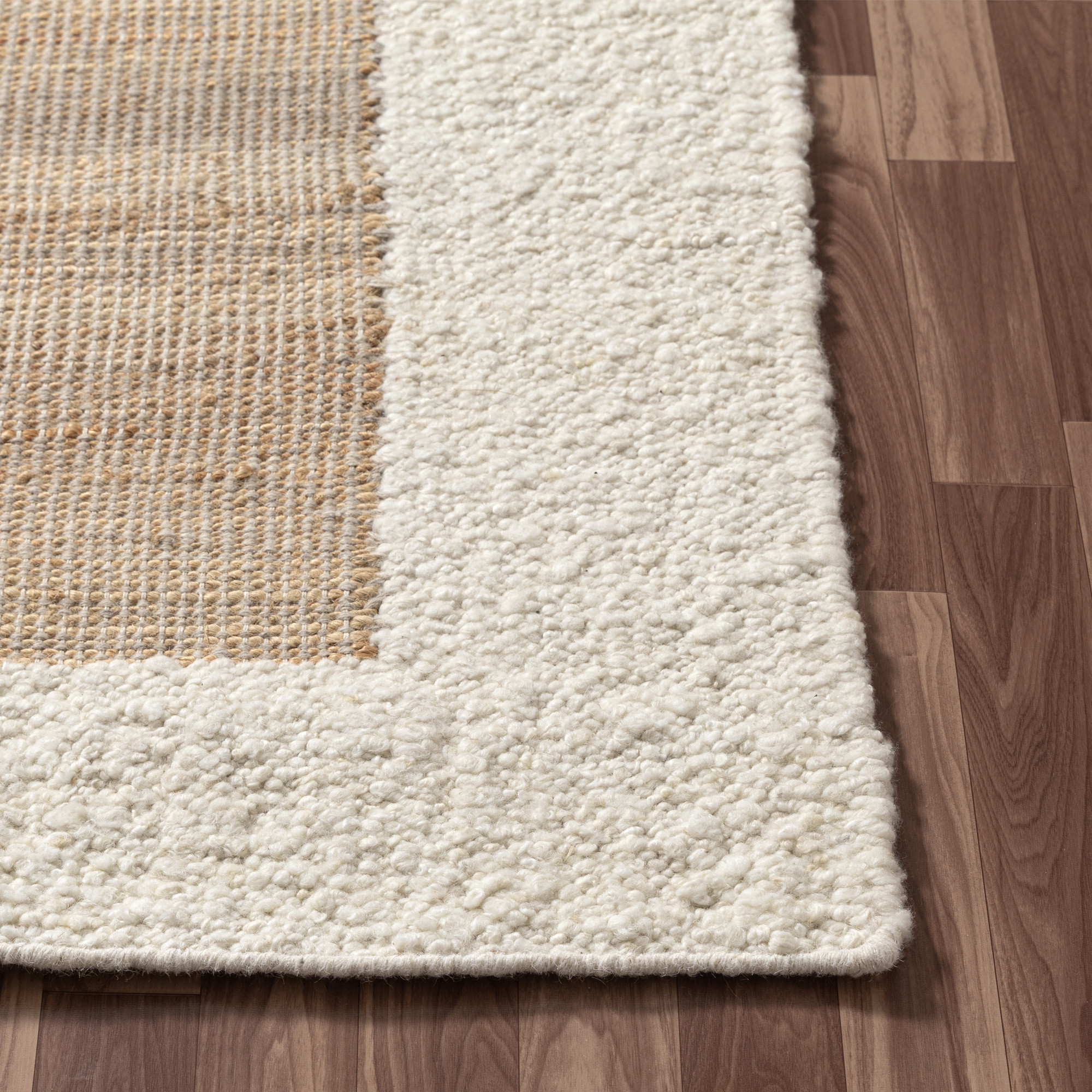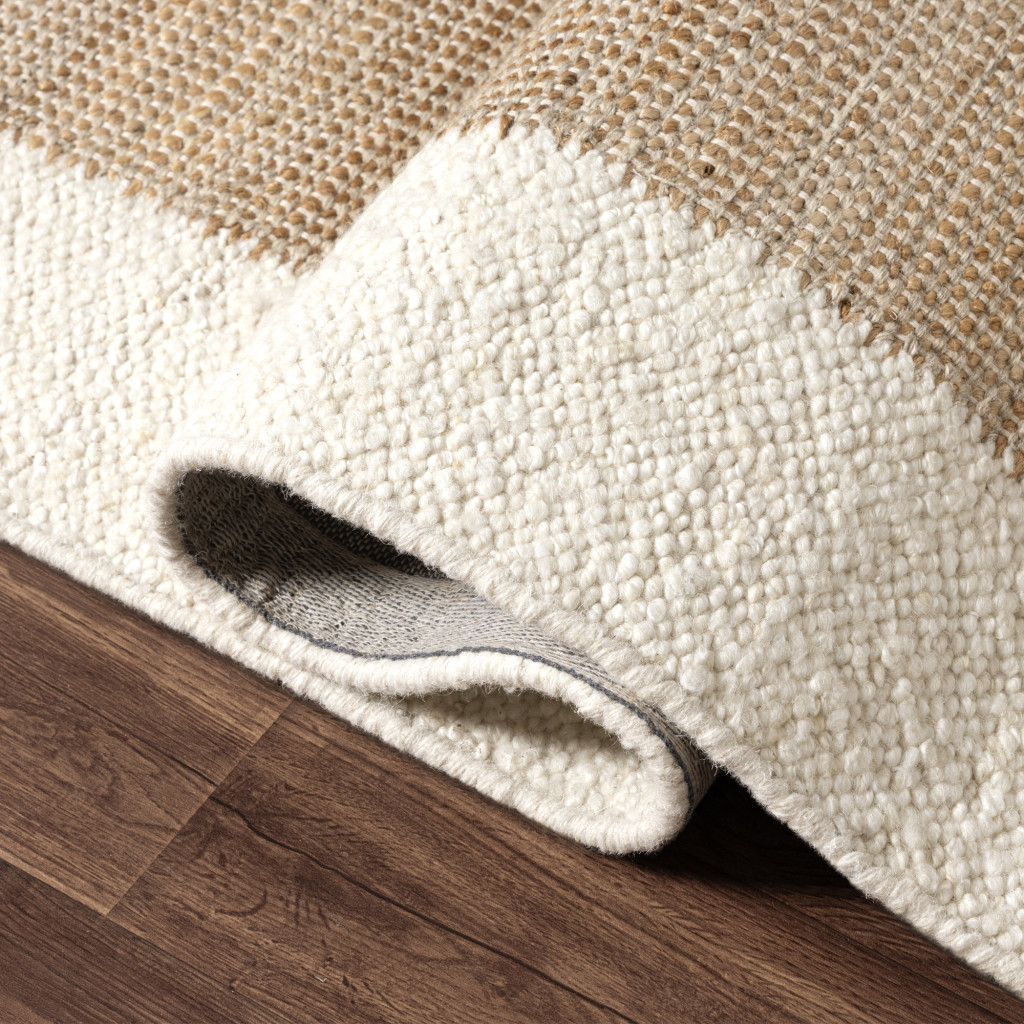 Add some artistry to your room with this 2-foot x 2-foot ivory and beige hand woven square rug. Crafted by skilled artisans, this hand woven rug is genuine and unique. No two will be exactly alike. Crafted from wool blend fibers that give this piece premium texture, refinement, and appeal. Rugs are a great way to showcase your style, hide imperfections, warm your home and reduce noise. This smaller sized, contemporary styled rug is just what you need for your walkway, bedside, in front of door, cabinet, refrigerator, or chair. 21.00-inch h x 21.00-inch w x 0.50-inch d.
