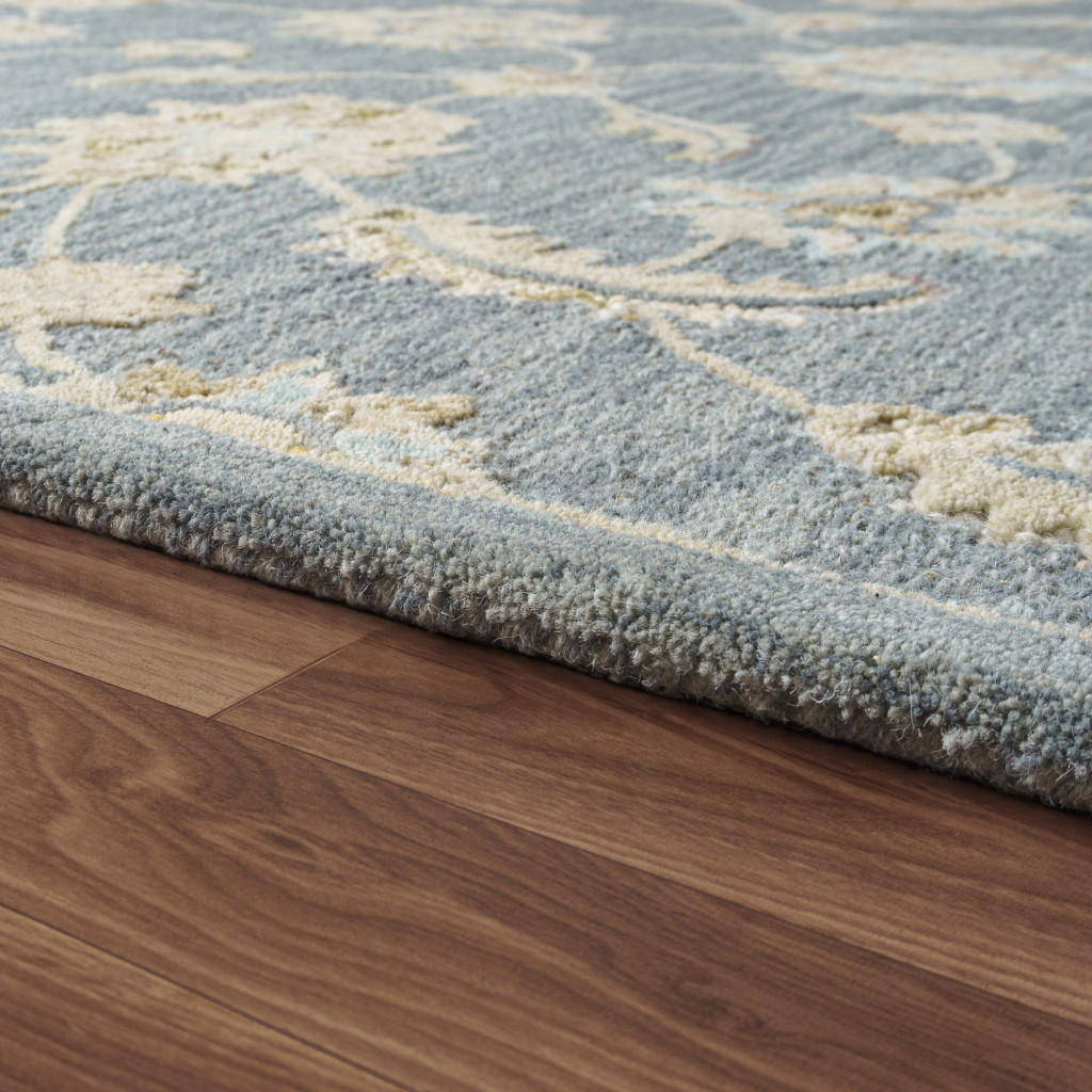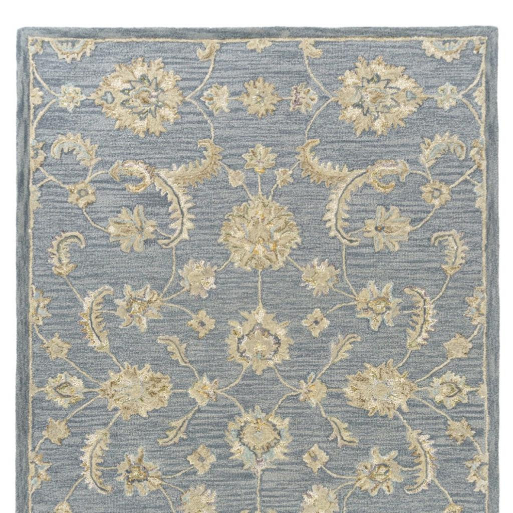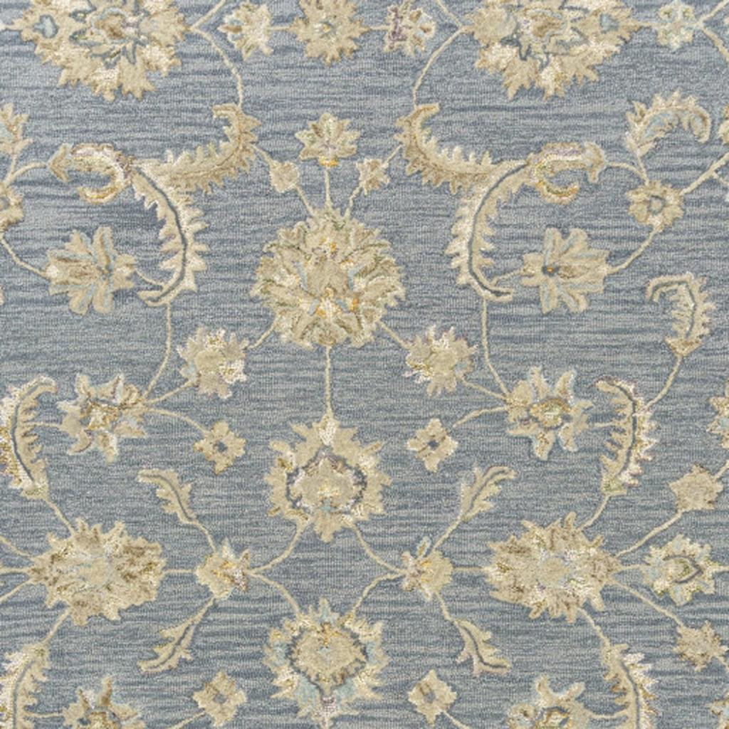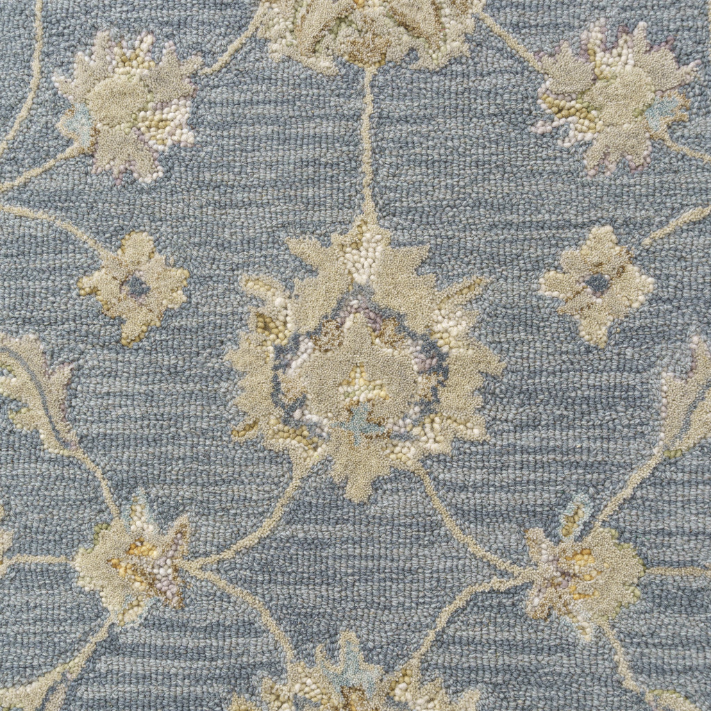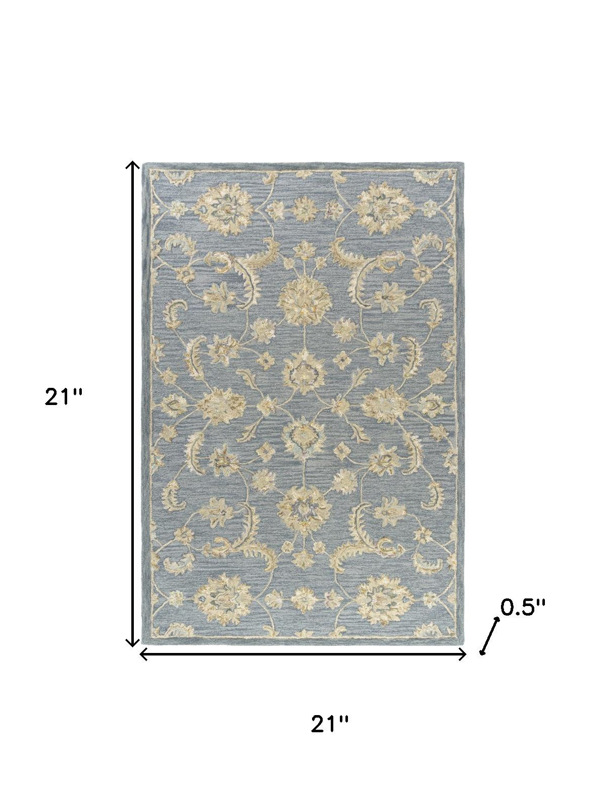 Add great coloration and comfortable texture to your space with this 2-foot x 2-foot blue and beige wool floral hand tufted square rug. Crafted by skilled artisans, this hand tufted rug is genuine and unique. No two will be exactly alike. Rugs are a great way to showcase your style, hide imperfections, warm your home and reduce noise. This smaller sized, traditional styled rug is just what you need for your walkway, bedside, in front of door, cabinet, refrigerator, or chair. 21.00-inch h x 21.00-inch w x 0.50-inch d.