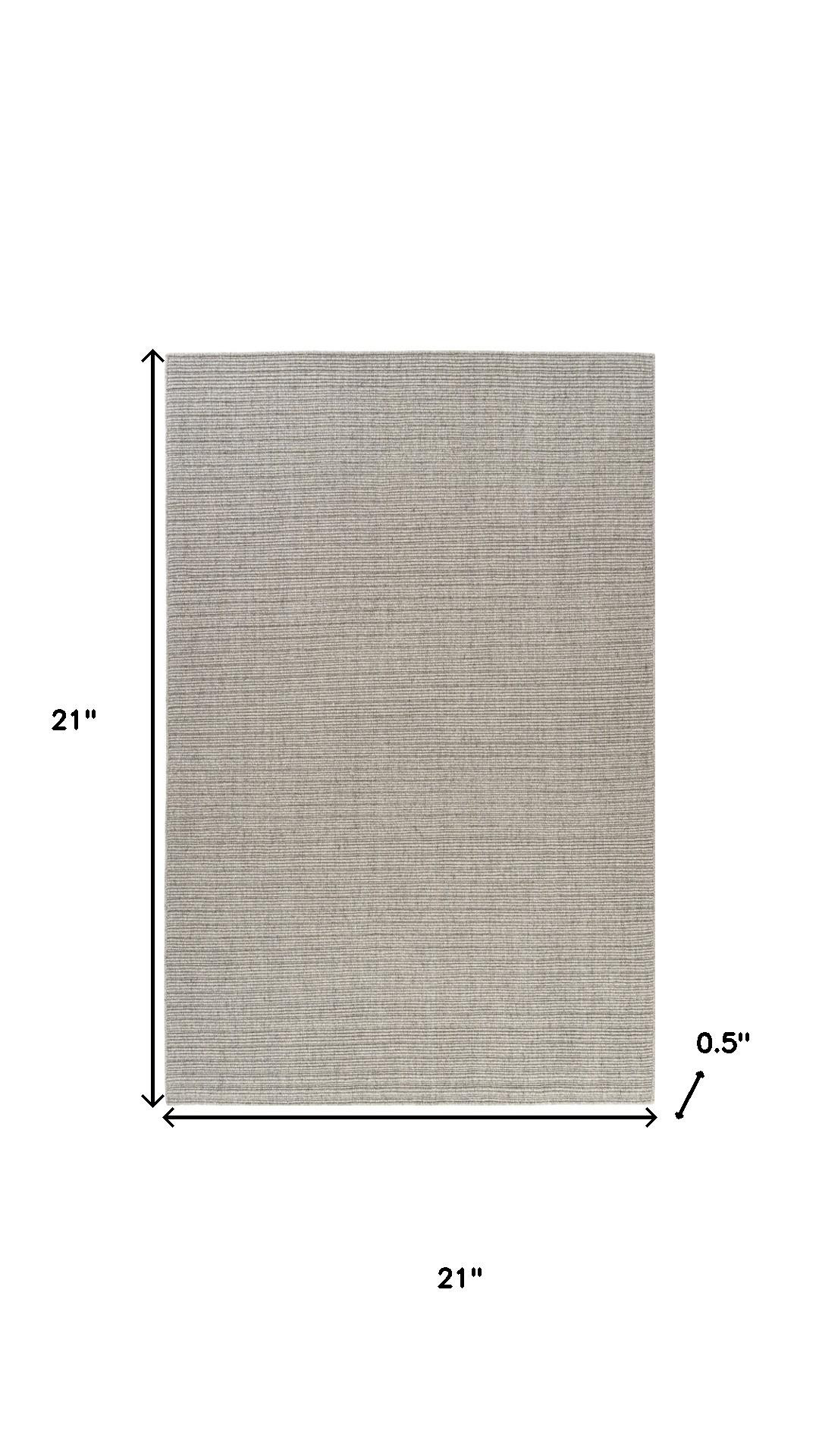 This 2-foot x 2-foot gray and light gray wool hand woven square rug, is a great way to add warmth to a room. Crafted by skilled artisans, this hand woven rug is genuine and unique. No two will be exactly alike. Rugs are a great way to showcase your style, hide imperfections, warm your home and reduce noise. This smaller sized, transitional styled rug is just what you need for your walkway, bedside, in front of door, cabinet, refrigerator, or chair. 21.00-inch h x 21.00-inch w x 0.50-inch d.