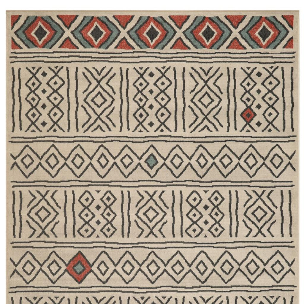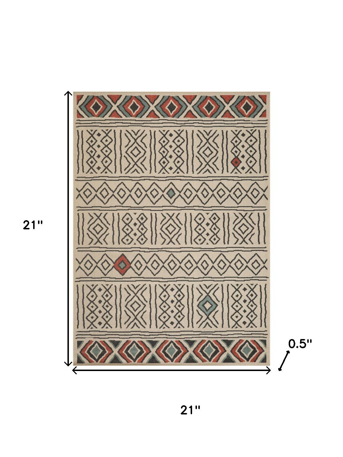 Add some artistry to your room with this 2-foot x 2-foot cream and ivory tribal square rug. Built to last, this rug crafted from polypropylene fibers is known for its durability and long lasting appeal. Rugs are a great way to showcase your style, hide imperfections, warm your home and reduce noise. This smaller sized, bohemian styled rug is just what you need for your walkway, bedside, in front of door, cabinet, refrigerator, or chair. 21.00-inch h x 21.00-inch w x 0.50-inch d.