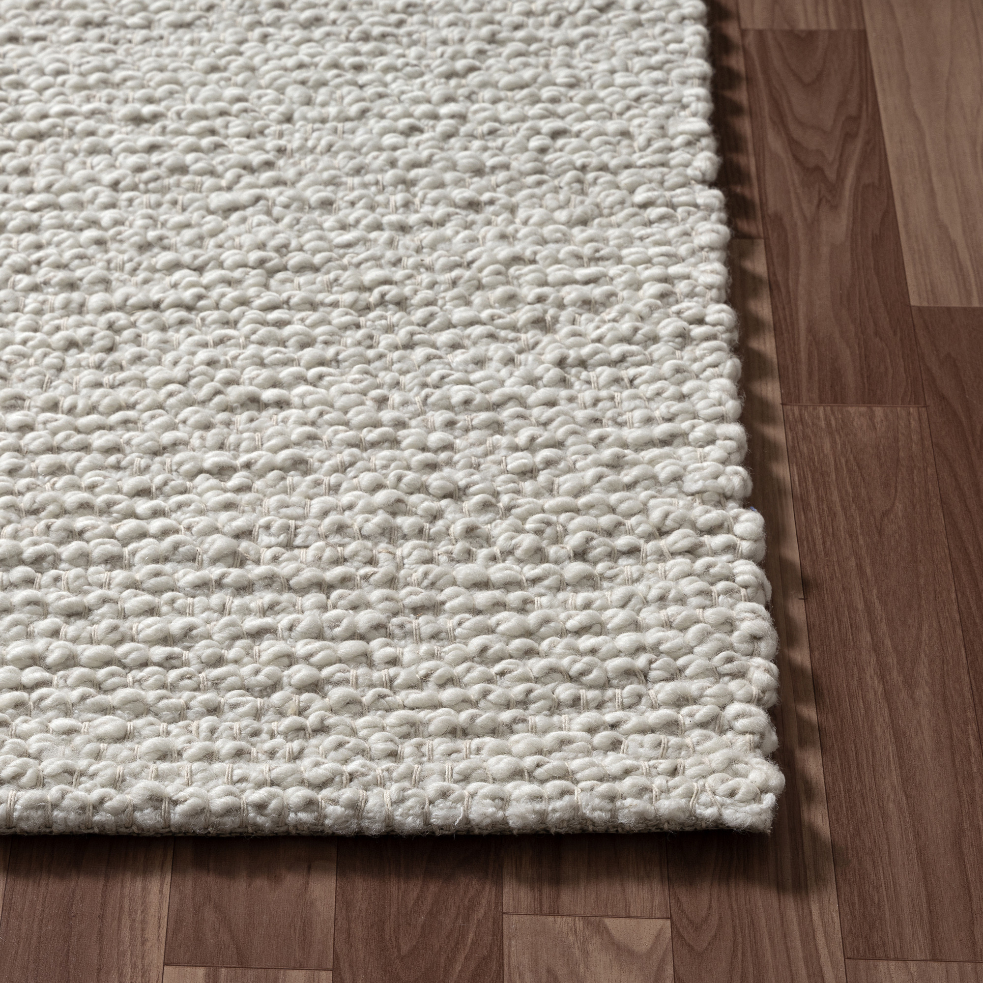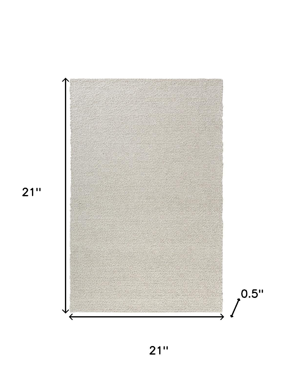Add some artistry to your room with this 2-foot x 2-foot ivory and cream wool hand woven square rug. Crafted by skilled artisans, this hand woven rug is genuine and unique. No two will be exactly alike. Rugs are a great way to showcase your style, hide imperfections, warm your home and reduce noise. This smaller sized, transitional styled rug is just what you need for your walkway, bedside, in front of door, cabinet, refrigerator, or chair. 21.00-inch h x 21.00-inch w x 0.50-inch d.