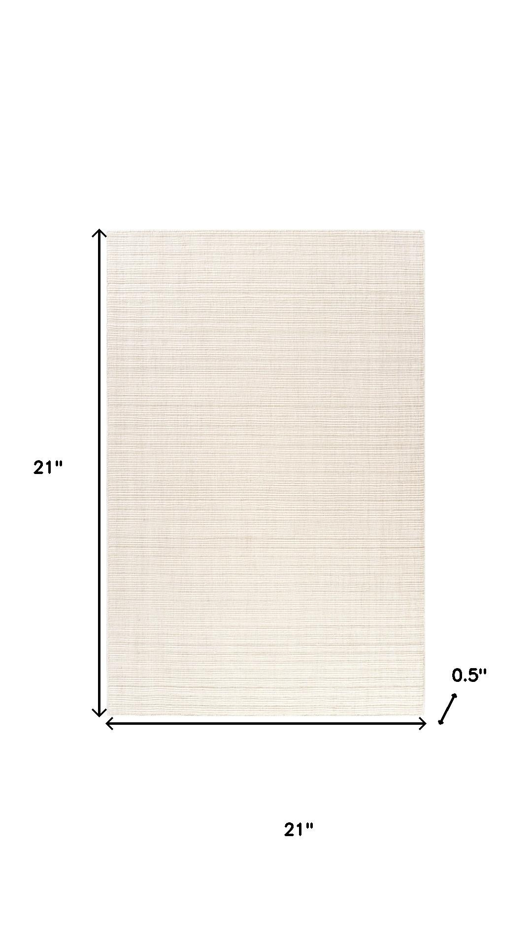 Add some artistry to your room with this 2-foot x 2-foot ivory and cream wool hand woven square rug. Crafted by skilled artisans, this hand woven rug is genuine and unique. No two will be exactly alike. Rugs are a great way to showcase your style, hide imperfections, warm your home and reduce noise. This smaller sized, transitional styled rug is just what you need for your walkway, bedside, in front of door, cabinet, refrigerator, or chair. 21.00-inch h x 21.00-inch w x 0.50-inch d.