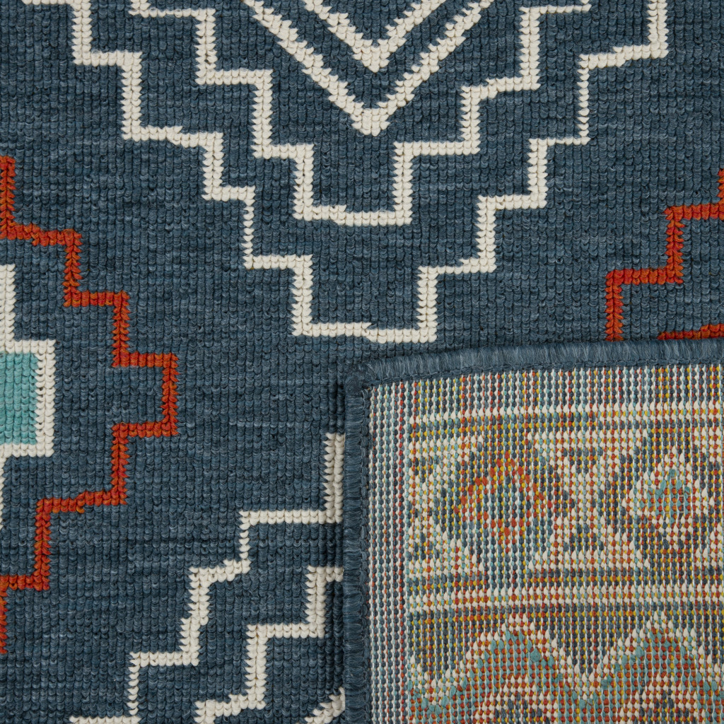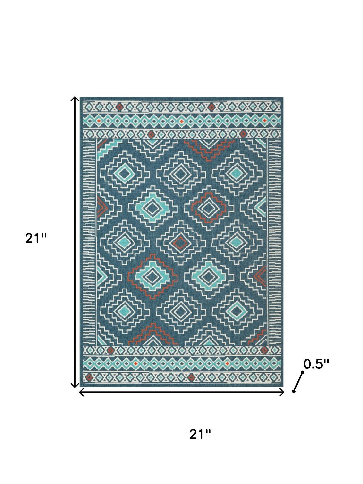 Set an inviting tone in your space with this 2-foot x 2-foot blue and off white tribal square rug. Built to last, this rug crafted from polypropylene fibers is known for its durability and long lasting appeal. Rugs are a great way to showcase your style, hide imperfections, warm your home and reduce noise. This smaller sized, bohemian styled rug is just what you need for your walkway, bedside, in front of door, cabinet, refrigerator, or chair. 21.00-inch h x 21.00-inch w x 0.50-inch d.