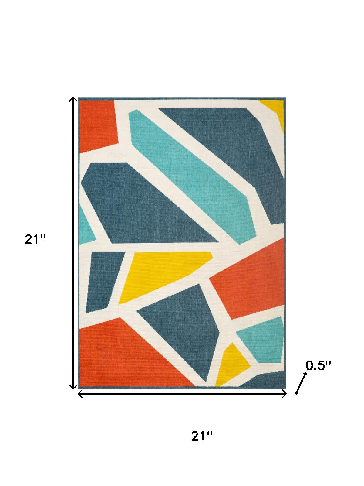 Set an inviting tone in your space with this 2-foot x 2-foot ivory blue and orange abstract square rug. Built to last, this rug crafted from polypropylene fibers is known for its durability and long lasting appeal. Rugs are a great way to showcase your style, hide imperfections, warm your home and reduce noise. This smaller sized, modern styled rug is just what you need for your walkway, bedside, in front of door, cabinet, refrigerator, or chair. 21.00-inch h x 21.00-inch w x 0.50-inch d.