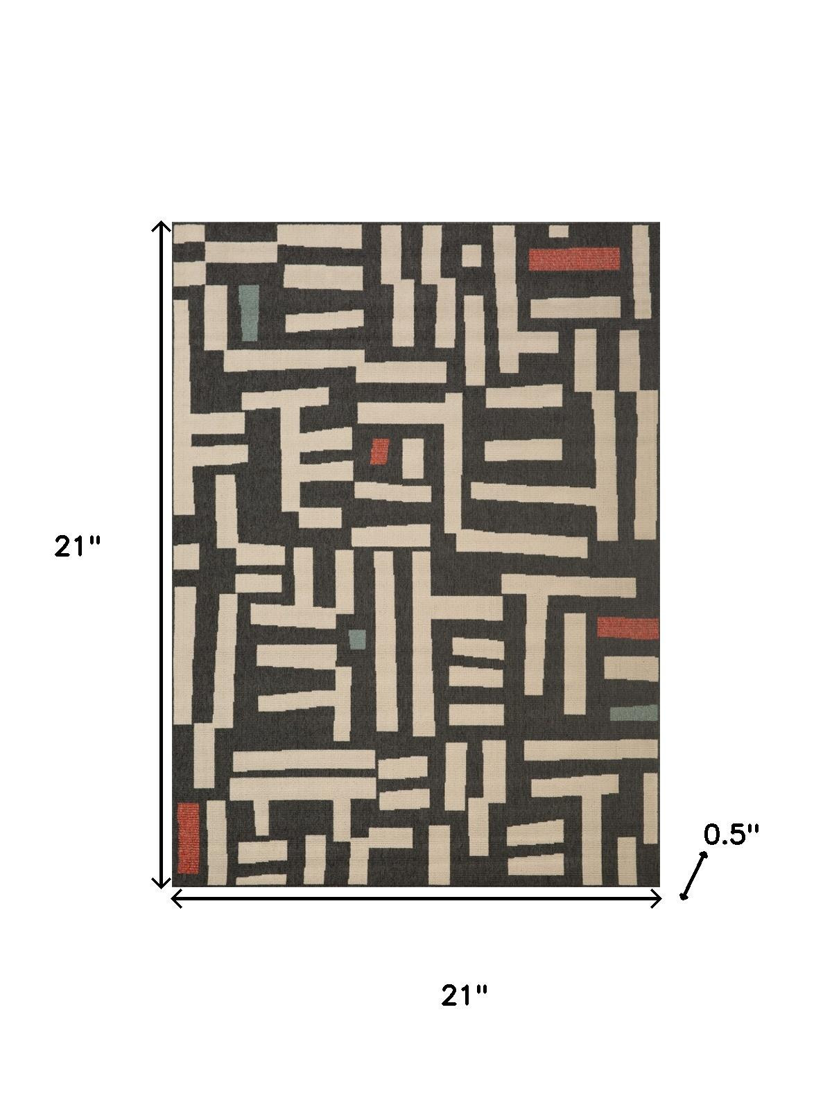 This 2-foot x 2-foot black and beige striped square rug, is a great way to add warmth to a room. Built to last, this rug crafted from polypropylene fibers is known for its durability and long lasting appeal. Rugs are a great way to showcase your style, hide imperfections, warm your home and reduce noise. This smaller sized, bohemian styled rug is just what you need for your walkway, bedside, in front of door, cabinet, refrigerator, or chair. 21.00-inch h x 21.00-inch w x 0.50-inch d.