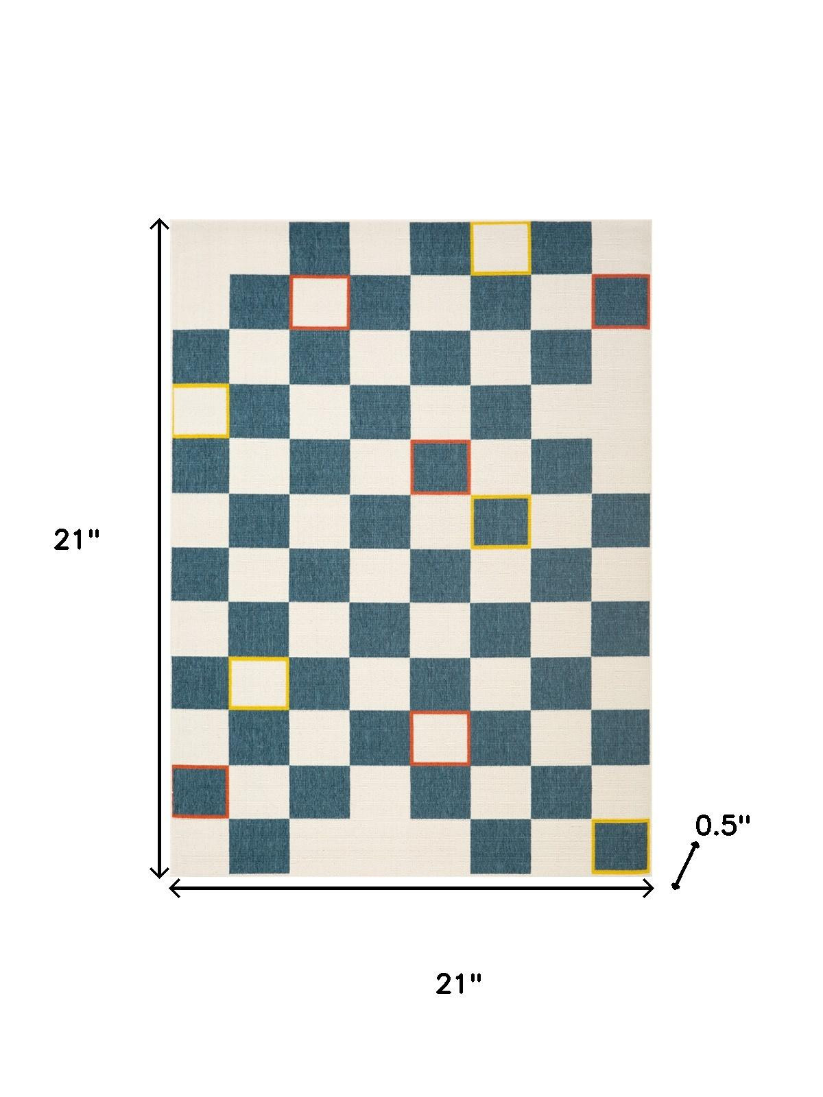 Add some artistry to your room with this 2-foot x 2-foot navy blue and ivory checkered square rug. Built to last, this rug crafted from polypropylene fibers is known for its durability and long lasting appeal. Rugs are a great way to showcase your style, hide imperfections, warm your home and reduce noise. This smaller sized, bohemian styled rug is just what you need for your walkway, bedside, in front of door, cabinet, refrigerator, or chair. 21.00-inch h x 21.00-inch w x 0.50-inch d.