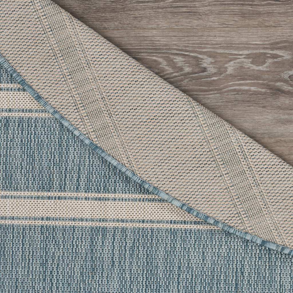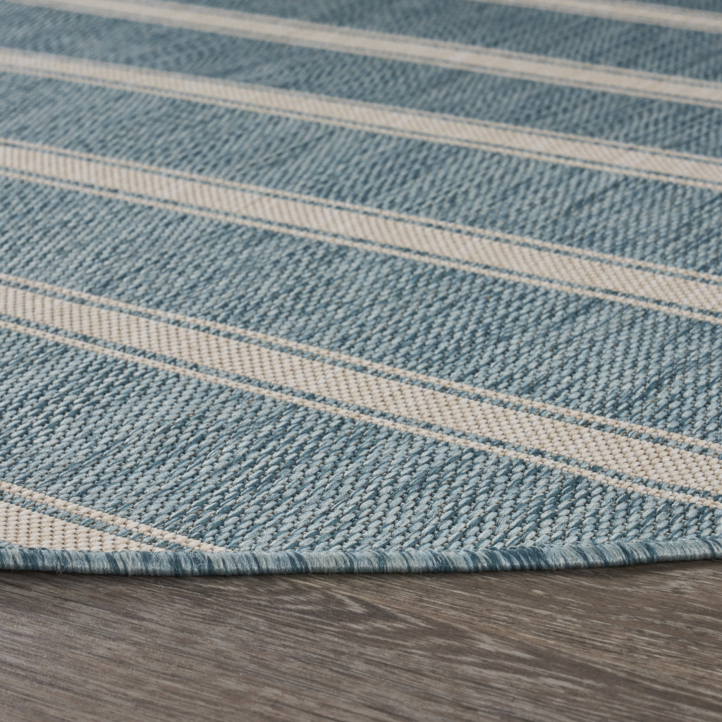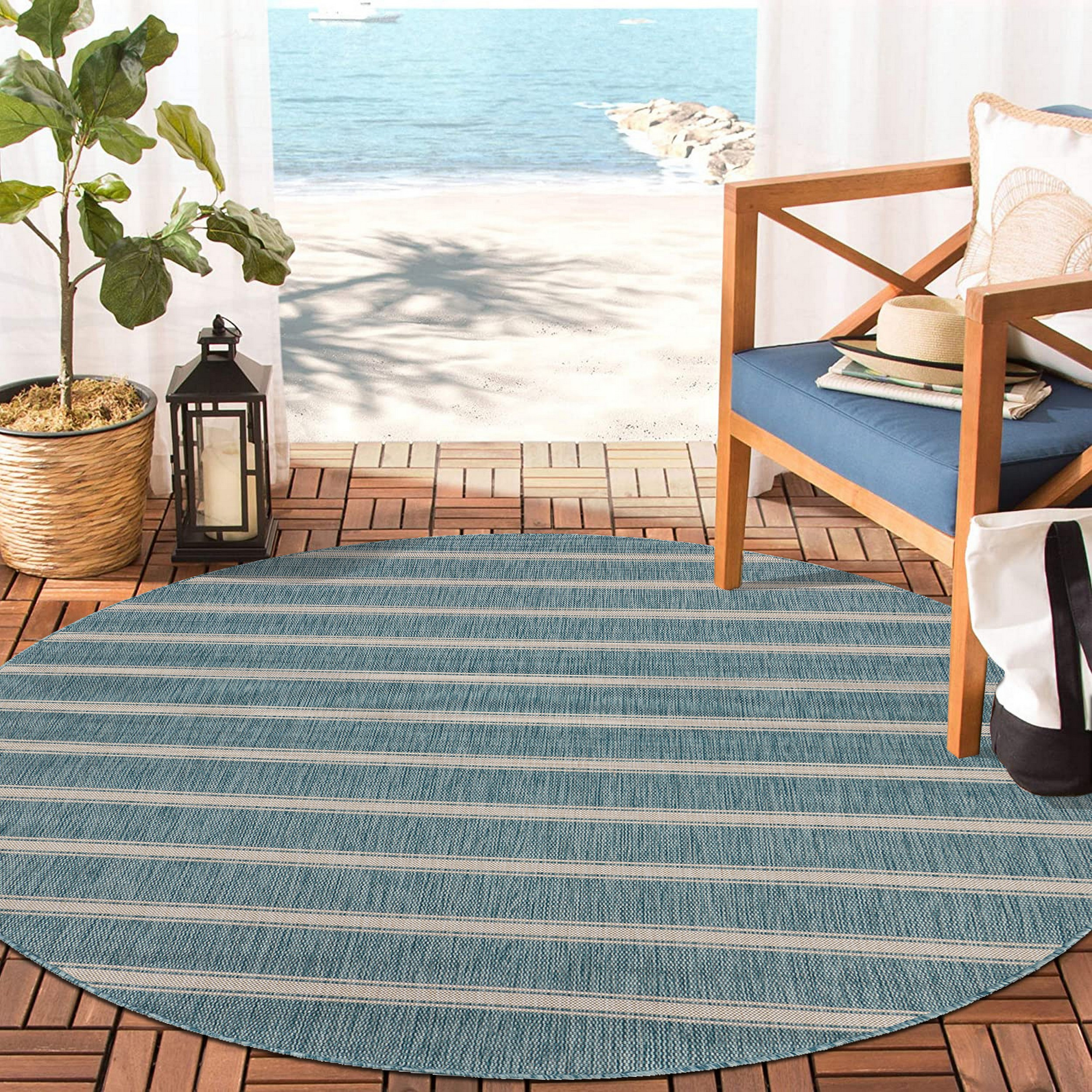 Add some artistry to your room with this 8-foot aqua and white geometric round rug. Built to last, this rug crafted from polypropylene blend fibers is known for its durability and long lasting appeal. Rugs are a great way to showcase your style, hide imperfections, warm your home and reduce noise. This larger sized, tropical styled rug is ready to create a focal point or statement piece in your room. 90.00-inch h x 90.00-inch w x 0.35-inch d.