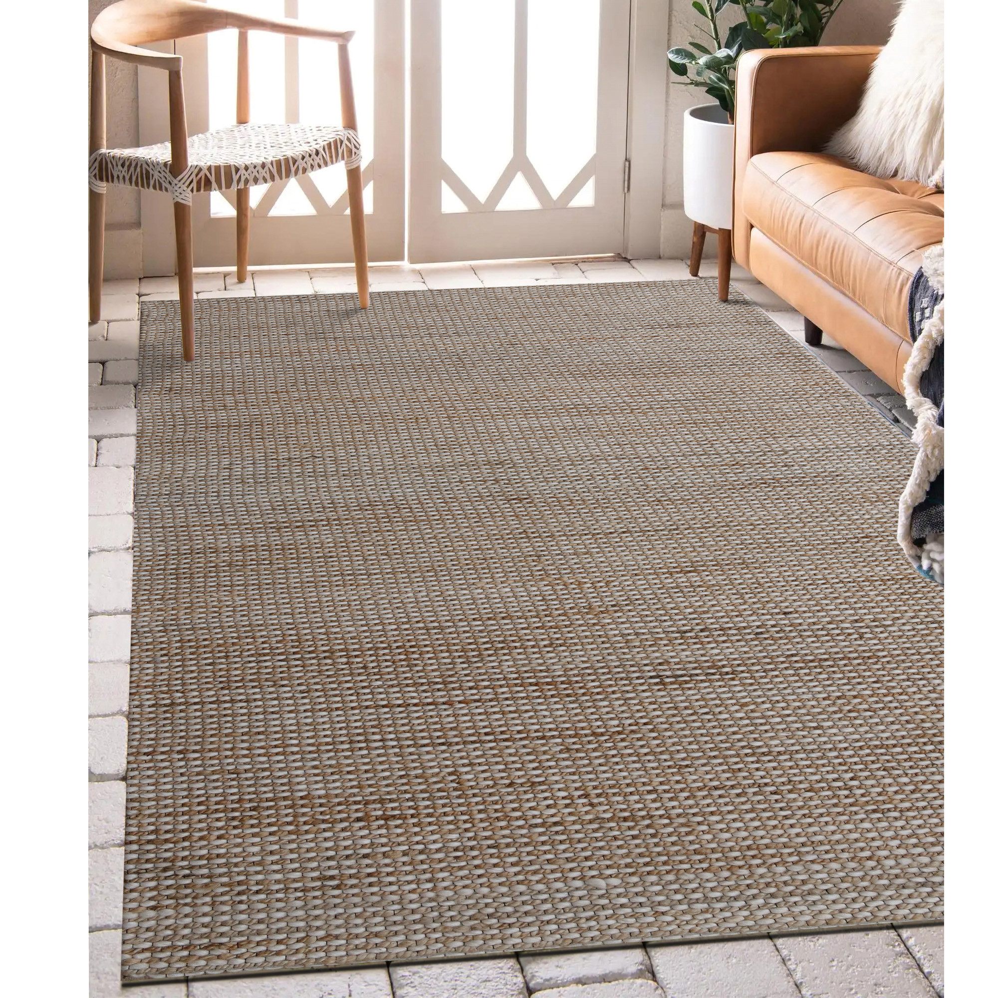 This 2-foot x 2-foot beige and natural jute striped hand woven square rug, is a great way to add warmth to a room. Crafted by skilled artisans, this hand woven rug is genuine and unique. No two will be exactly alike. Crafted from jute fibers that give this piece premium texture, refinement, and appeal. Rugs are a great way to showcase your style, hide imperfections, warm your home and reduce noise. This smaller sized, coastal styled rug is just what you need for your walkway, bedside, in front of door, cabinet, refrigerator, or chair. 21.00-inch h x 21.00-inch w x 0.50-inch d.
