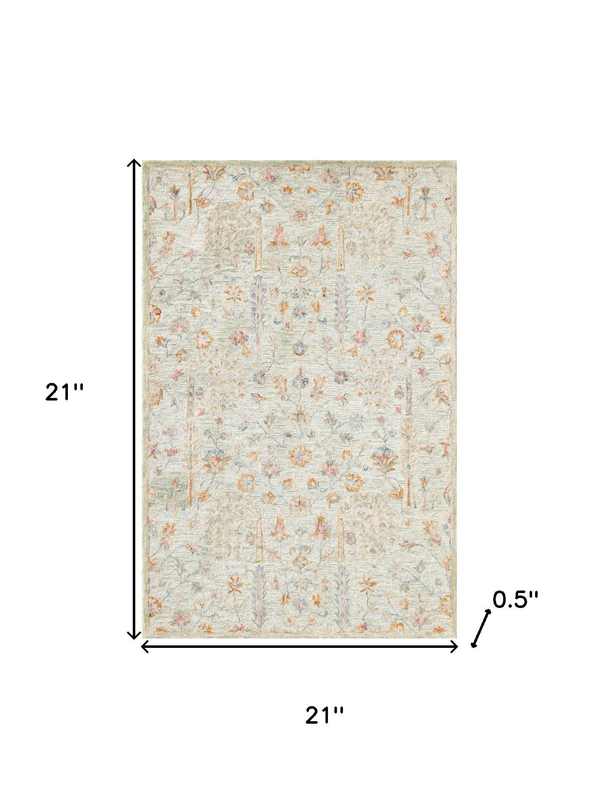 Add great coloration and comfortable texture to your space with this 2-foot x 2-foot sage and orange wool abstract hand tufted square rug. Crafted by skilled artisans, this hand tufted rug is genuine and unique. No two will be exactly alike. Rugs are a great way to showcase your style, hide imperfections, warm your home and reduce noise. This smaller sized, transitional styled rug is just what you need for your walkway, bedside, in front of door, cabinet, refrigerator, or chair. 21.00-inch h x 21.00-inch w x 0.50-inch d.