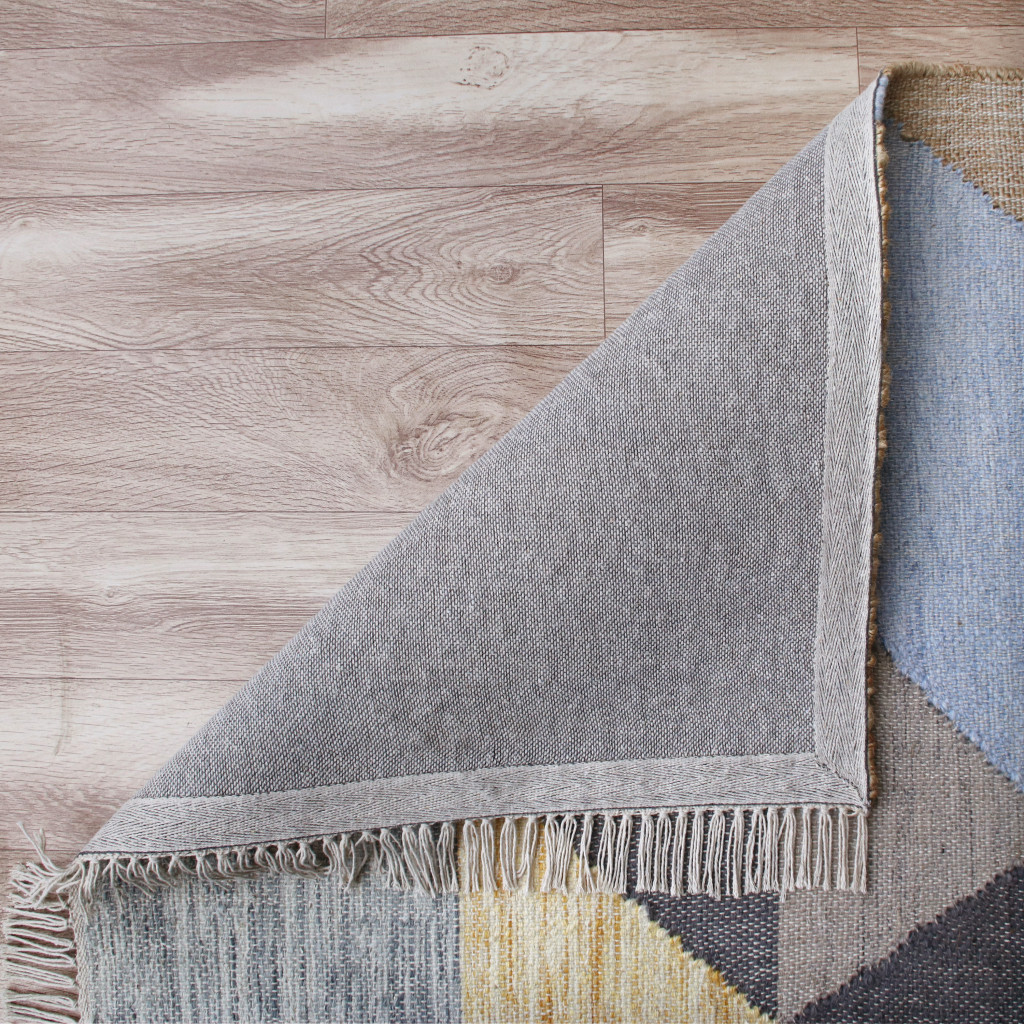 hand woven square rug, geometric hand woven square rug, woven square rug, jute geometric hand woven square, beige blue jute geometric |