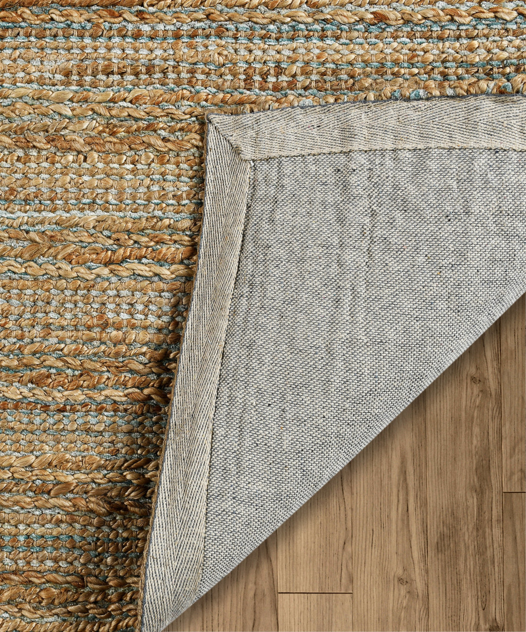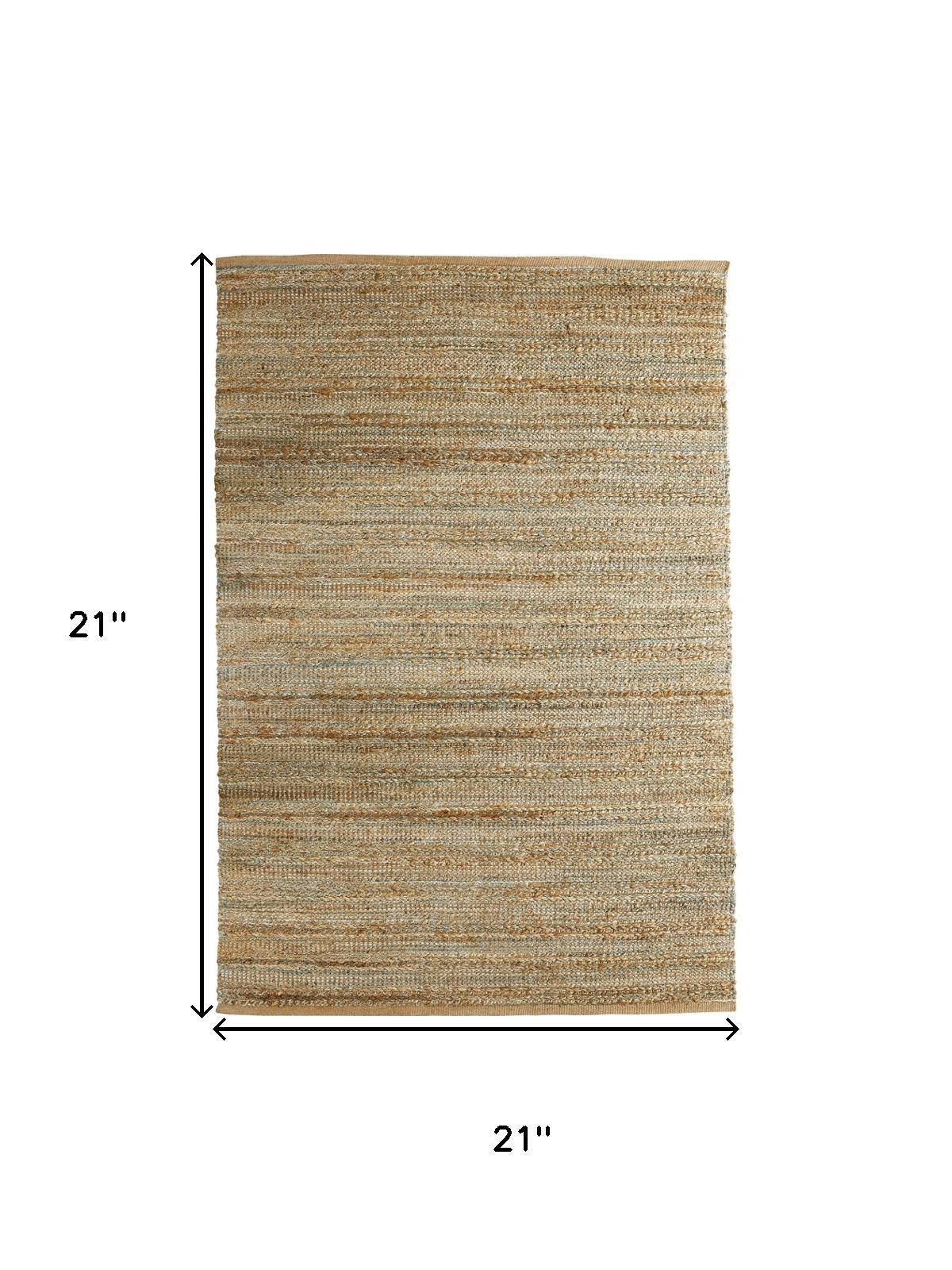 This 2-foot x 2-foot natural and blue jute striped hand woven square rug, is a great way to add warmth to a room. Crafted by skilled artisans, this hand woven rug is genuine and unique. No two will be exactly alike. Crafted from jute fibers that give this piece premium texture, refinement, and appeal. Rugs are a great way to showcase your style, hide imperfections, warm your home and reduce noise. This smaller sized, transitional styled rug is just what you need for your walkway, bedside, in front of door, cabinet, refrigerator, or chair. 21.00-inch h x 21.00-inch w x 0.50-inch d.