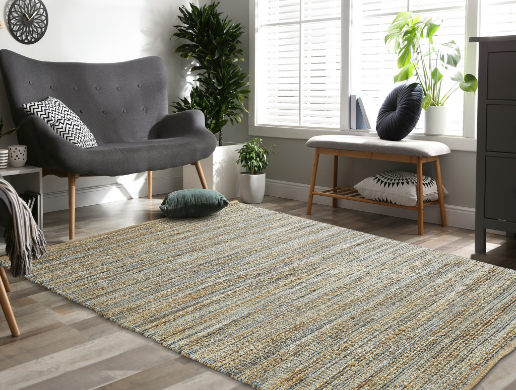 striped hand woven square rug, hand woven square rug, woven square rug, jute striped hand woven square, blue jute striped hand woven |