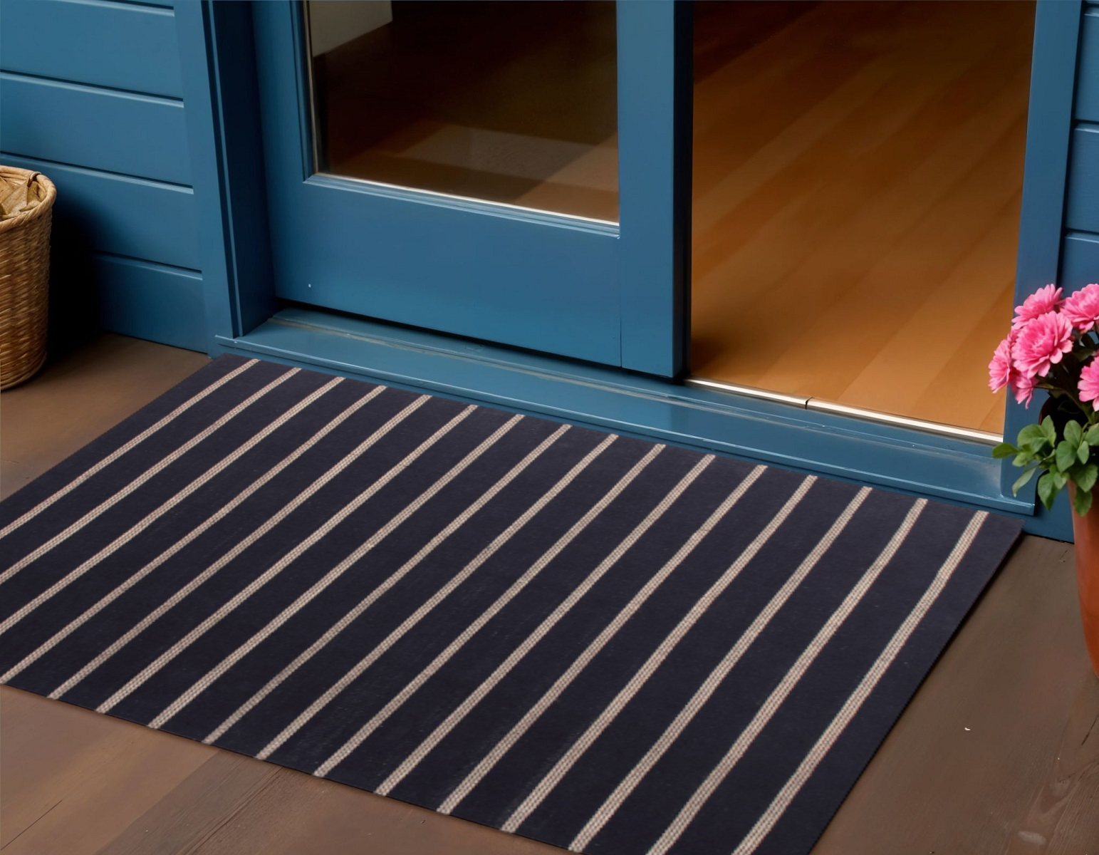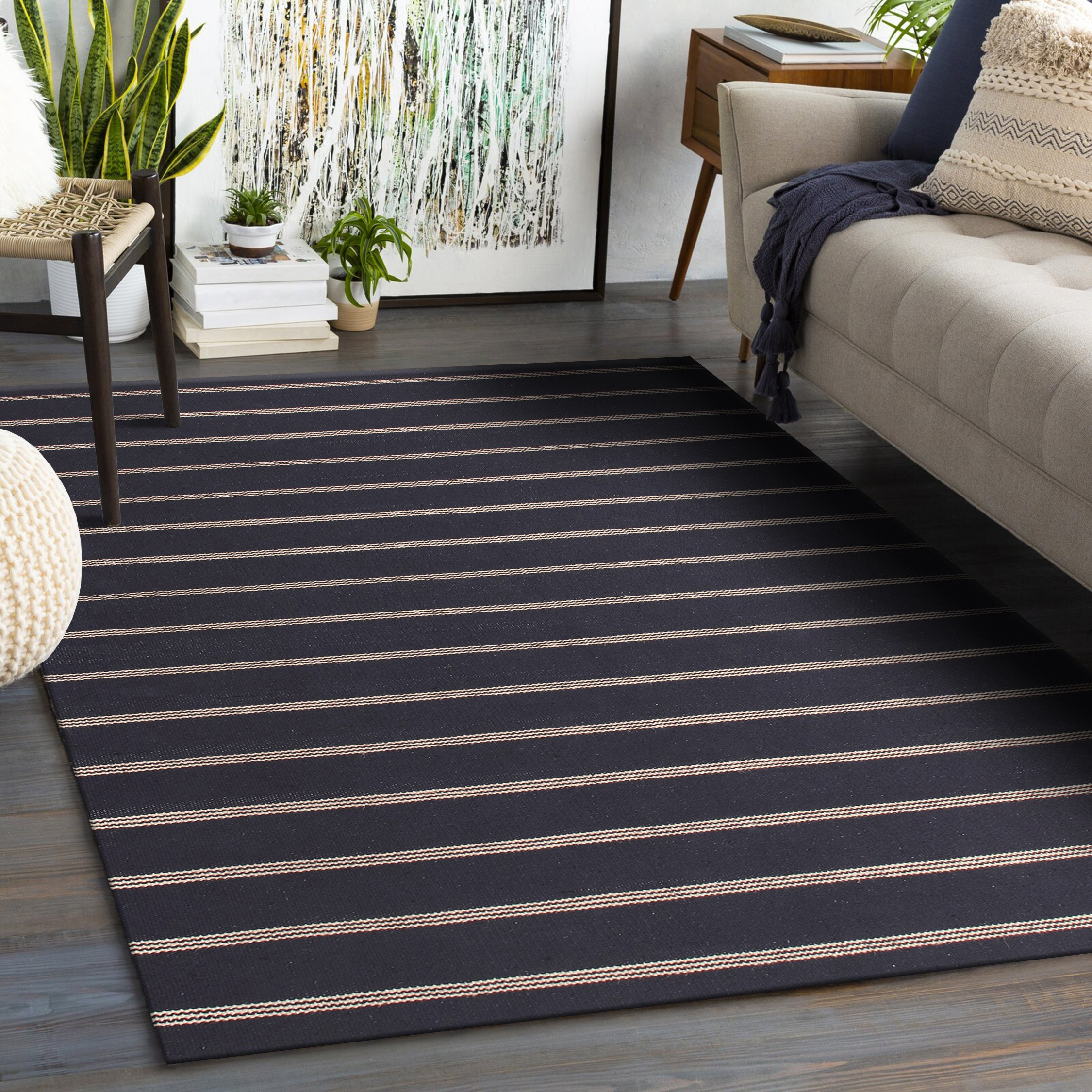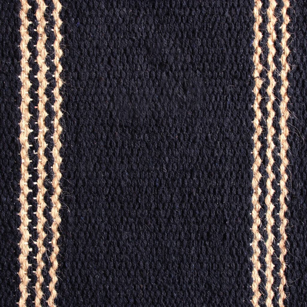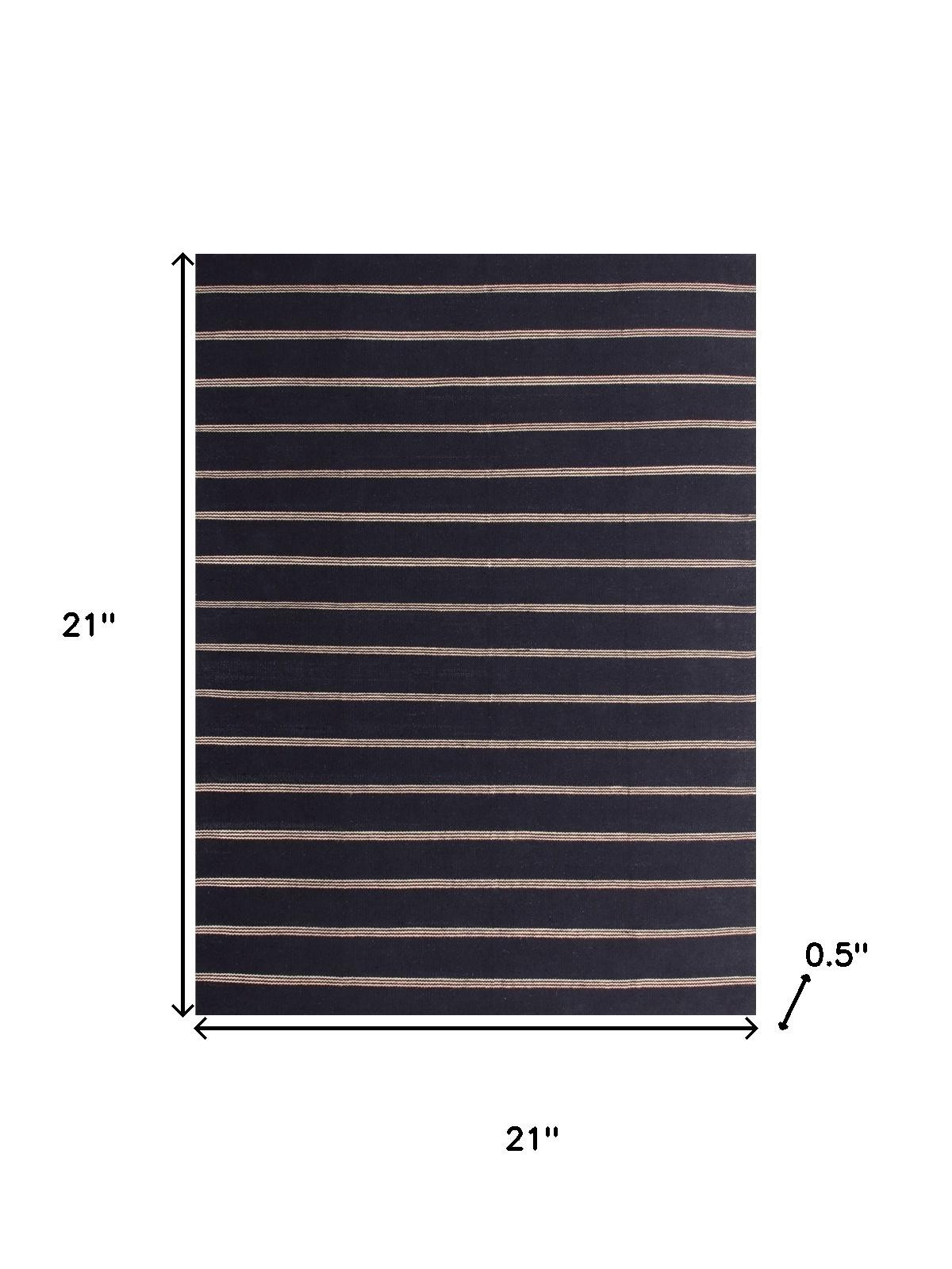 This 2-foot x 2-foot black and tan striped hand woven square rug, is a great way to add warmth to a room. Crafted by skilled artisans, this hand woven rug is genuine and unique. No two will be exactly alike. Rugs are a great way to showcase your style, hide imperfections, warm your home and reduce noise. This smaller sized, coastal styled rug is just what you need for your walkway, bedside, in front of door, cabinet, refrigerator, or chair. 21.00-inch h x 21.00-inch w x 0.50-inch d.