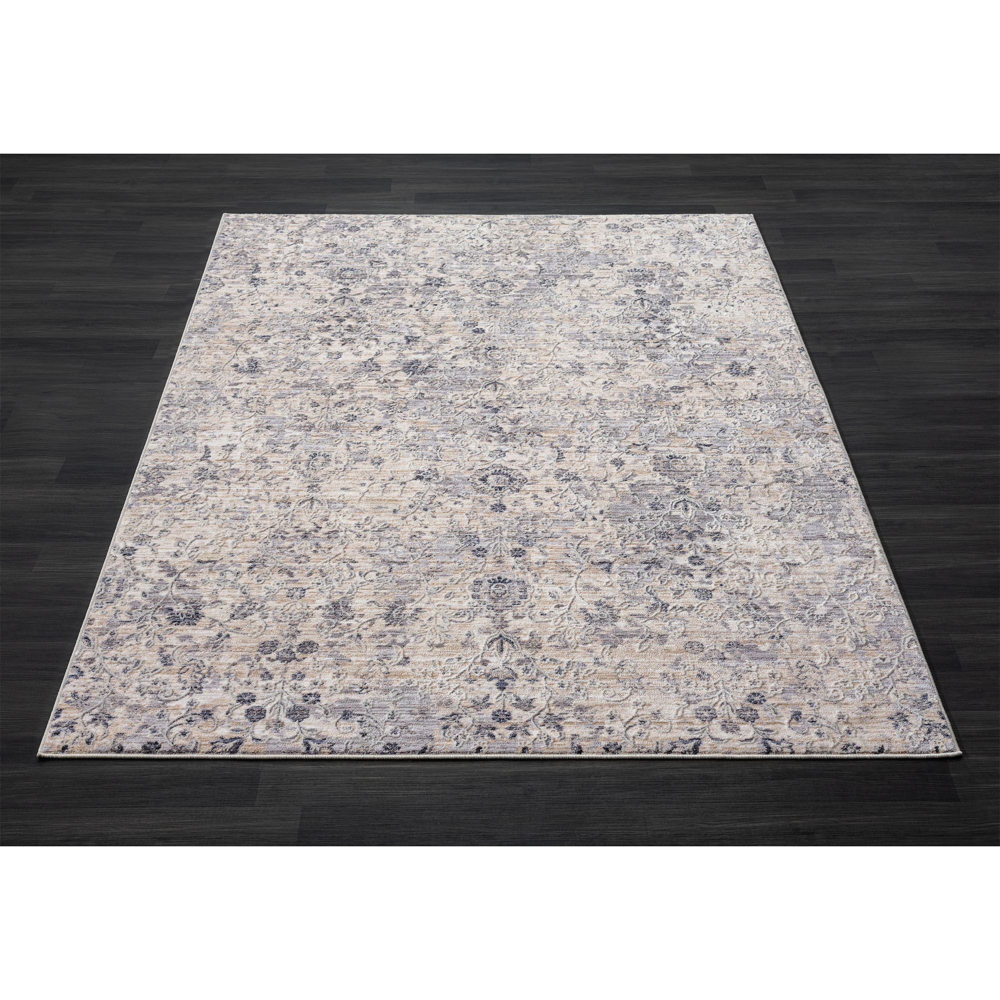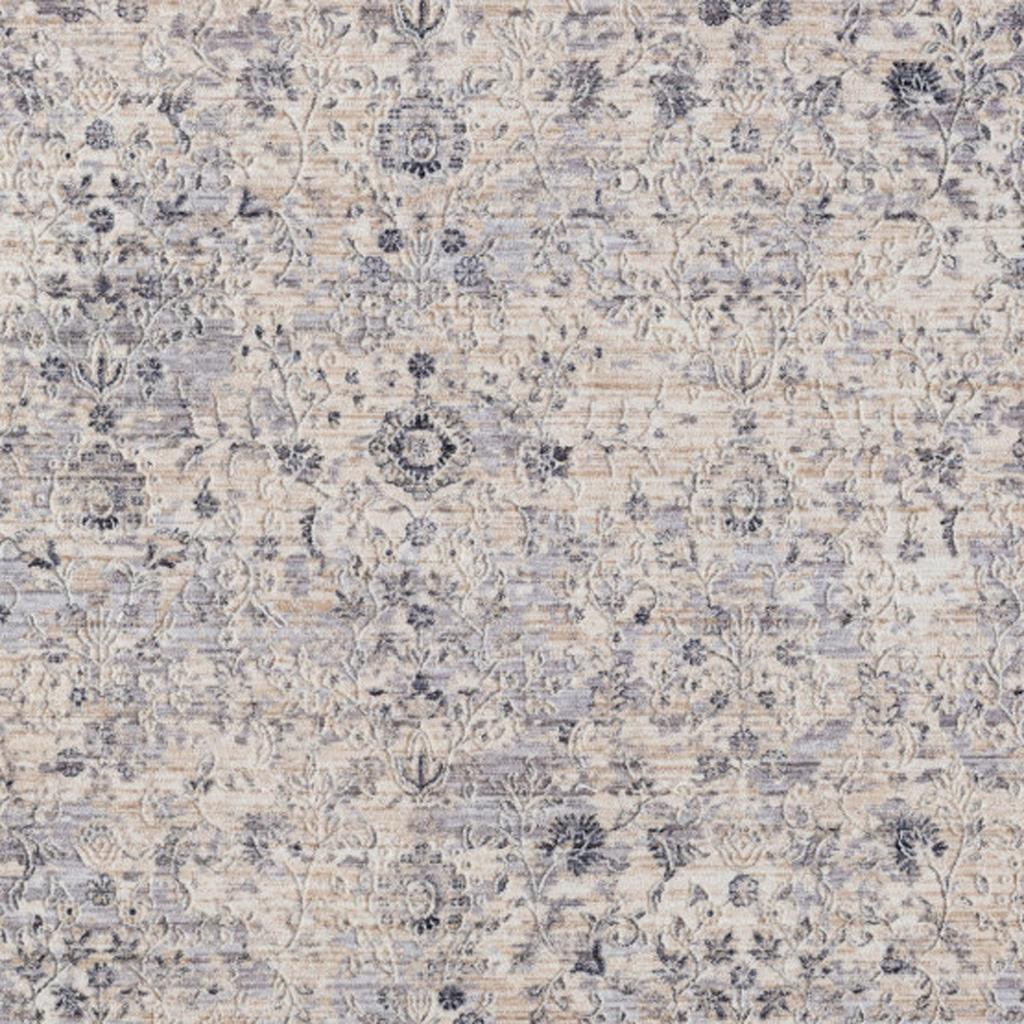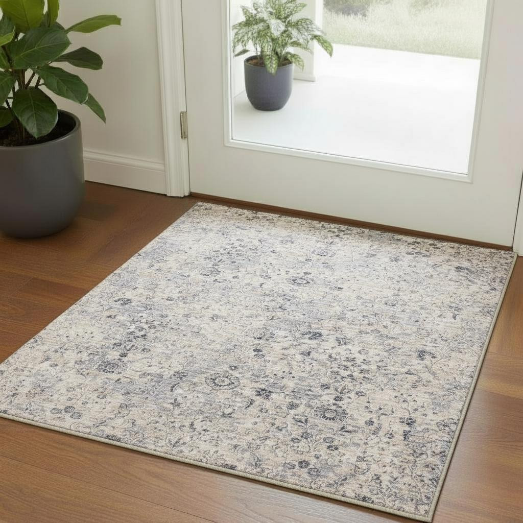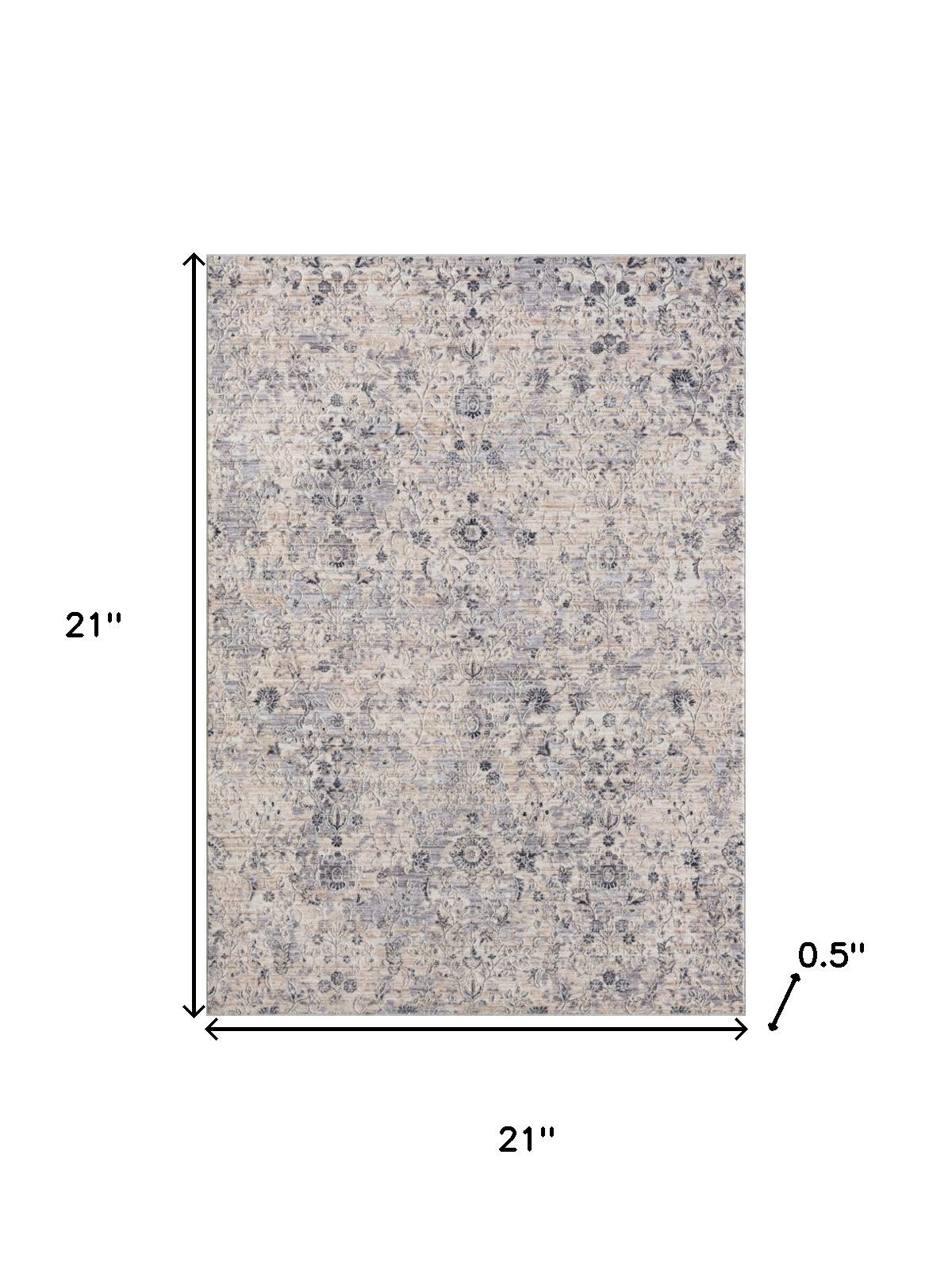 Set an inviting tone in your space with this 2-foot x 2-foot gray and blue floral square rug. Rugs are a great way to showcase your style, hide imperfections, warm your home and reduce noise. This smaller sized, traditional styled rug is just what you need for your walkway, bedside, in front of door, cabinet, refrigerator, or chair. 21.00-inch h x 21.00-inch w x 0.50-inch d.